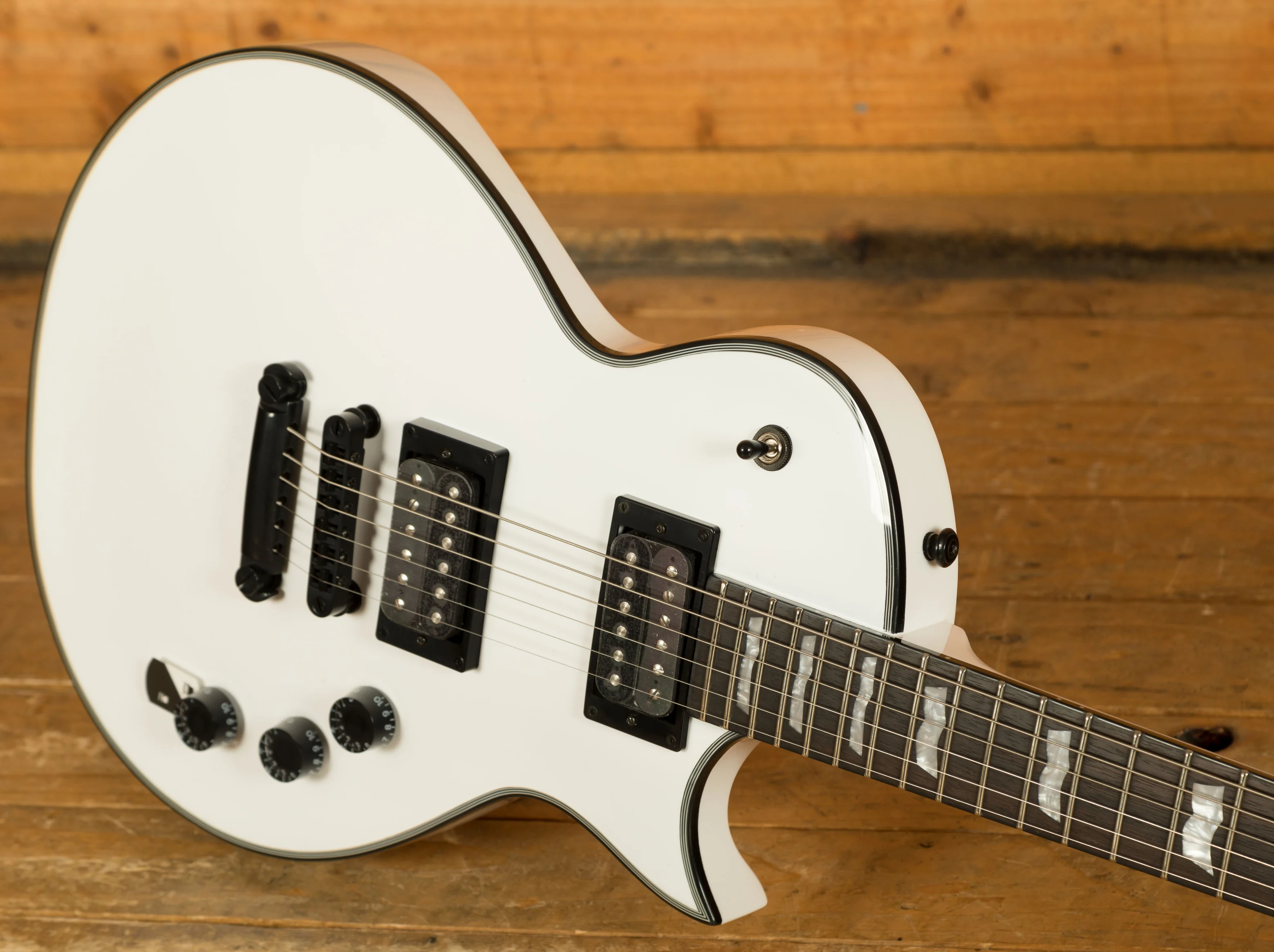 Playing the EC-256 is also a dream come true with the set-neck construction for fast and easy access to the highest frets. The EC-256 also features a mahogany body, a comfortable and fast three-piece thin U-shaped mahogany neck, and a rosewood fingerboard with flag inlays and 22 extra-jumbo frets. This guitar features their acclaimed ESP Designed LH-150 humbucking pickups that offer great tone for all genres of music, and the tone flexibility of coil-splitting controlled by a push-pull switch on the tone knob.