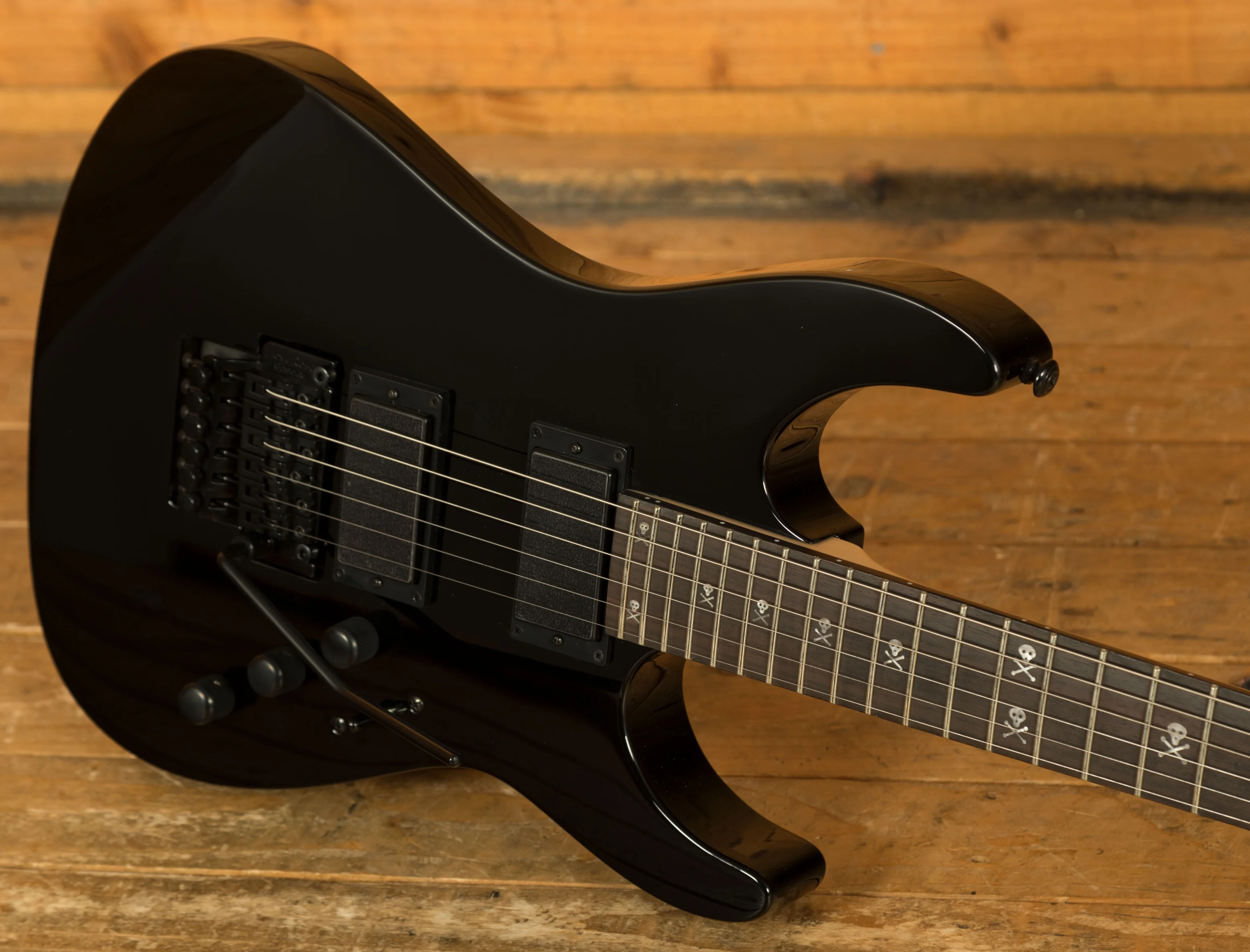 Hardware and electronics are chosen to perform reliably under heavy use. The Floyd Rose Special bridge allows for precise tuning stability, even during aggressive tremolo use, while the LTD tuners maintain accurate pitch over extended sessions. The ESP Designed LH-301 pickups deliver high output and clarity, producing the defined distortion and sustain that Kirk Hammett is known for. The KH-202 combines quality craftsmanship, versatile tone, and dependable performance, making it a strong choice for metal and hard rock players seeking a signature-level instrument at an excellent value.