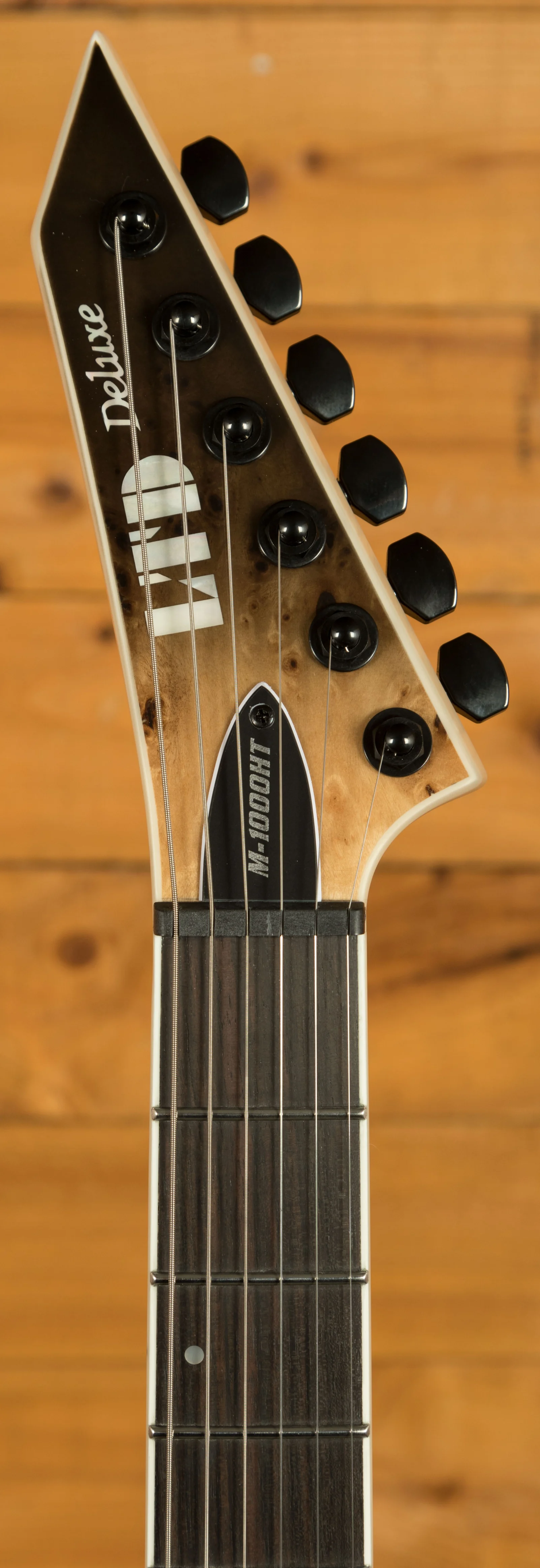 Components on the M-1000HT include a Fishman Fluence Modern Humbucker Alnico in the neck and a Fishman Fluence Modern Humbucker Ceramic in the bridge, this guitar is bursting with tone! loaded with a Hipshot bridge, and LTD Locking tuners. This is a real beauty.