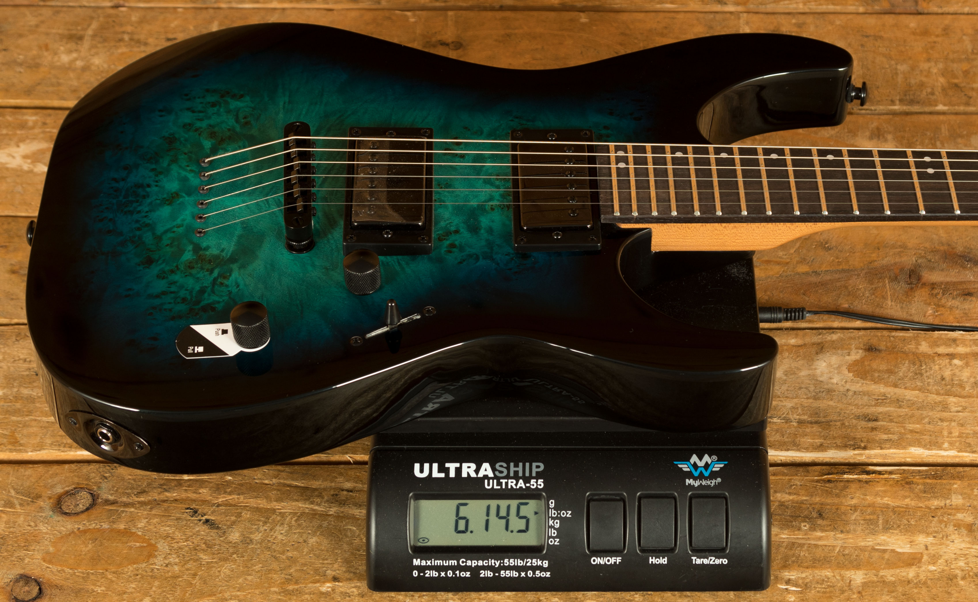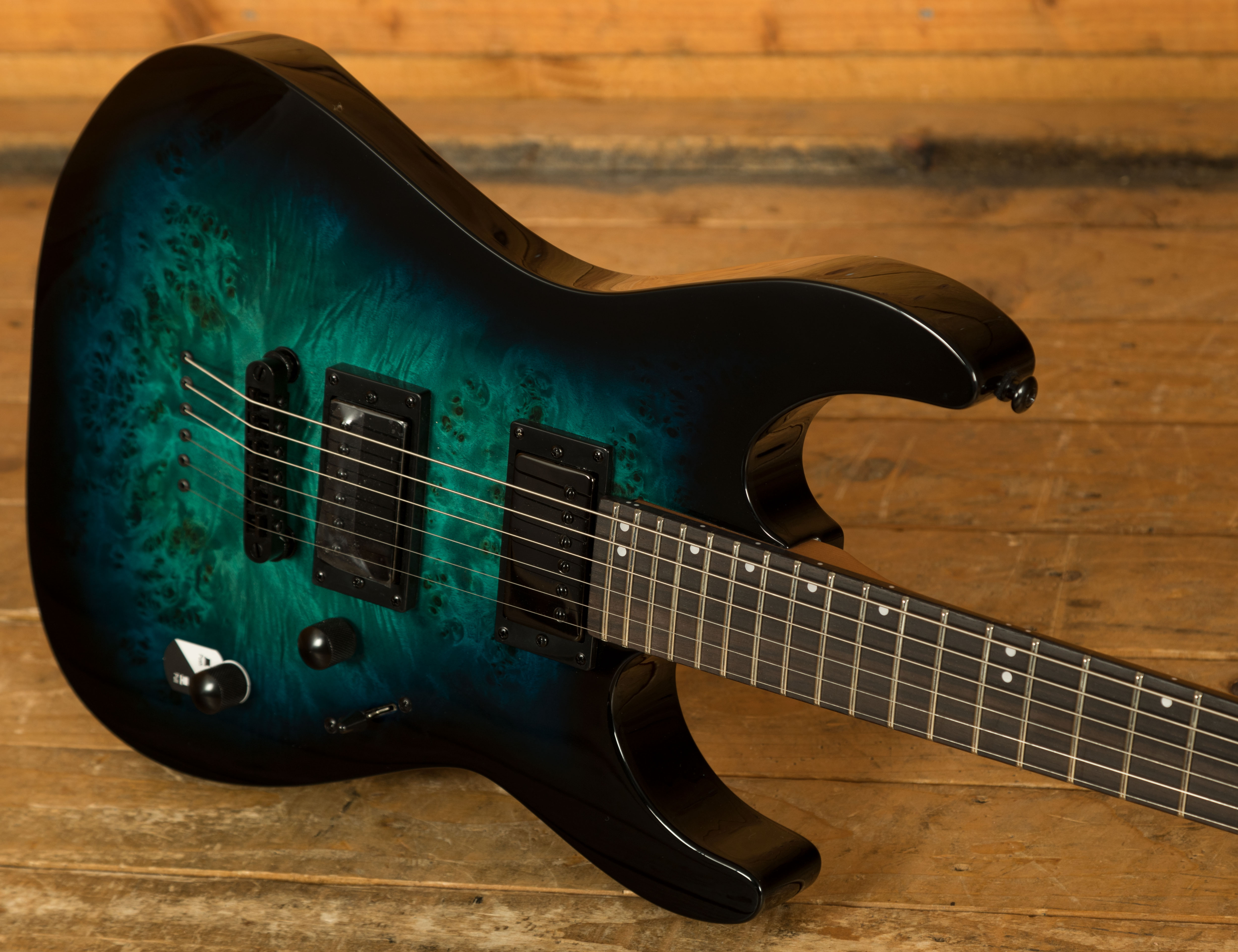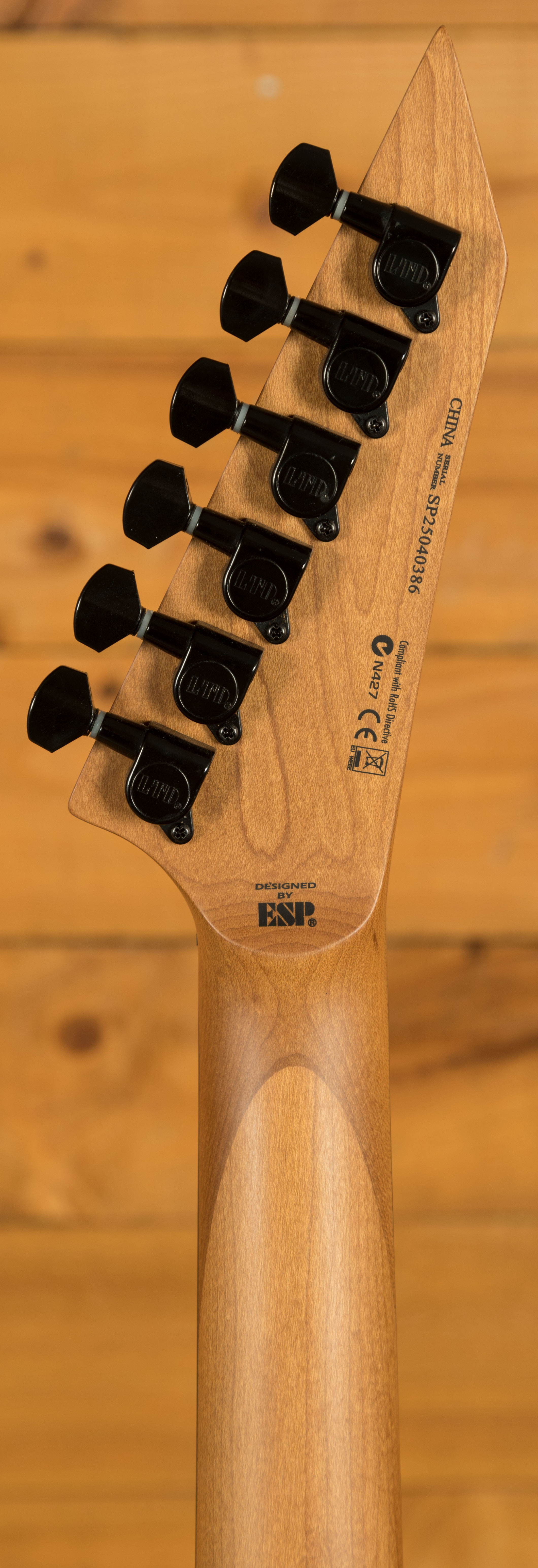 The ESP LTD M-200DX is part of LTD's DX range, designed to give musicians access to high-quality instruments at a more affordable price point. It features the ergonomic M body shape with a burled poplar top on a lightweight, resonant poplar body, offering both comfort and durability for extended playing sessions. Its bolt-on construction with a 25.5" scale length ensures a familiar feel and excellent note clarity, making it suitable for a wide variety of playing styles.