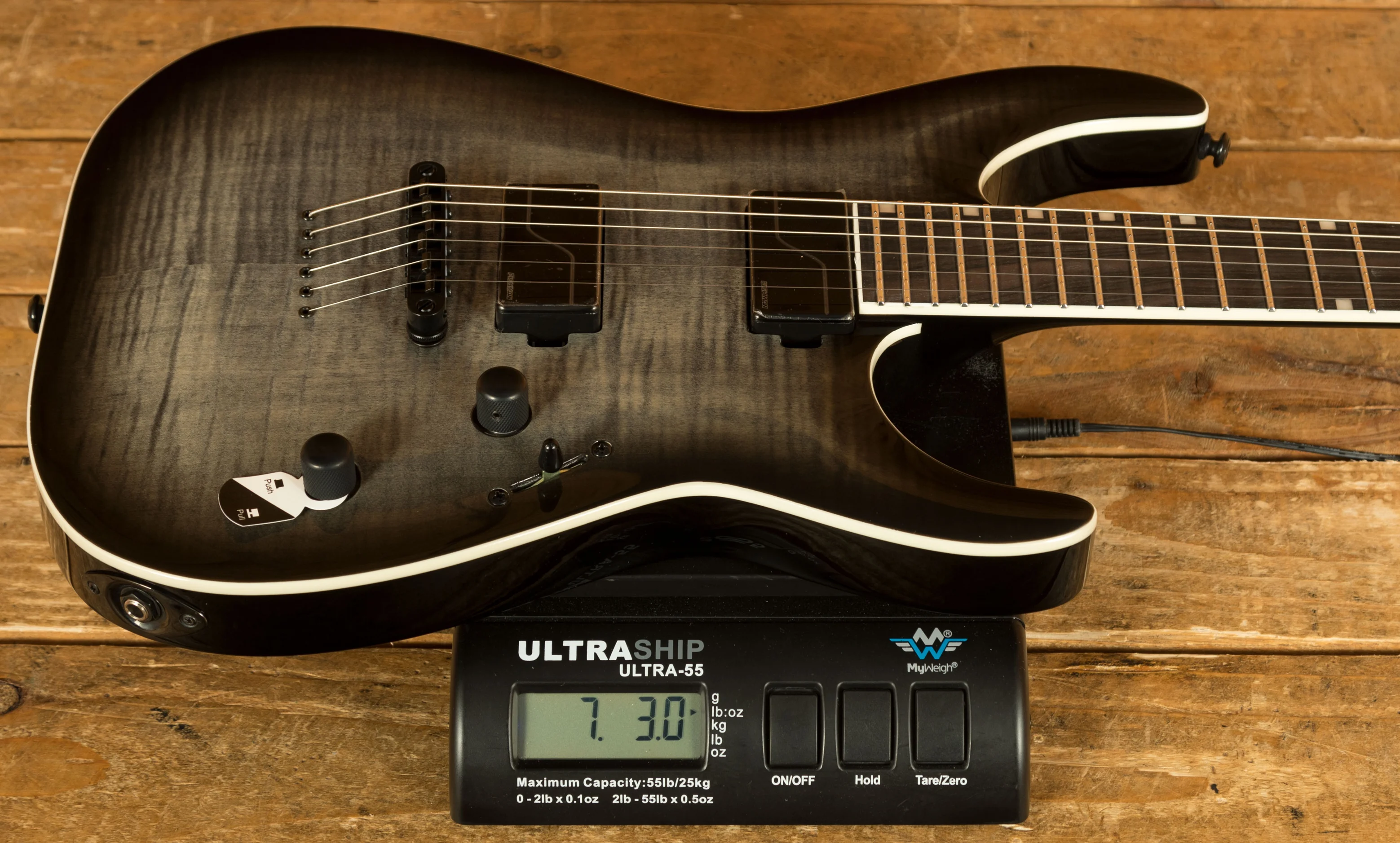 The set-thru construction and 25.5" scale provide smooth access to all 24 extra-jumbo stainless steel frets on the Macassar ebony fingerboard. The 3-piece maple neck features an extra-thin U contour for fast, comfortable playability.