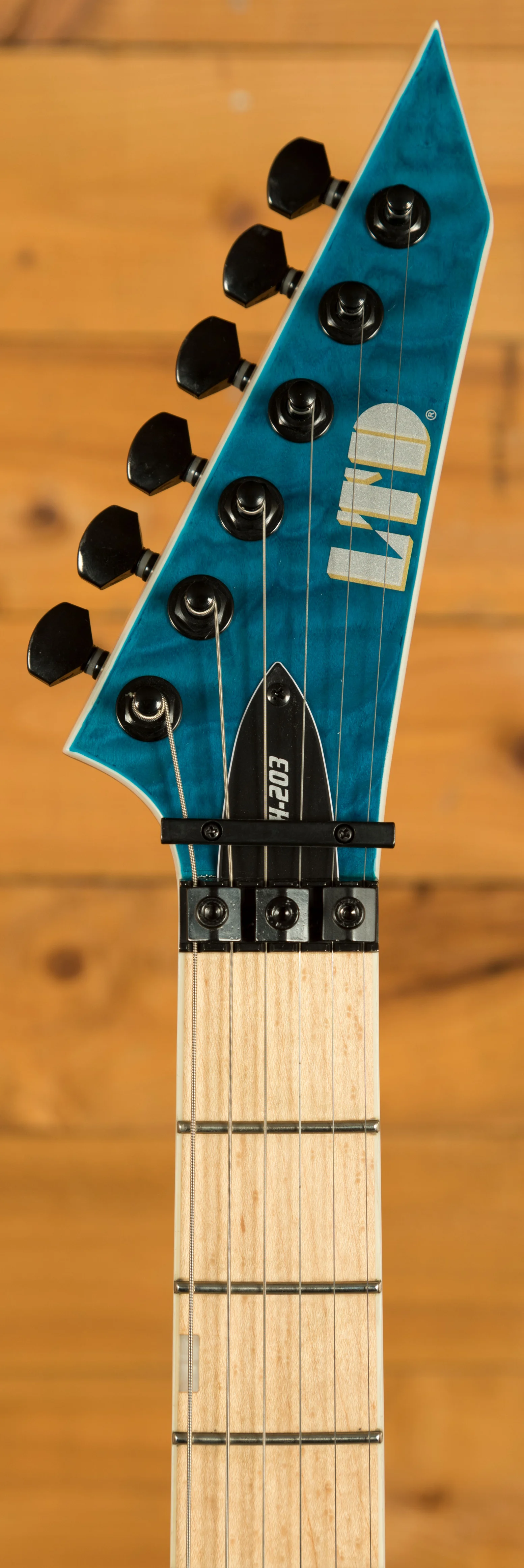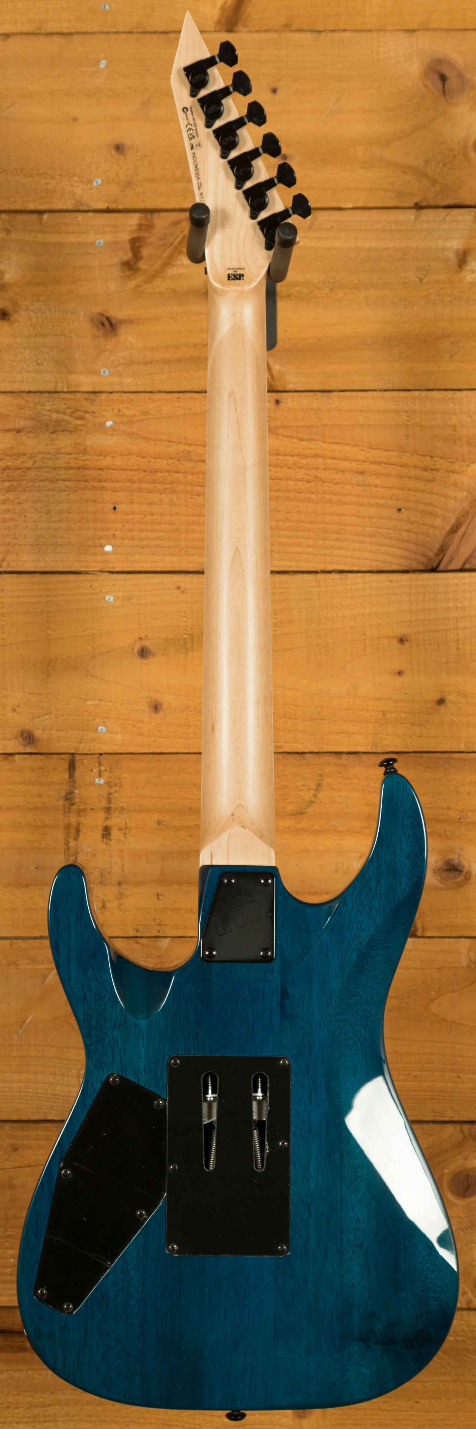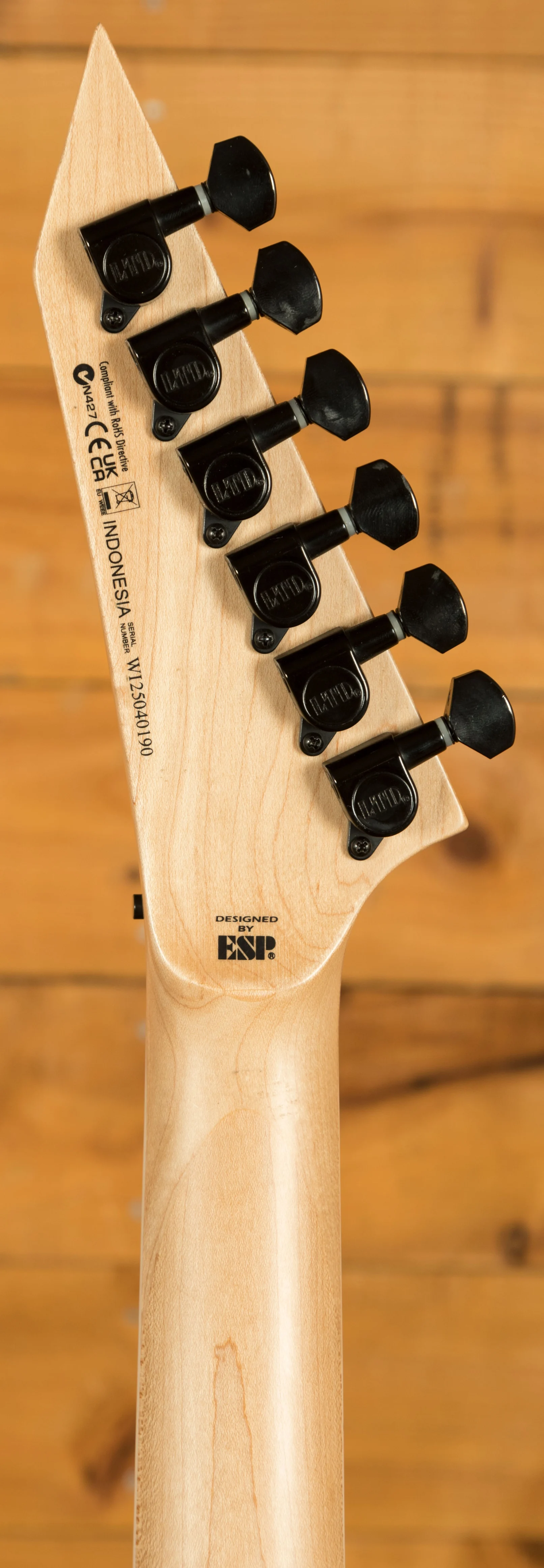 The guitar features a bolt-on maple neck with a maple fingerboard, offering a bright response and smooth playability. The Thin U neck profile, 25.5" scale length, and 350mm fingerboard radius make it fast and comfortable to play, while 24 extra-jumbo frets provide excellent control for solos and expressive bends. Equipped with an LTD by Floyd Rose tremolo system, players can achieve stable tuning even with extensive pitch shifts and dive-bombs, ensuring reliable performance both on stage and in the studio.
