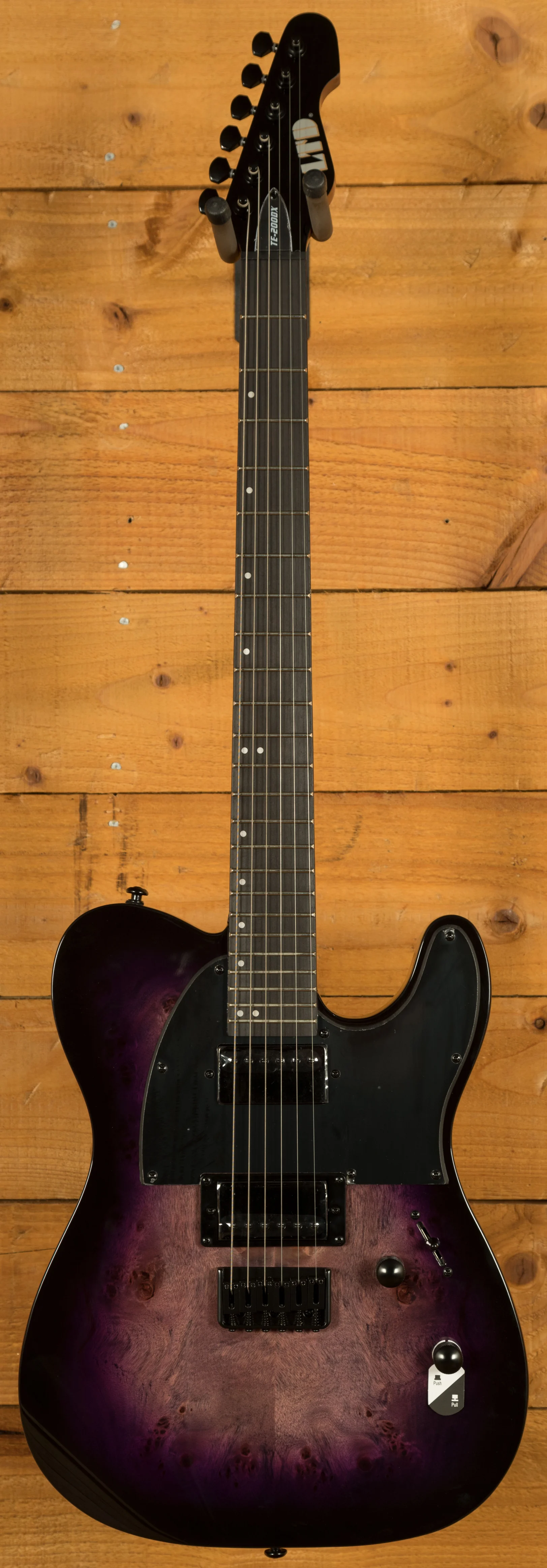The TE-200DX comes equipped with a pair of ESP LH-150 humbuckers in the bridge and neck positions, offering full, punchy tone across a wide range of genres. These pickups deliver strong output for rock and metal while still offering clarity for clean playing. A push-pull coil-split on the tone knob adds single-coil functionality, giving players additional tonal flexibility without the need for extra gear. This combination of quality components, versatile electronics, and player-focused design makes the TE-200DX a reliable and adaptable choice for both stage and studio use.