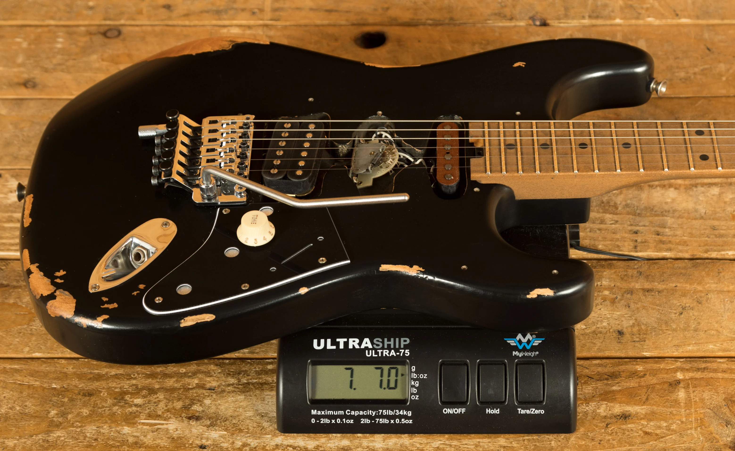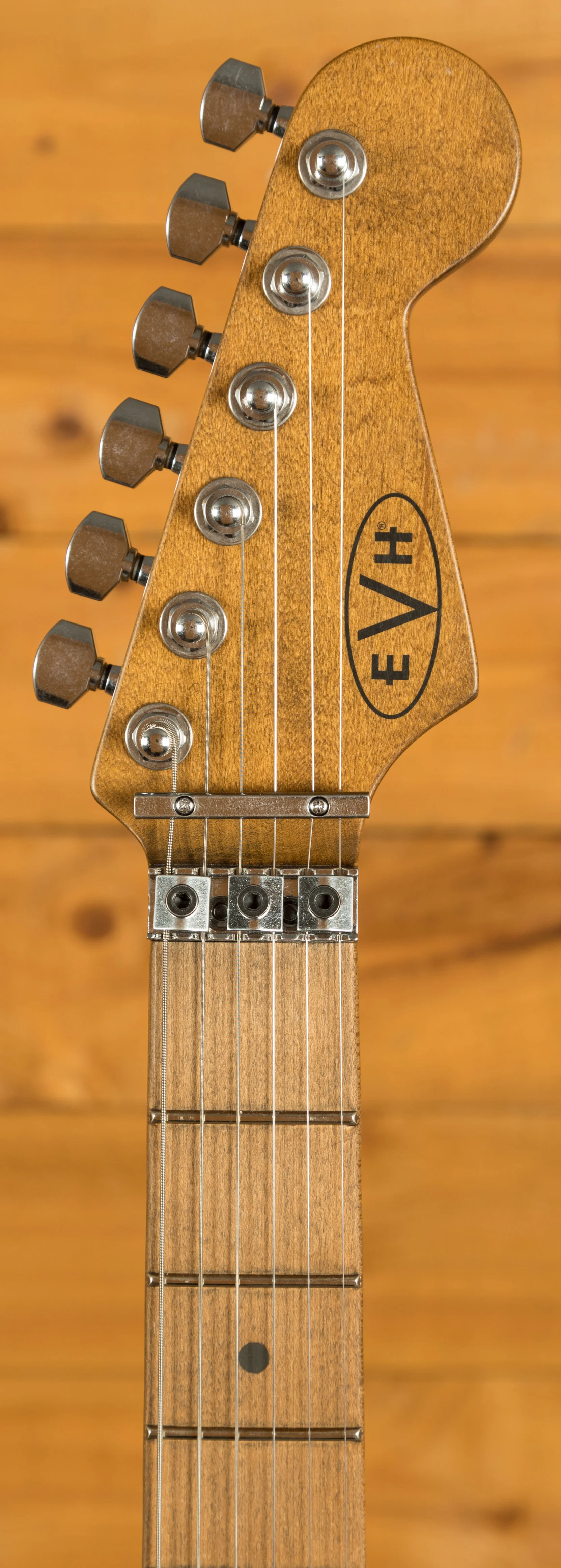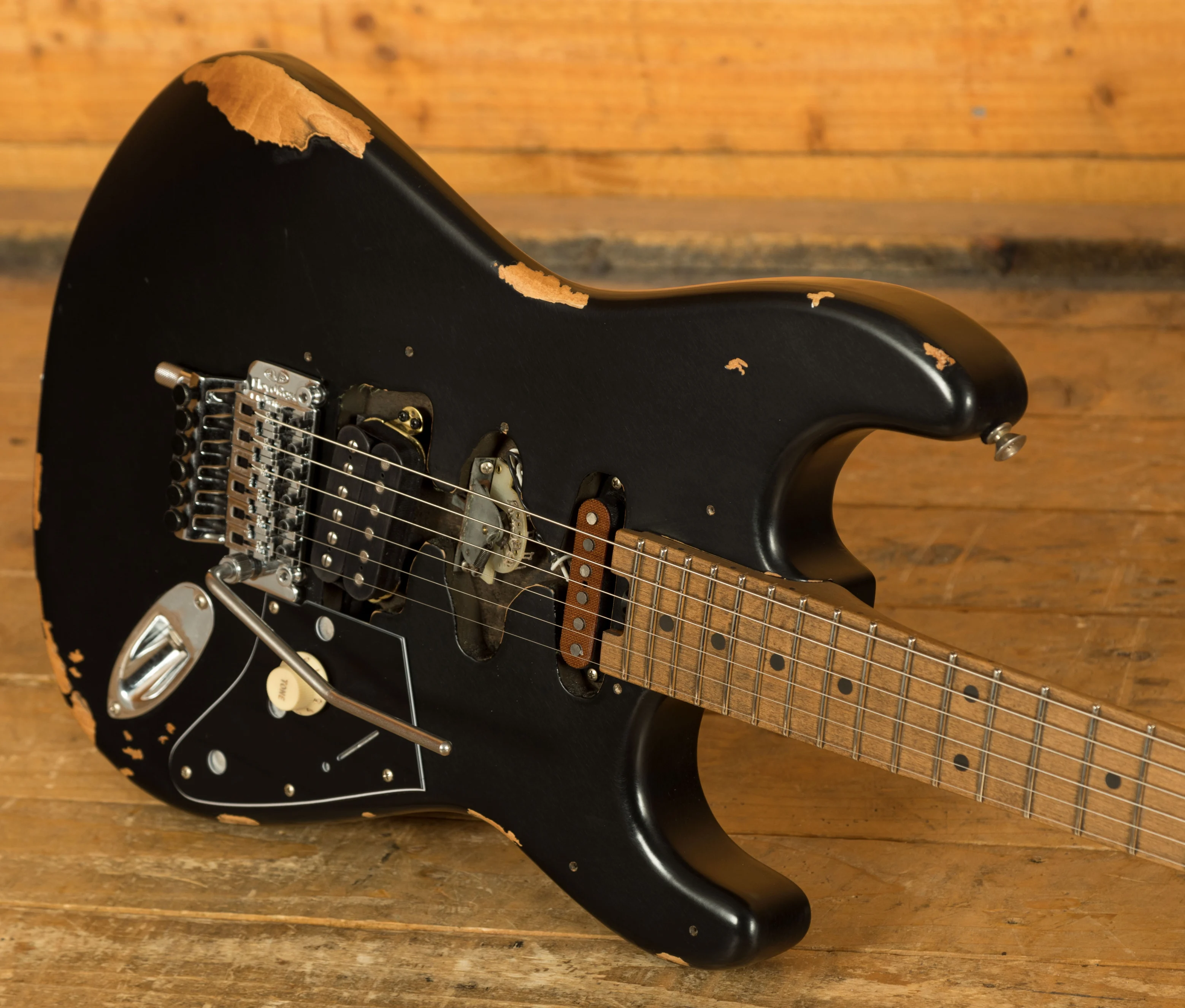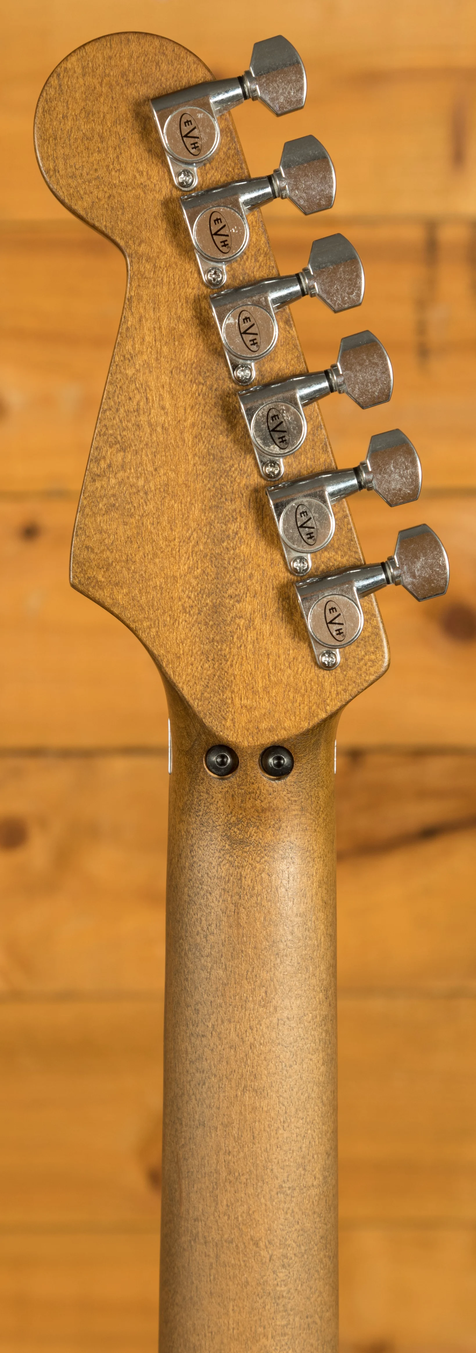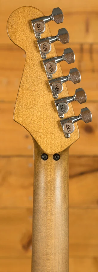 Equipped with a svelte quartersawn maple neck and fast-playing compound-radius relicd maple fingerboard, this guitar is born to shred.Intentionally positioned against the body, the dive-bomb-only D-Tuna-equipped Floyd Rose lets you mimic Eddies signature trem work with ease, along with giving you instant access to Drop D tuning. The EVH Frankenstein Series models are teeming with classic Van Halen vibe, but most importantly, it provides killer tone and lightning-fast playability.
