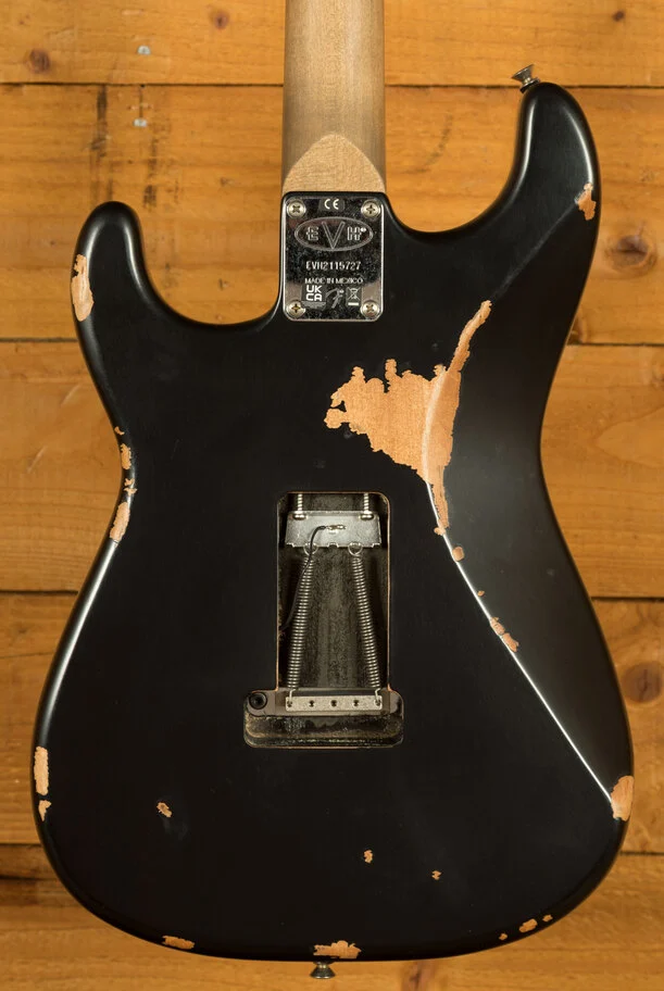 There are very few guitars out there that are as famous as Eddie Van Halens favorite 6-string sidekick, lovingly known as Frankenstein. This guitar was Eddies attempt to combine the sound of a classic single-cut solid body guitar with the physical attributes and tremolo bar functionality of a Fender Stratocaster. The EVH Frankenstein Frankie Series is a civilian variant of Eddie Van Halens iconic red, black, and white Frankenstrat guitarcomplete with a worn-in relicd finish.