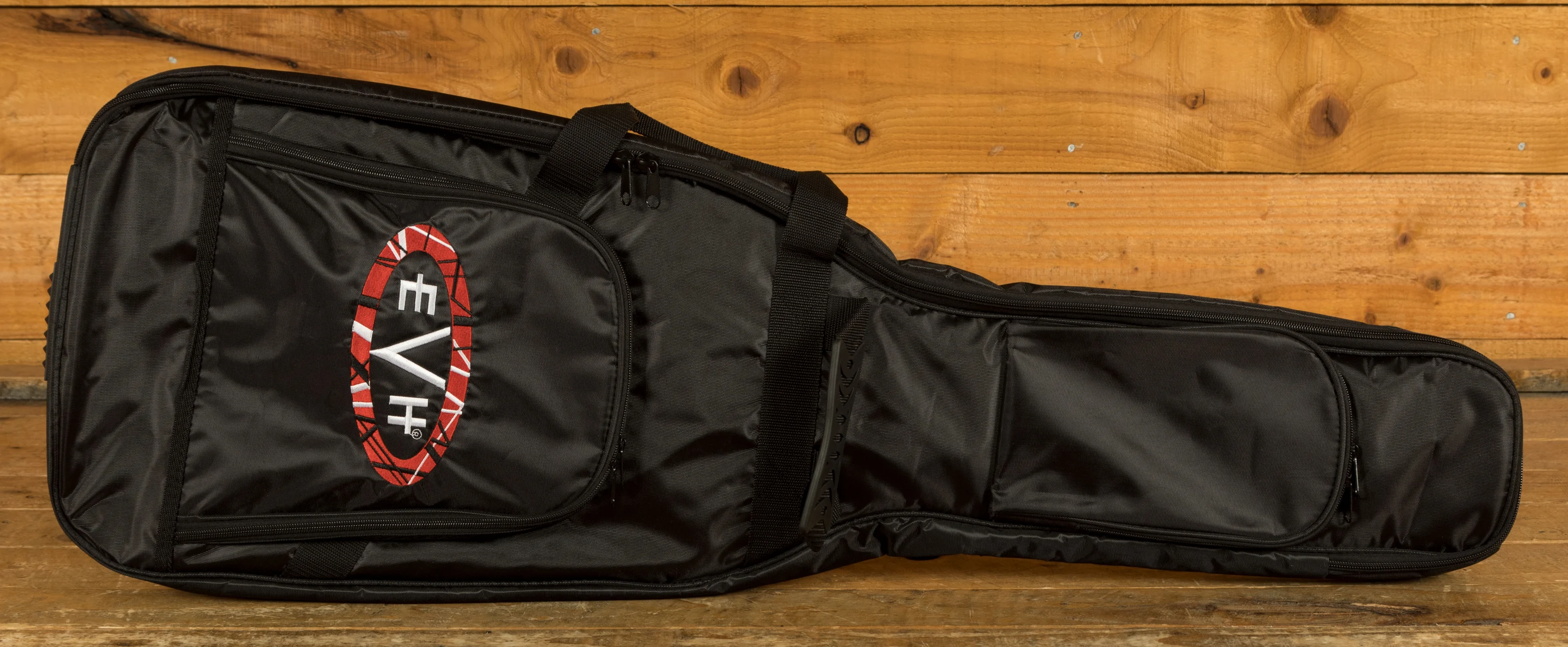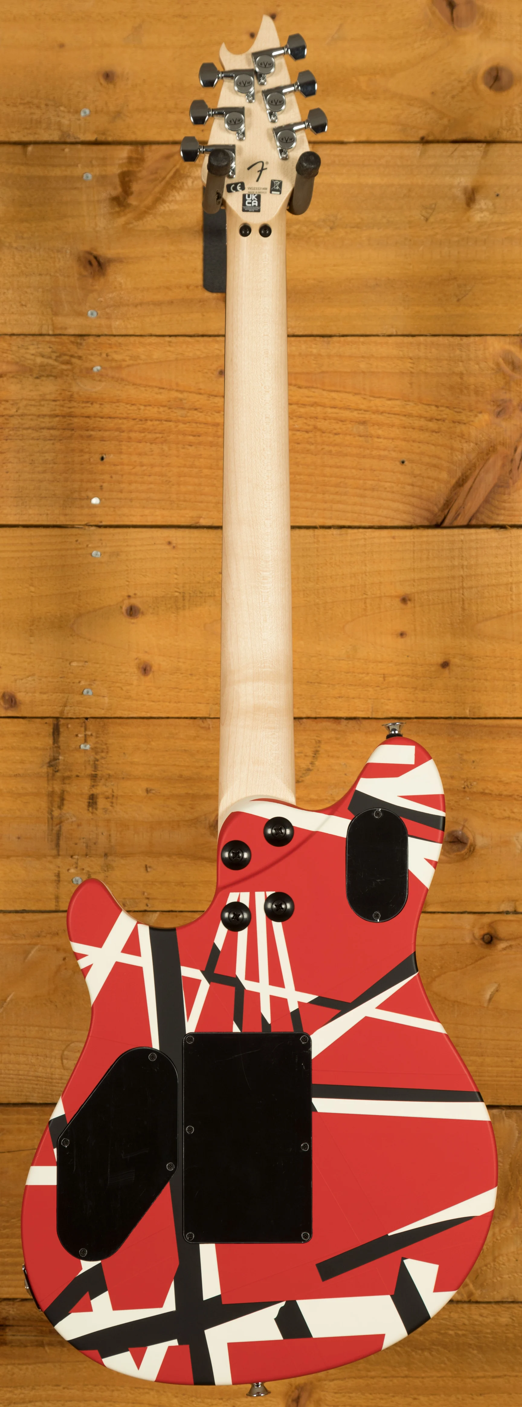 Crafted with precision, the Wolfgang Special Striped features a basswood body with an arched top, a robust graphite-reinforced quartersawn maple neck shaped to EVH's exacting specifications, and a speedy 12"-16" compound radius ebony fingerboard boasting 22 jumbo frets. The heel-mount truss rod adjustment wheel allows for swift and easy neck relief tweaks, catering to the demands of both players and guitar techs alike.