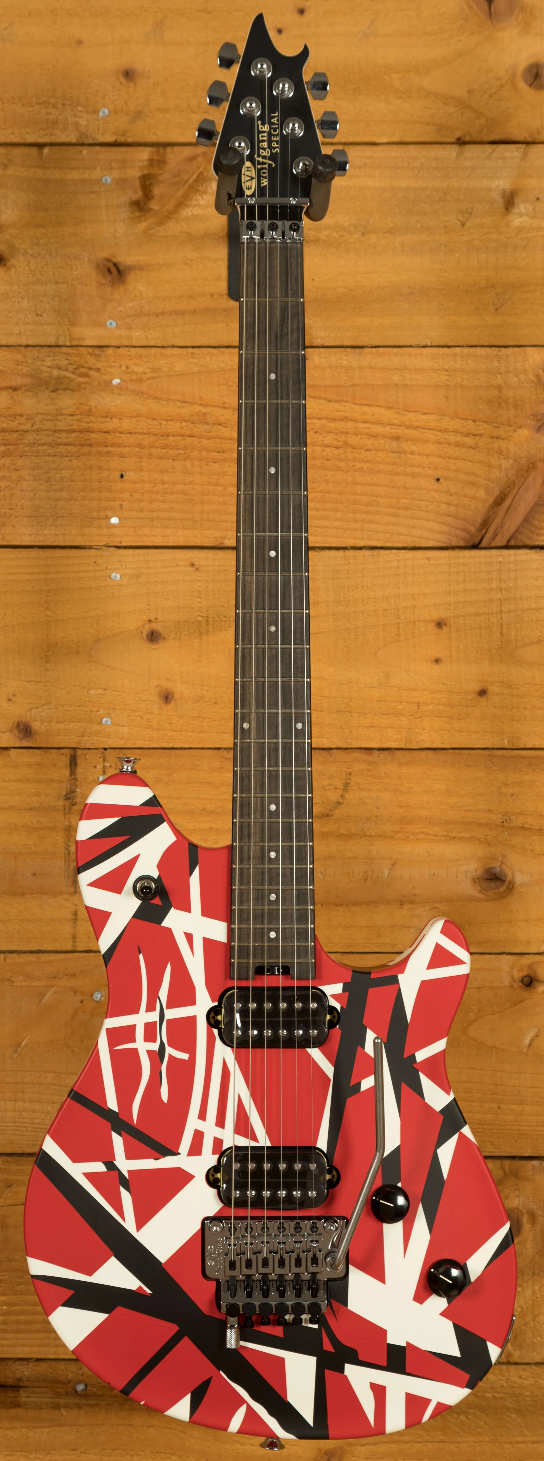 Introducing the EVH Wolfgang Special Striped - a guitar meticulously crafted for the dedicated player seeking both exceptional responsiveness and iconic style, primed for unleashing the power of rock. With its striking striped finish along with a black headstock and chrome hardware, this instrument commands attention.