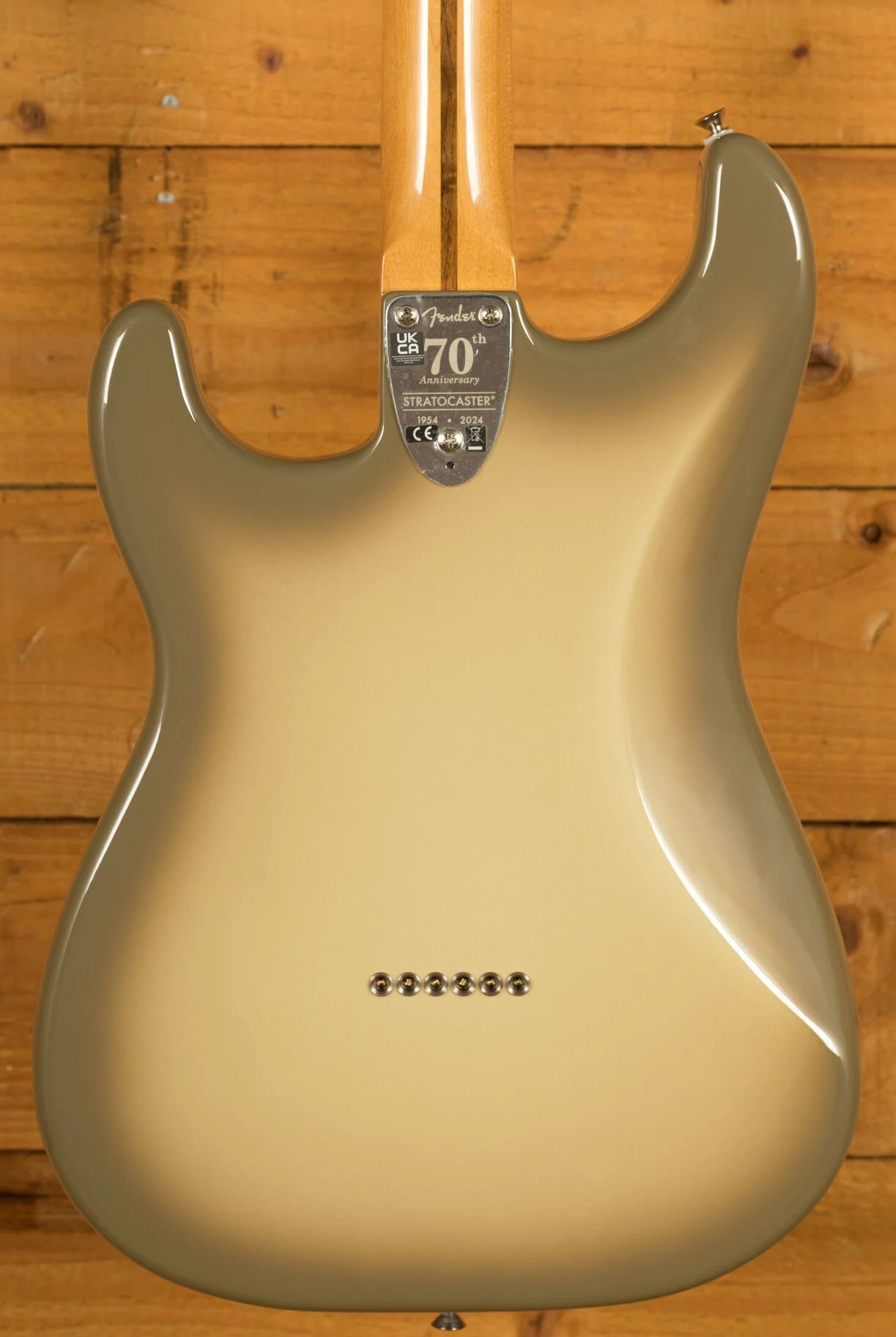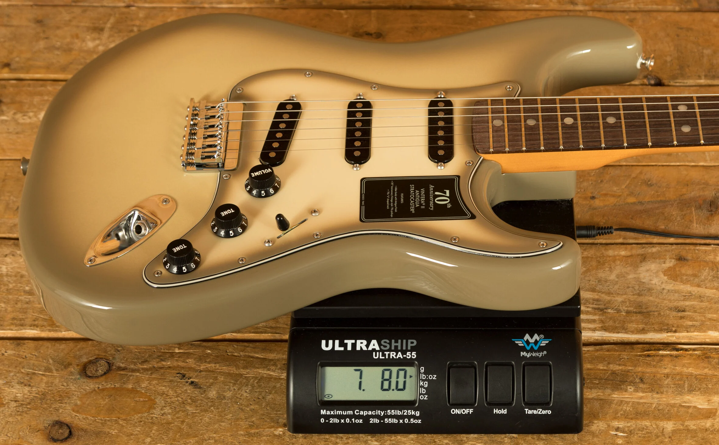 Fender proudly presents the 70th Anniversary Stratocaster Collection, commemorating seventy years of unparalleled style and sonic excellence. Each model in this collection pays homage to the rich heritage and legendary tones that have made the Stratocaster an enduring icon in the world of music. Whether you're a traditionalist who cherishes vintage authenticity or a forward-thinking musician in search of cutting-edge features, rest assured that within this collection lies the perfect instrument to suit your needs.