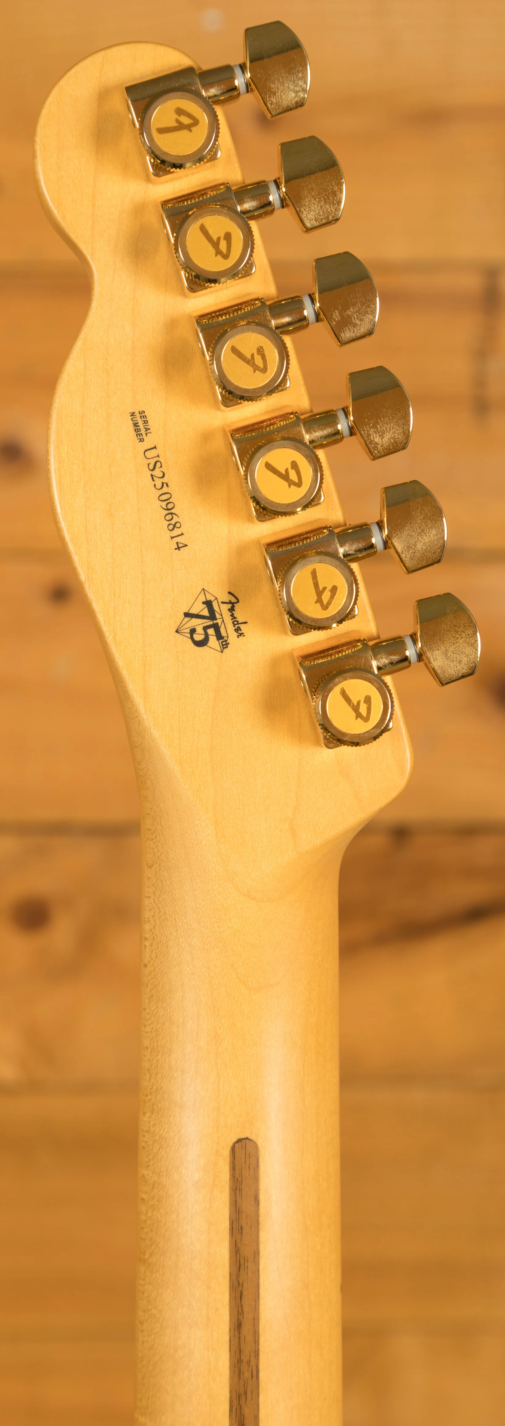 Widely regarded as the first commercially available solid body electric guitar, the Fender Telecaster had it's beginnings a whopping 75 years ago, fundamentally changing the course of music forever. With it's lack of feedback associated with hollowbody guitars, easy repairability, and that unmistakeable twangy tone, the Fender Tele was an undeniable success. The fact that 75 years later this same iconic shape is still as popular as ever is truly a testament to what makes it great.
