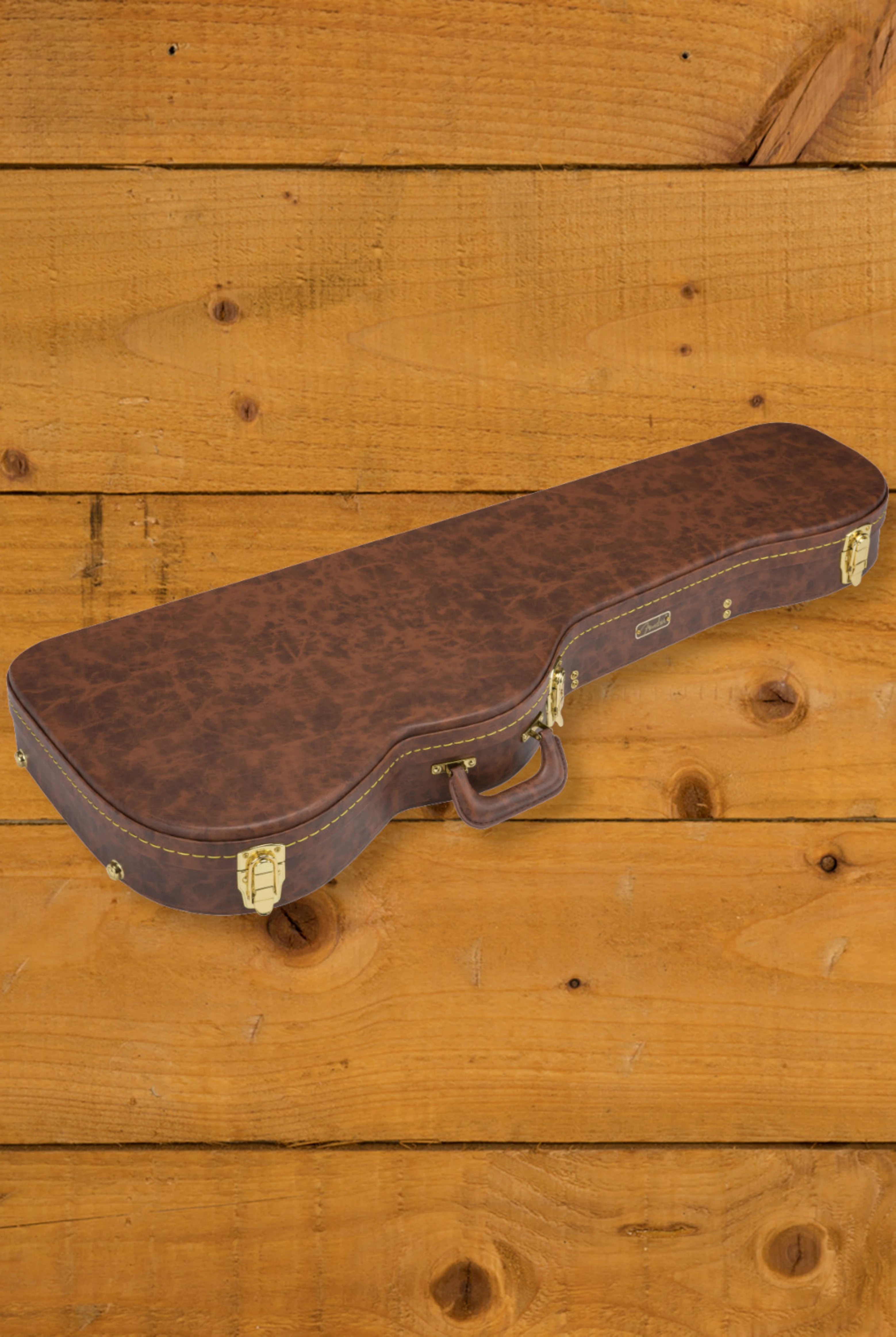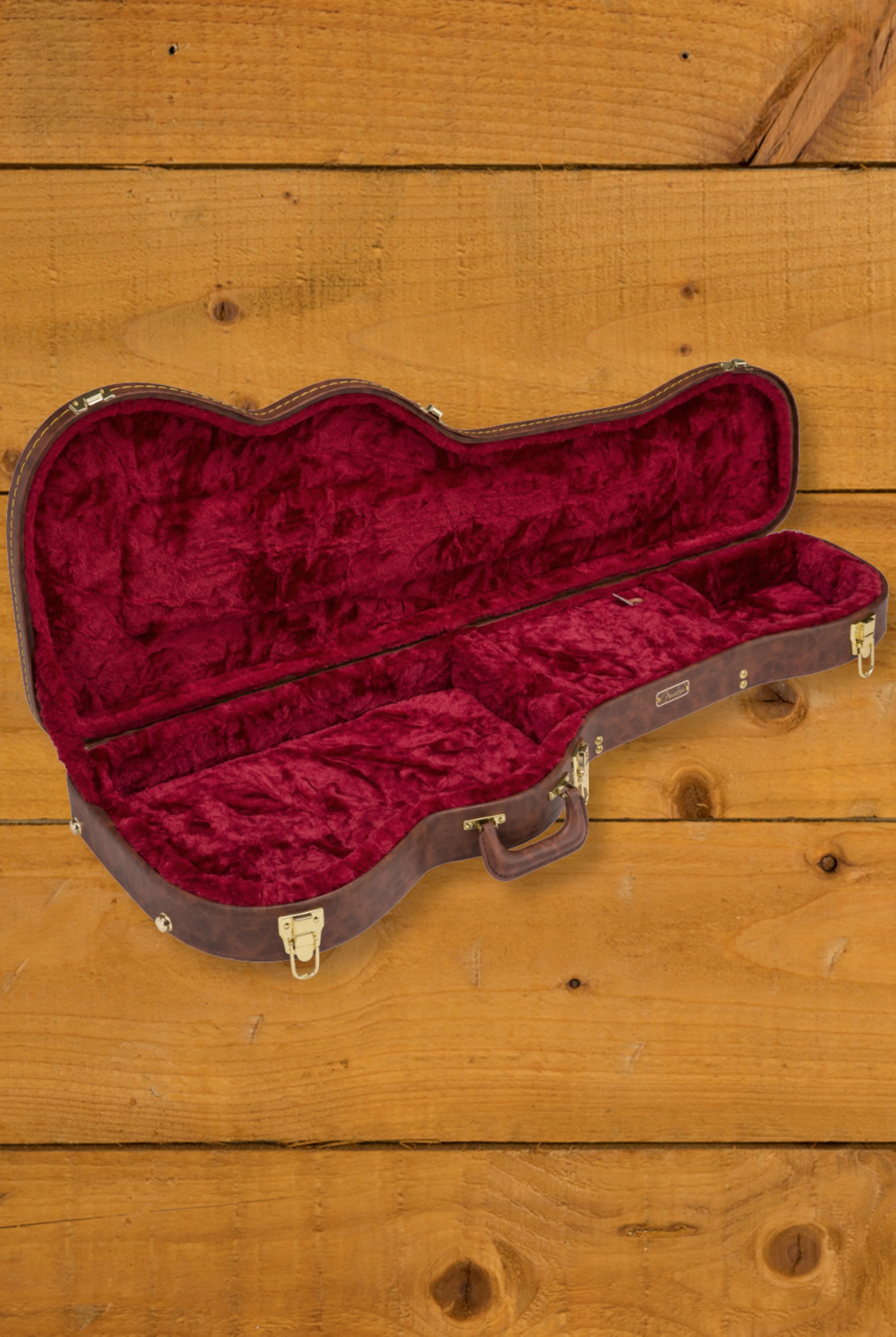 Step back in time with Fender's modern take on a classic piece - the iconic poodle case. The case is a perfect replica of the original case that came with the 1954 Stratocaster guitars, but with a modern twist. Built with birch plywood and adorned in a distressed faux cowhide covering with gold hardware for a timeless appeal, the slim profile case can easily fit into small spaces without taking up too much room.