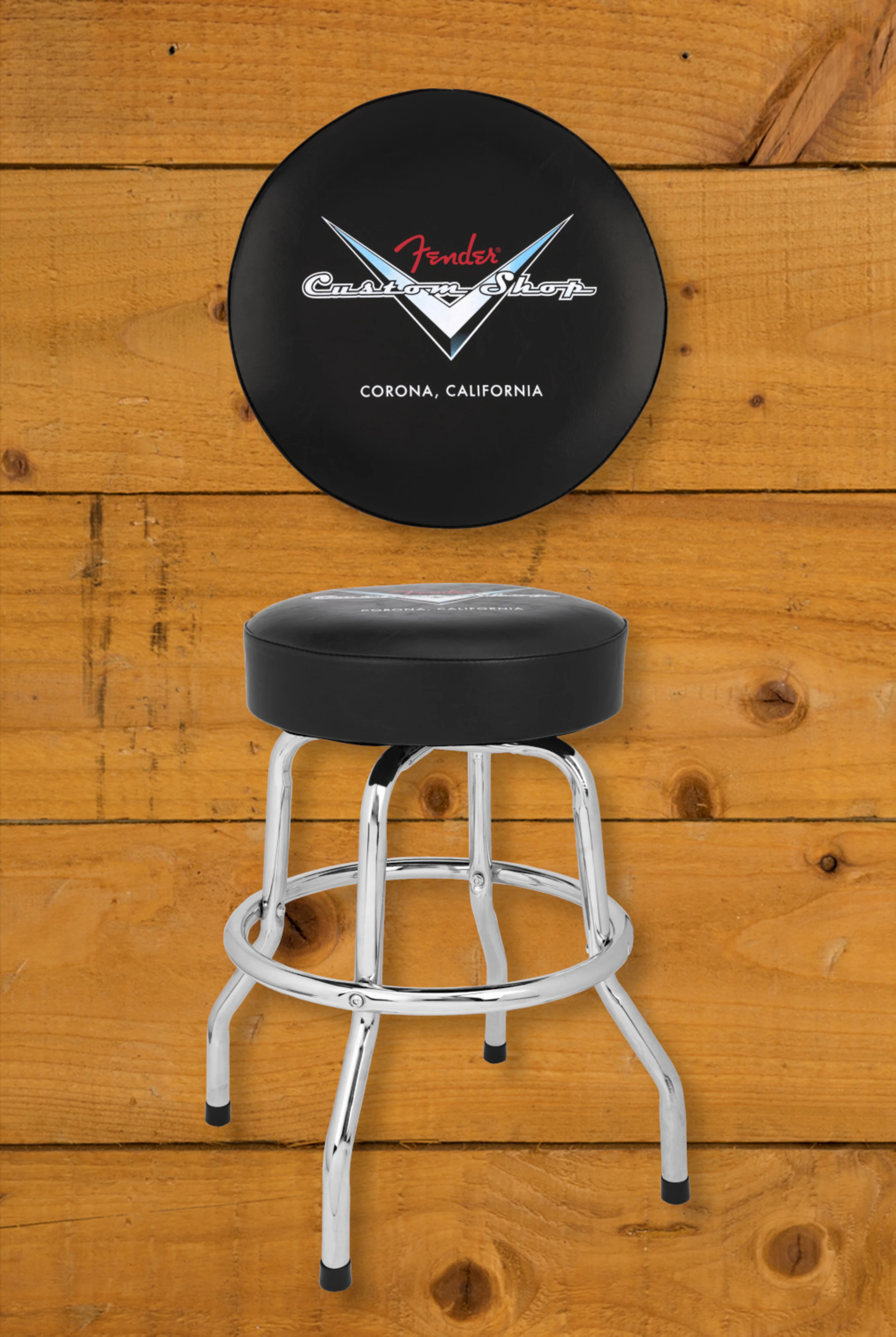 For your next jam session or wrestling up to your favourite bar, Fender has the stool for you. The Fender Custom Shop chevron logo barstool is just what every guitar player needs. This classic black barstool with our iconic Fender Custom Shop chevron logo and chrome legs is the perfect addition to your home, office, studio or party cave. Cheers!! Your new barstool will come in recyclable, frustration free packaging. Fender is actively searching for solutions to become more sustainable.