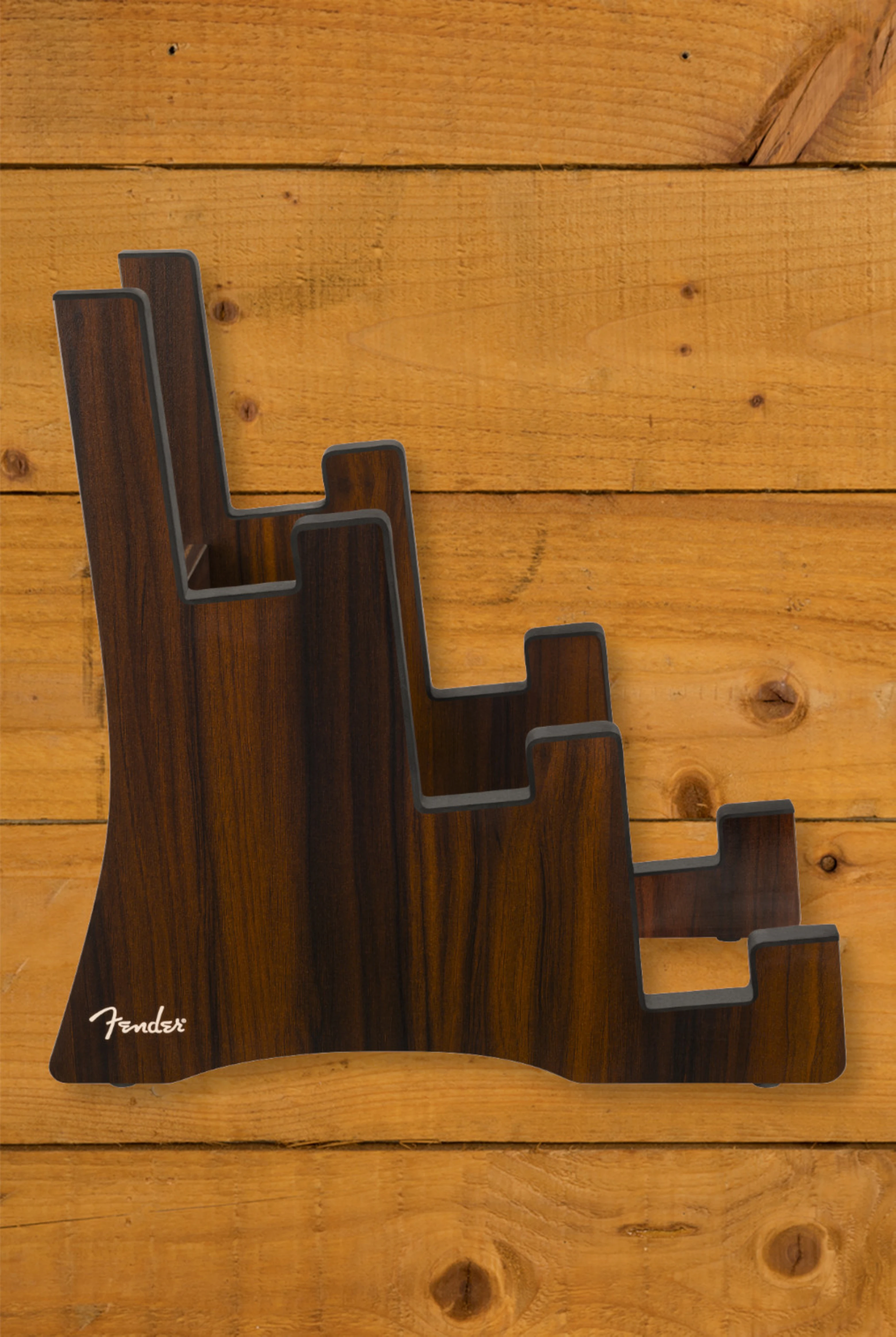 Introducing the Fender Deluxe Wooden 3-Tier Guitar Stand, a part of Fender's Gear Furniture line that seamlessly combines style and functionality for both players and collectors. Crafted with precision and durability in mind, this stand serves as an attractive solution to showcase your gear, enhancing the aesthetic of your home or studio.