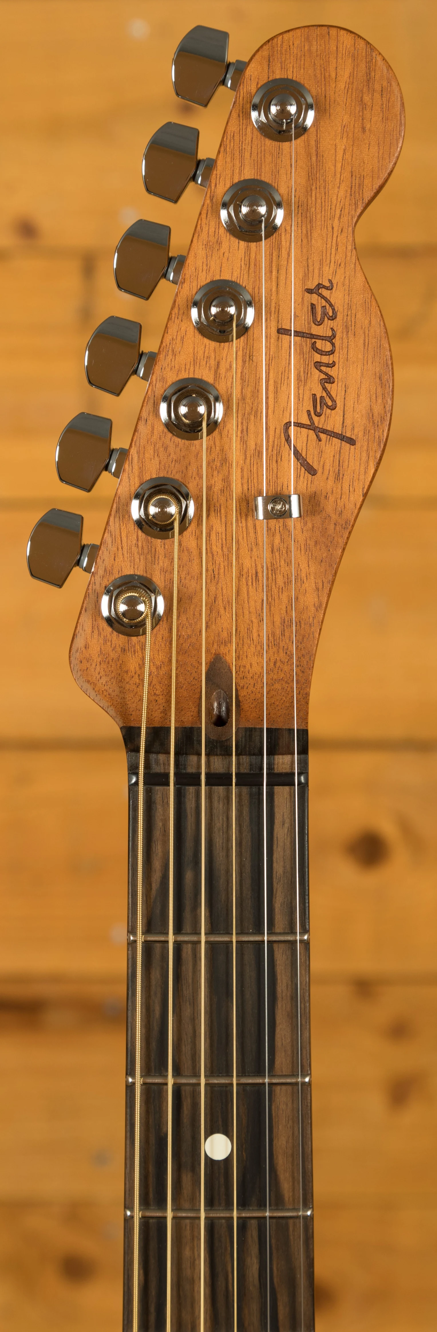 The hollow Mahogany Telecaster style body is really loud and super resonant, there's plenty of projection here so it sounds great unplugged. The real magic with the Acoustasonic occurs when you plug it in, with 3 different pick up systems, this guitar is never short of tonal options. The Fender and Fishman designed Acoustic Engine delivers 10 different body style and tone wood combinations while the Noiseless Magnetic pickup offers authentic hum free electric tone. You can use this pickup individually or blend it with an acoustic voice to create your own unique sound. The third pickup option is Fender's 'Stringed Instrument Resonance System' (SIRS), this allows you to achieve the response and harmonic quality of a true acoustic guitar.