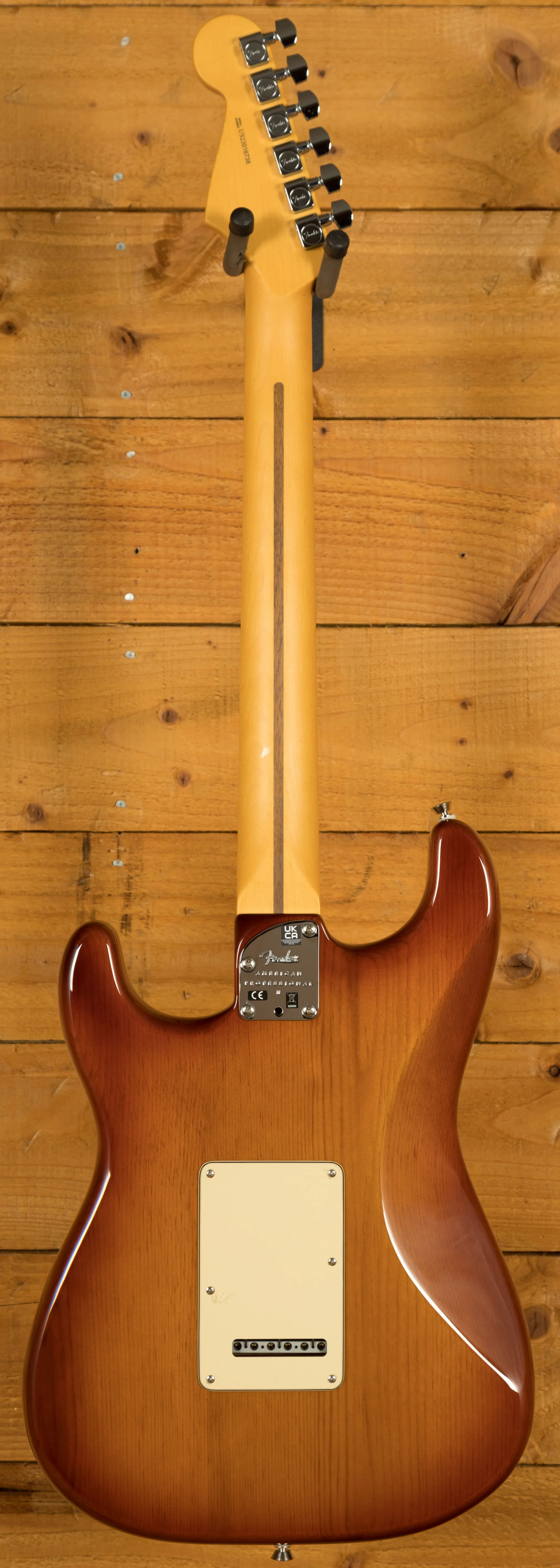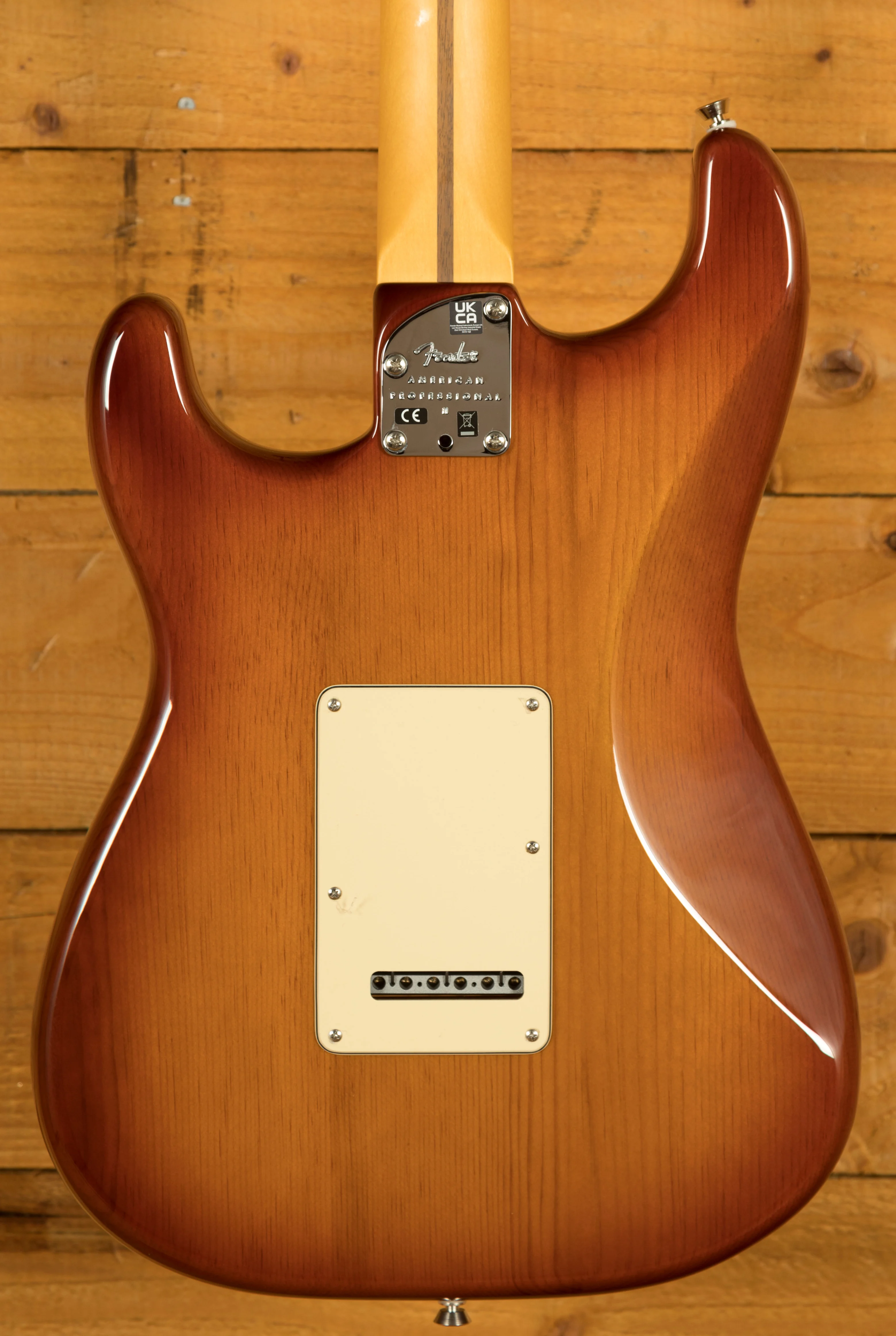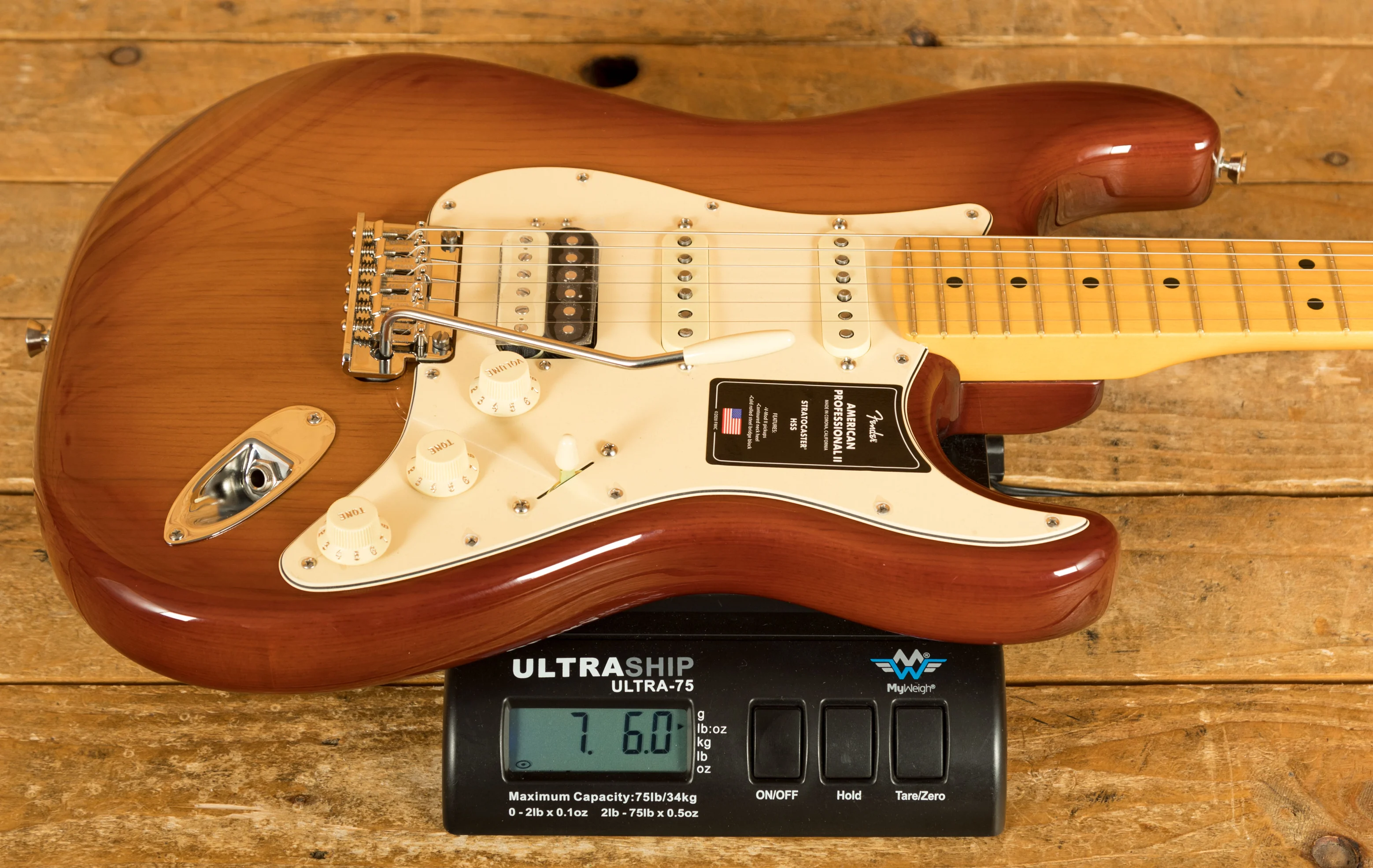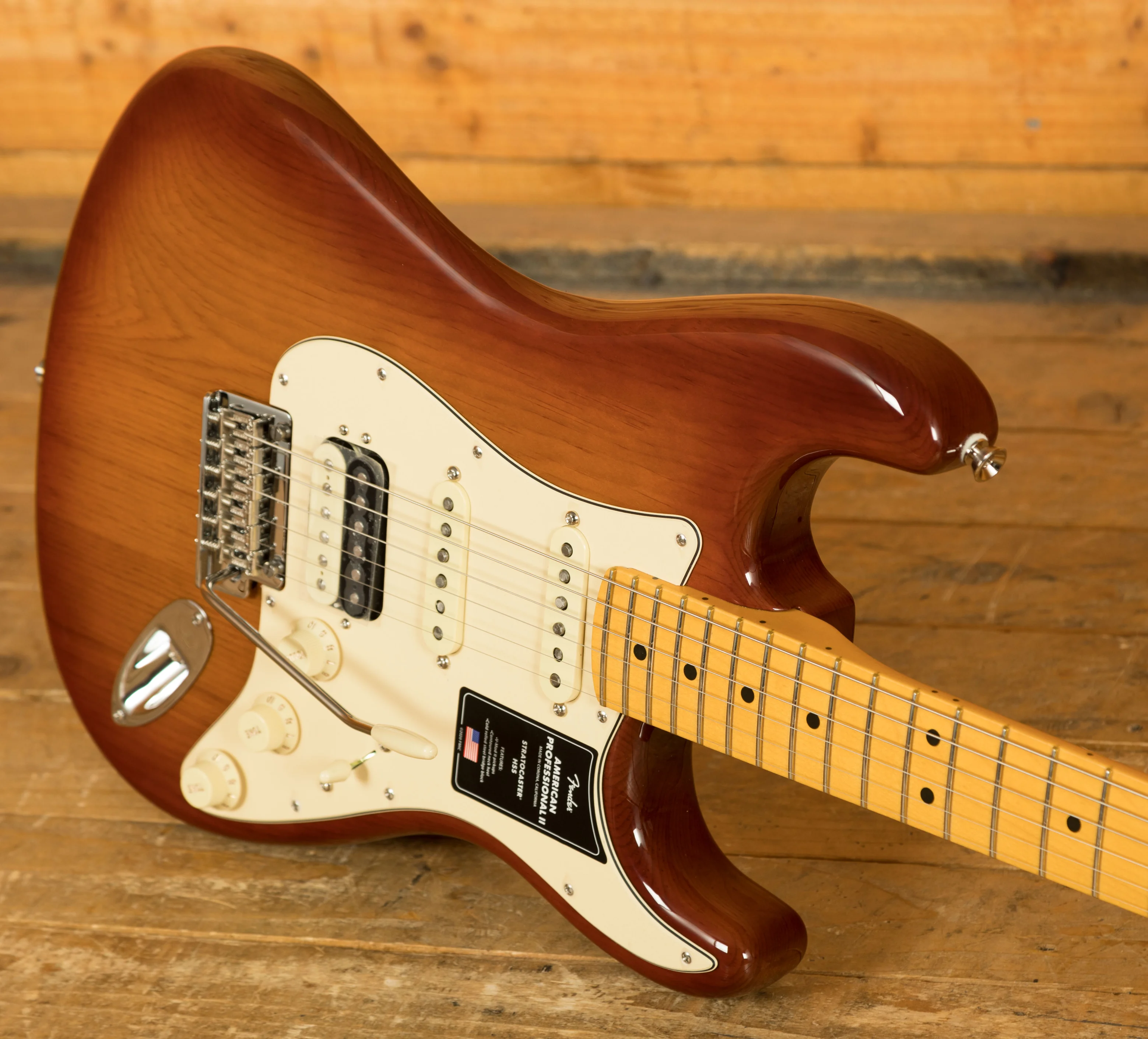 The Roasted Pine body is typically comfortable,as all Strat's are. Finished in the brilliant Sienna Sunburst, it looks real slick. The Maple neck and fingerboard feature a Deep C profile, designed for speed and comfort; it's equally at home playing big chords or intricate lead work. 22 frets, a 9.5" radius and 25.5" scale length make this Stratocaster feel familiar and supremely comfortable. The Professional II range brings a new contoured neck heel , soft rolled fingerboard edges and a super natural finish for improved feel and comfort