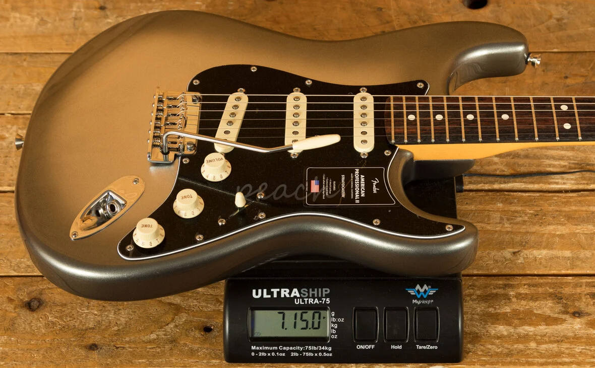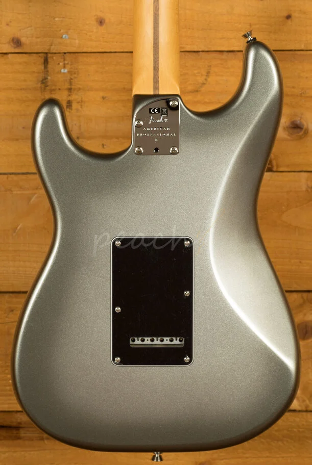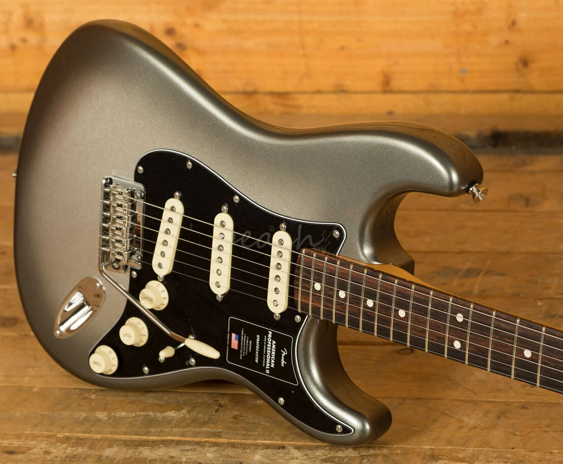 The Alder body is typically comfortable,as all Strat's are, finished in the brilliant Mercury option, it looks real slick. The Maple neck with a Rosewood fingerboard feature a Deep C profile, designed for speed and comfort; it's equally at home playing big chords or intricate lead work. 22 frets, a 9.5" radius and 25.5" scale length make this Stratocaster feel familiar and supremely comfortable. The Professional II range brings a new contoured neck heel , soft rolled fingerboard edges and a super natural finish for improved feel and comfort