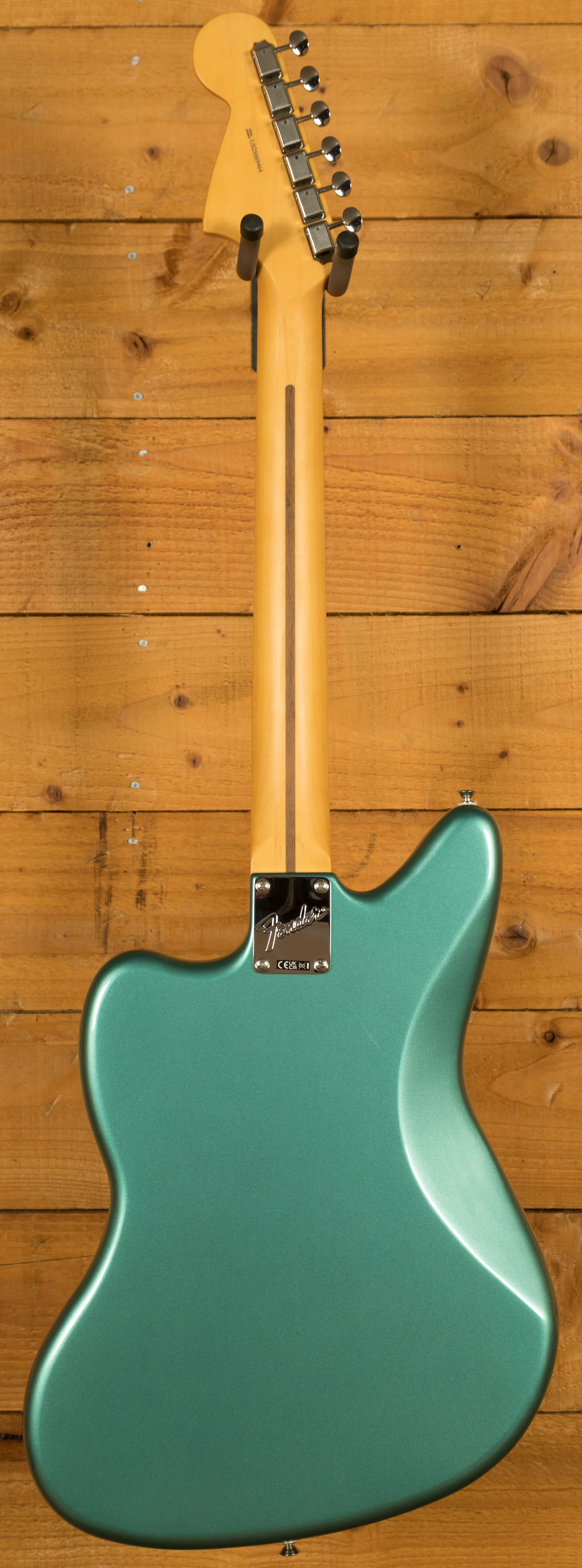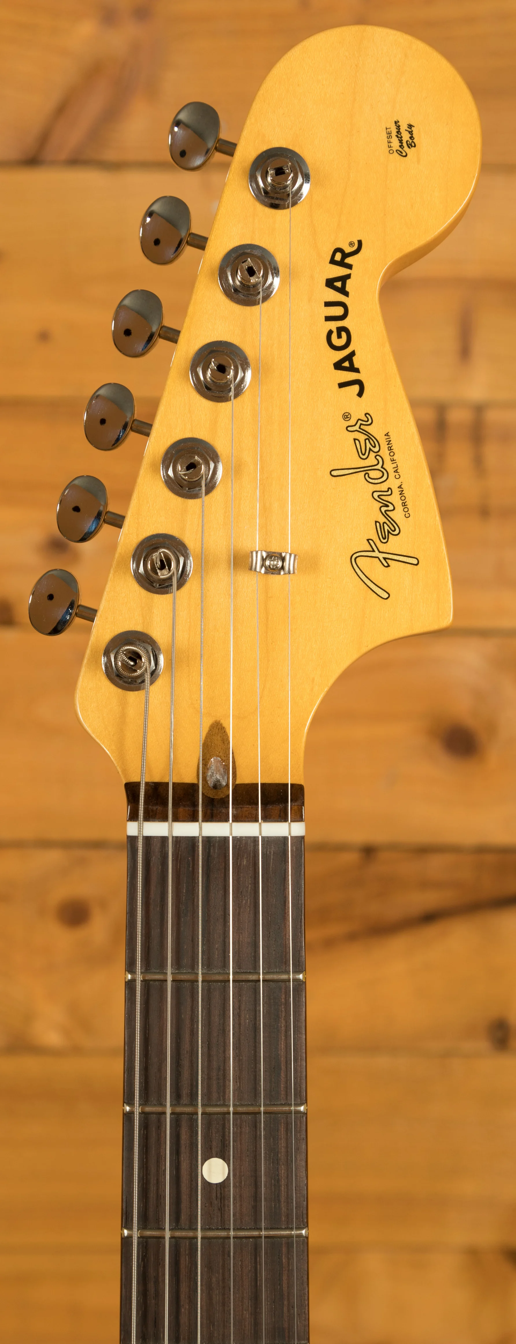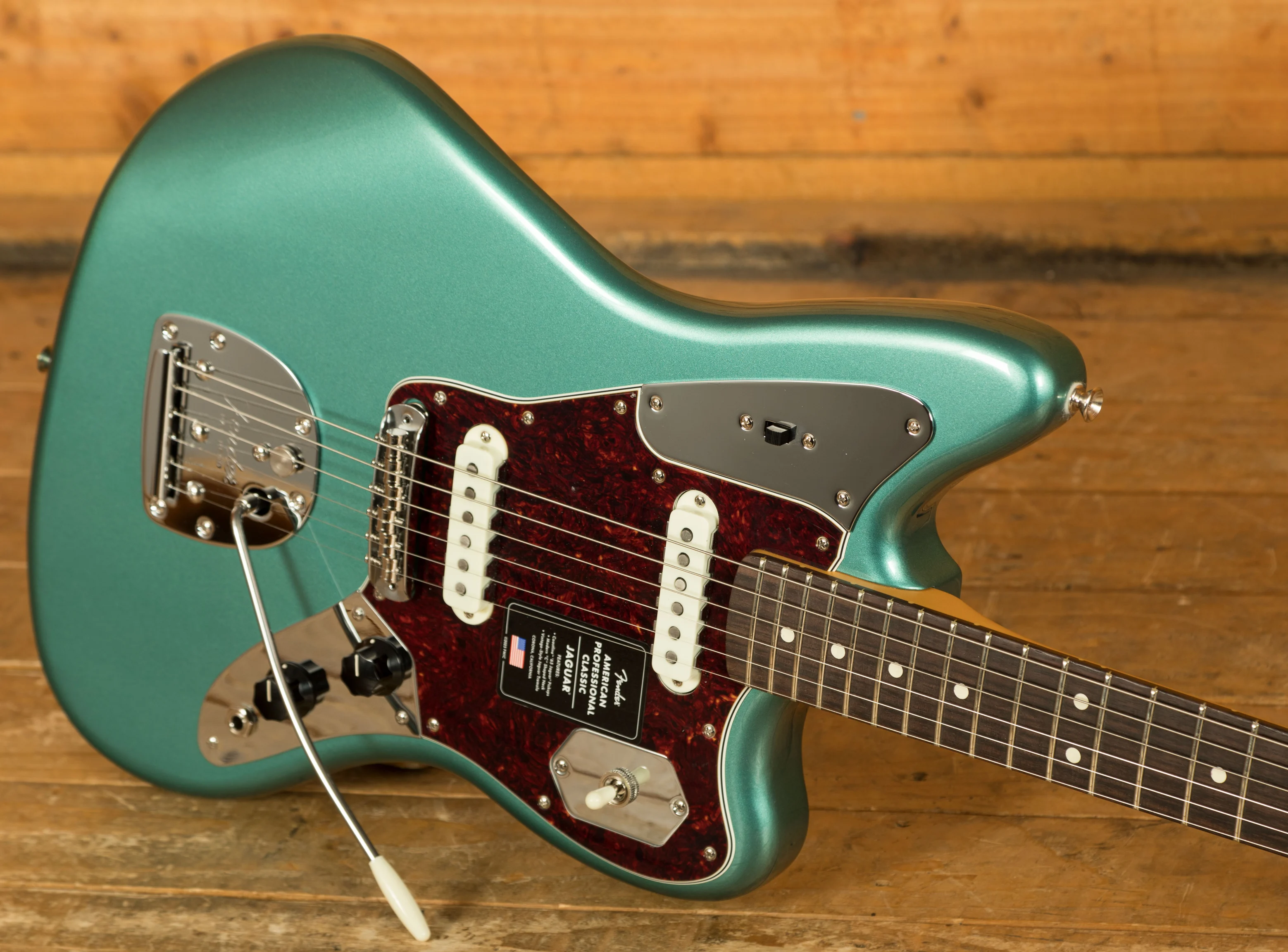 Designed for modern comfort and precision, the Modern "C" neck profile offers a smooth, ergonomic feel that suits a wide range of playing styles. The 9.5" radius fingerboard and medium jumbo frets allow for fast, accurate fretting and effortless string bending. Vintage-style hardware and Staggered ClassicGear tuners combine classic Fender aesthetics with reliable tuning stability and smooth vibrato performance from the Jaguar's floating tremolo system. Together, these features make the American Professional Classic Jaguar a dependable and inspiring instrument for professional musicians and serious enthusiasts alike.