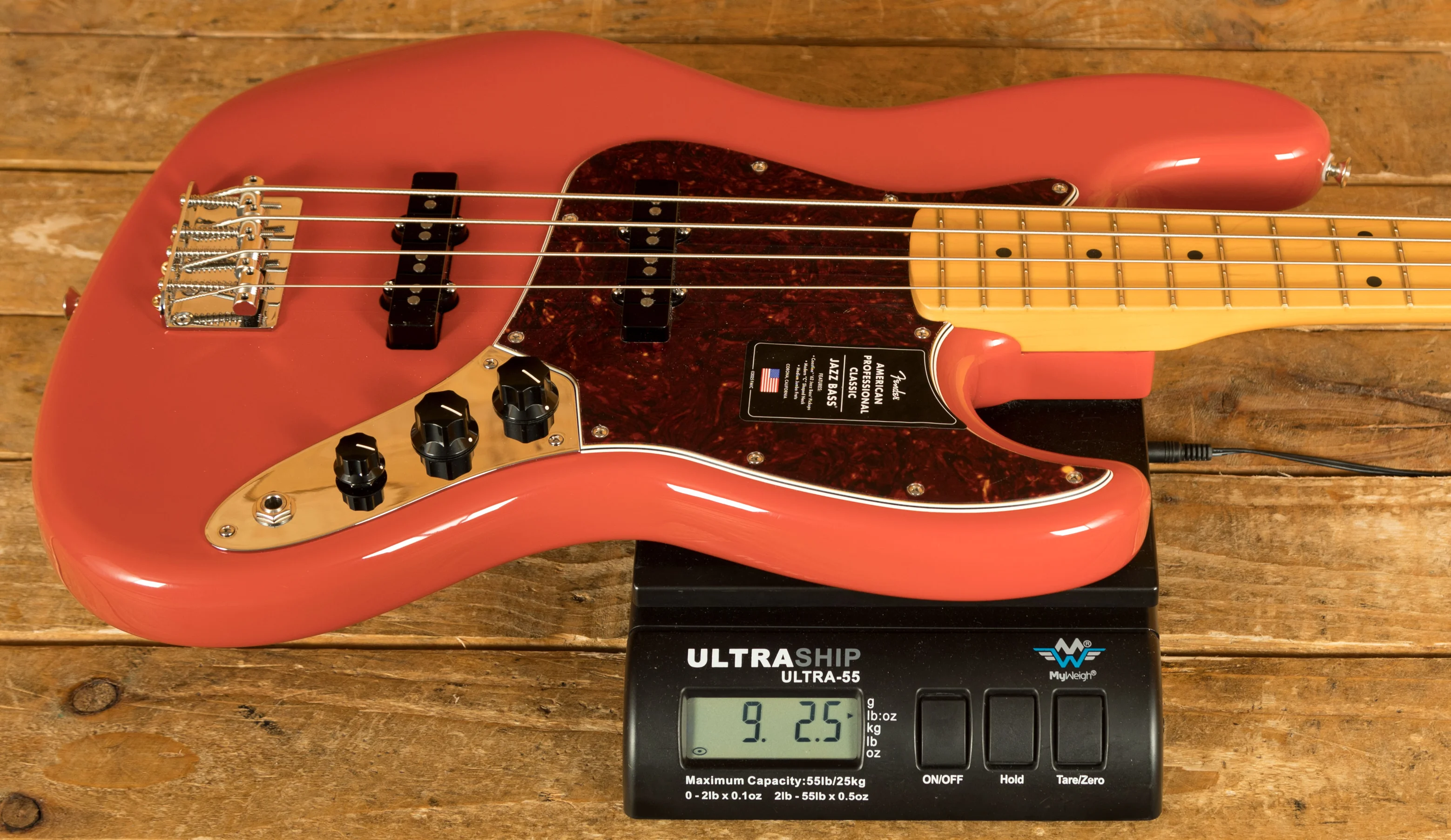 The Fender American Professional Classic Jazz Bass is designed to deliver the feel, tone, and reliability that today's bassists demand. Built in the USA, this model combines the timeless appeal of Fender's iconic Jazz Bass design with carefully refined modern updates. Its alder body provides a resonant foundation with excellent balance across the tonal spectrum, offering punchy mids and solid low-end response that suit a wide range of playing styles and musical genres.