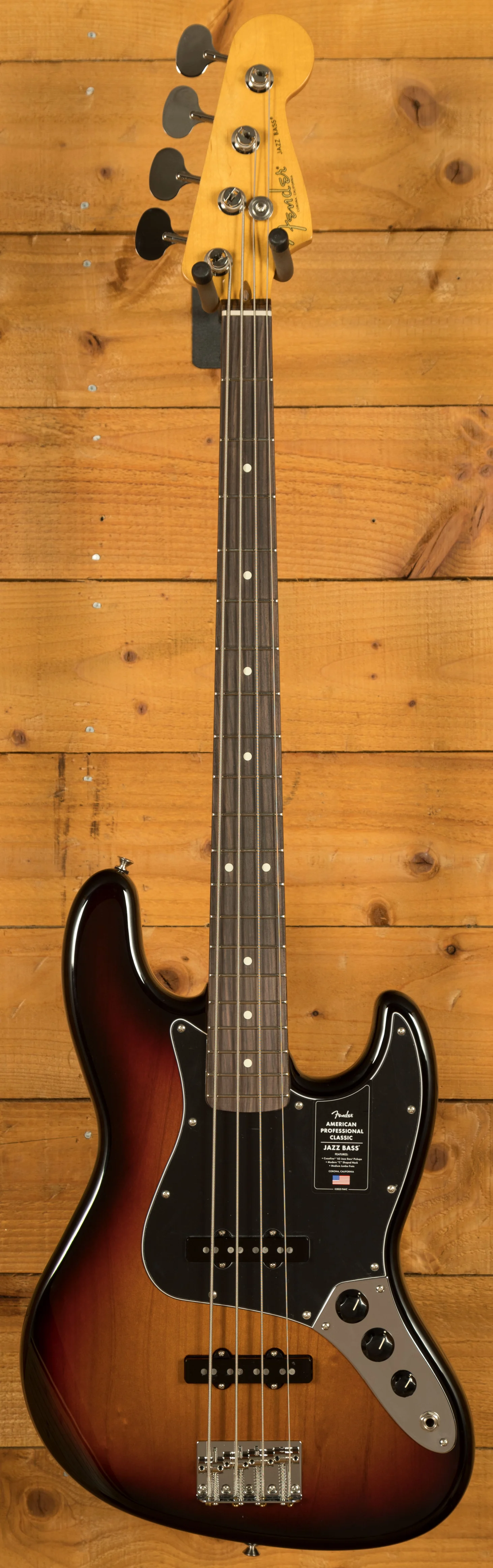 Attention to detail continues throughout the hardware and electronics. The vintage-style 4-barrel steel saddle bridge maintains classic feel and tone transfer, while period-correct "lollipop" tuners provide reliable tuning stability and a familiar Fender aesthetic. The Greasebucket Tone System offers precise tonal control, allowing players to roll off highs without losing low-end clarity or definition. Altogether, the American Professional Classic Jazz Bass delivers classic Fender sound, refined playability, and dependable performance for professional musicians and serious enthusiasts alike.