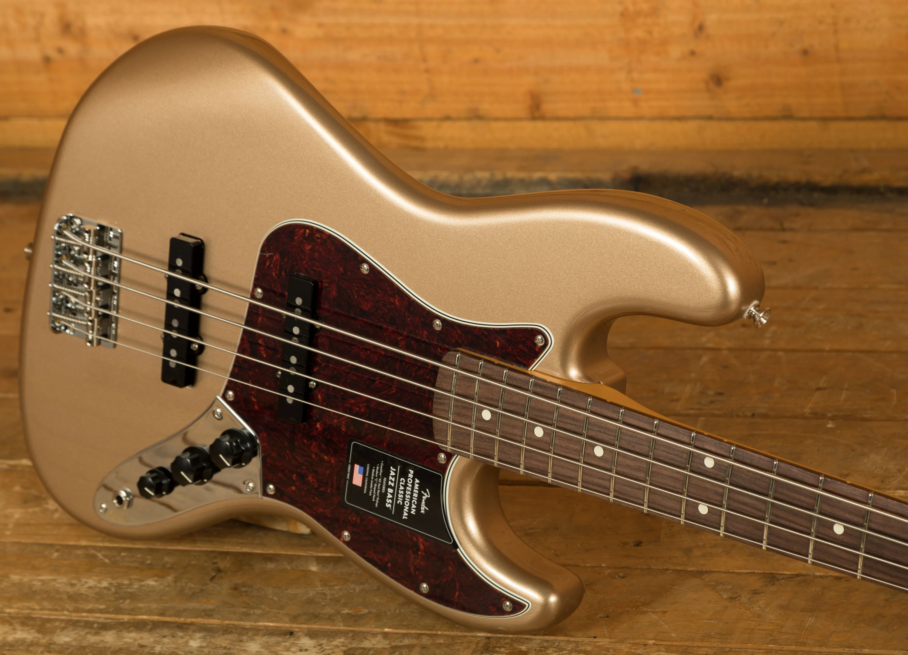Skip to content Fender American Professional Classic Jazz Bass - Rosewood - Faded Firemist Gold