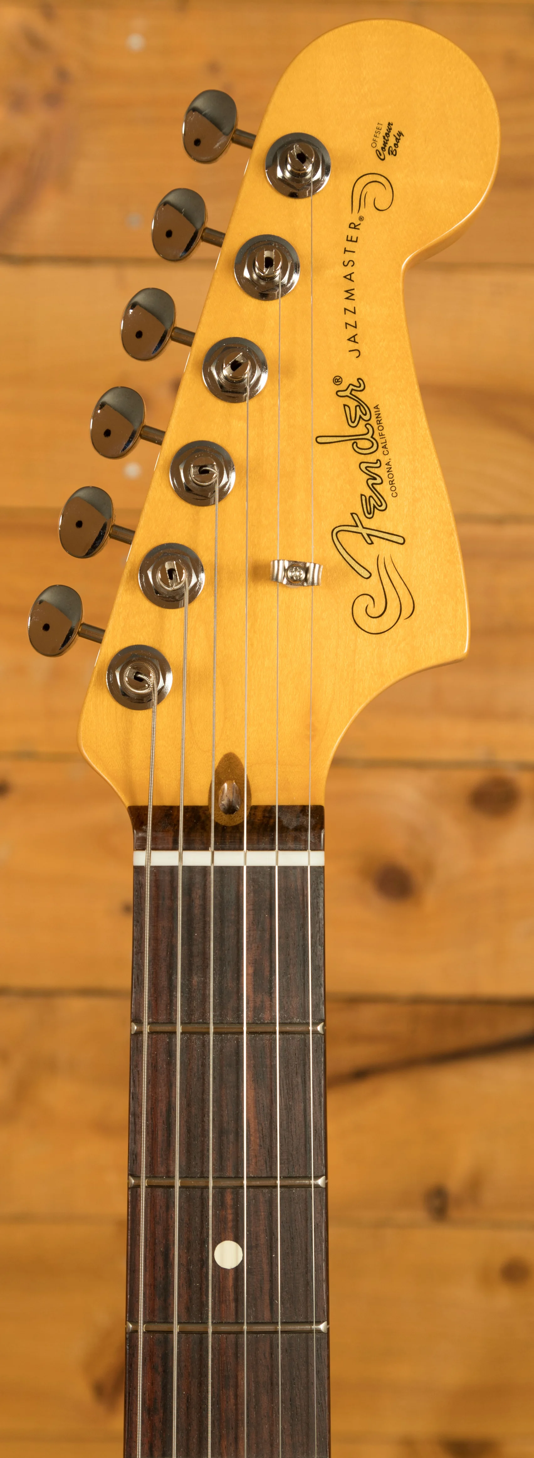 The Modern "C"-shaped neck with a 9.5" radius fingerboard and medium jumbo frets provides smooth, comfortable playability and precise control across all positions. Complementing the neck's feel, vintage-style hardware and Staggered ClassicGear tuners deliver stable tuning, reliable performance, and the familiar Jazzmaster aesthetic. The floating tremolo system enables expressive vibrato effects with smooth, responsive action. The Fender American Professional Classic Jazzmaster is a reliable, high-performance instrument that blends vintage design with modern playability and tone consistency.