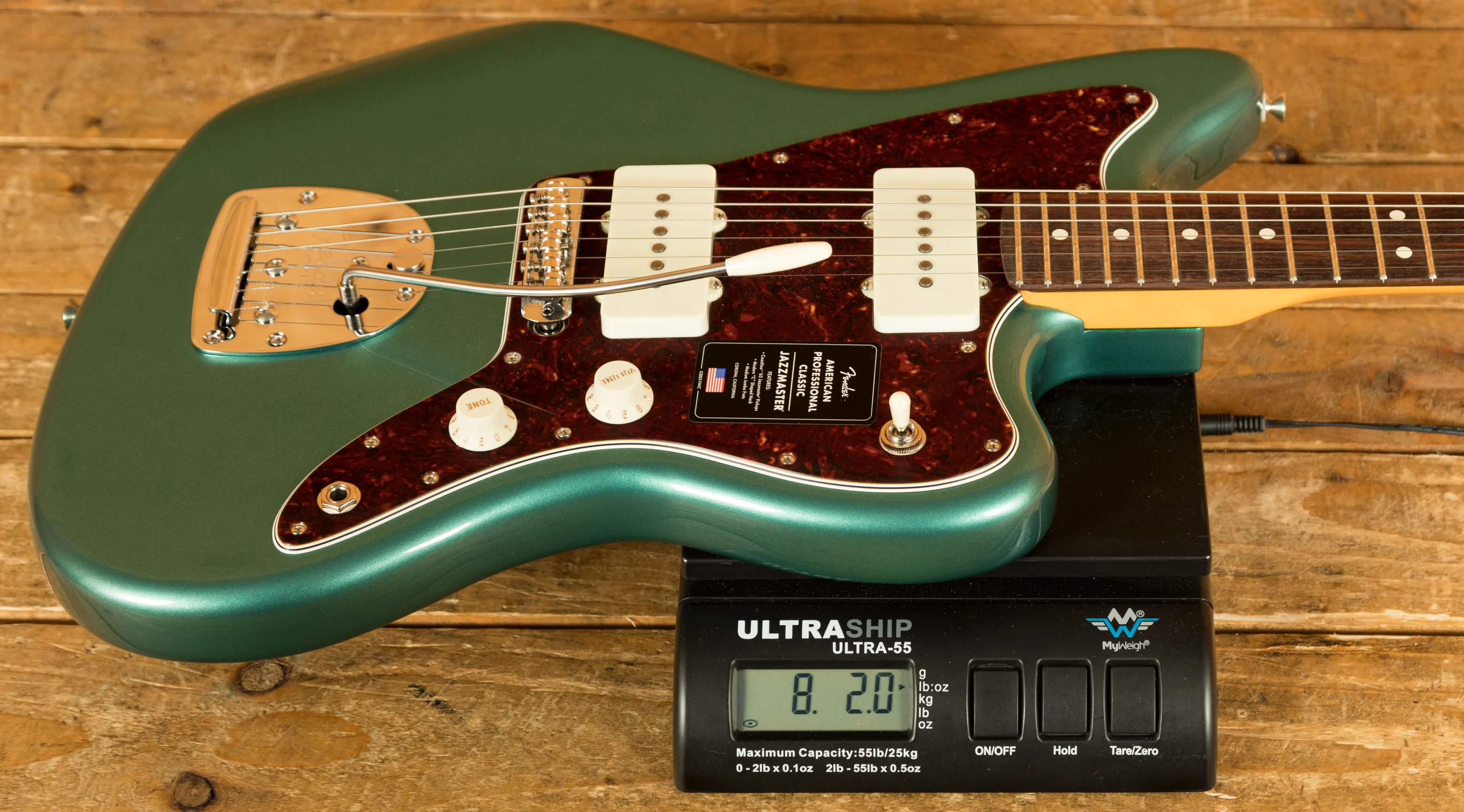 Skip to content Fender American Professional Classic Jazzmaster - Rosewood - Faded Sherwood Green Metallic
