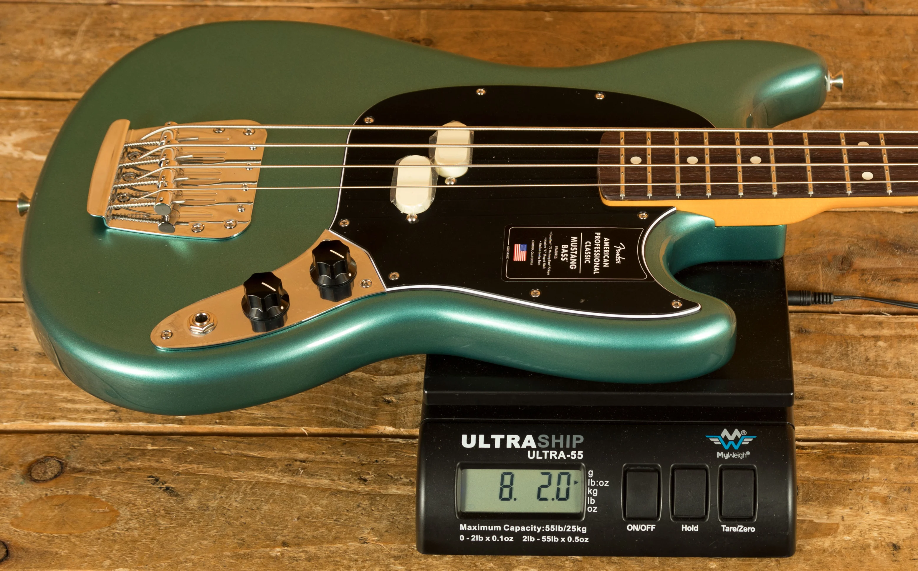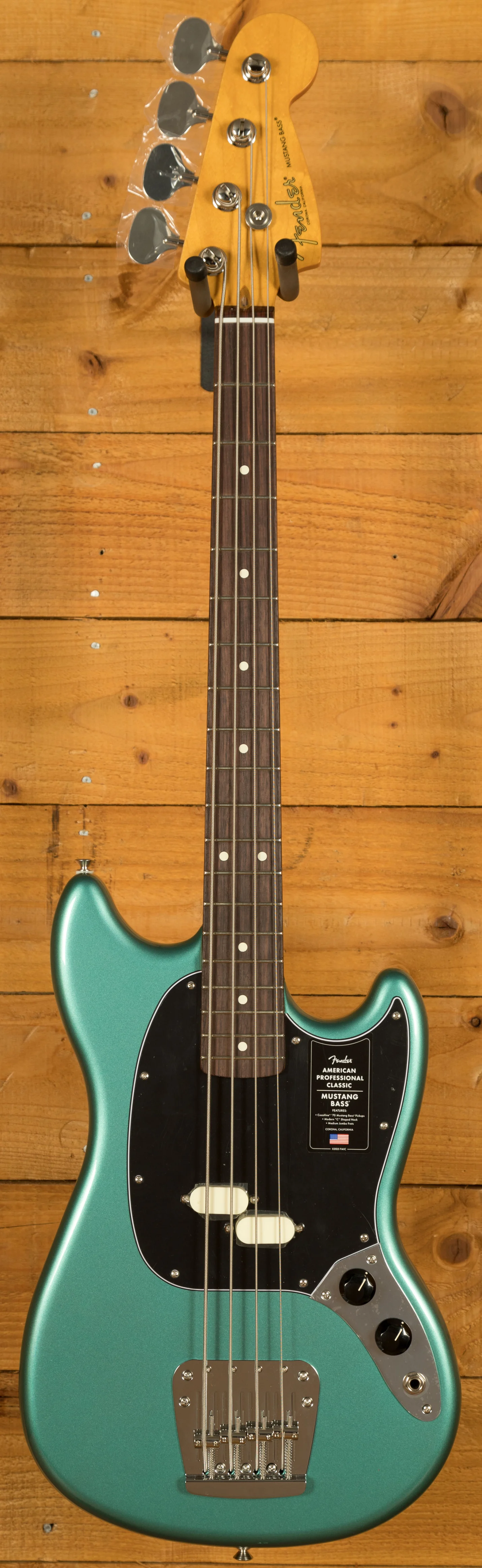 Paired with vintage-style hardware, including a 4-barrel steel saddle bridge and classic "lollipop" tuners, the instrument provides reliable tuning stability and an authentic Fender aesthetic. Together, these features make the American Professional Classic Mustang Bass a dependable, great-sounding choice for musicians who want traditional Fender tone with modern precision and playability.