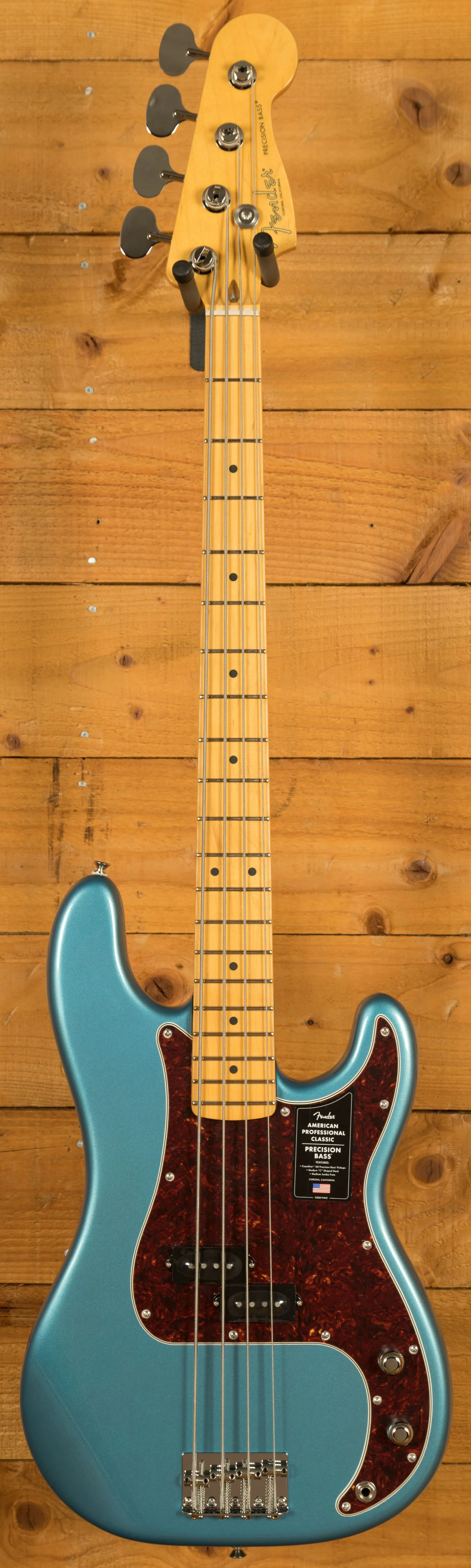 At the heart of the instrument is the Coastline '60 split-coil Precision Bass pickup, delivering focused, punchy tones with the warmth and articulation expected from a premium Fender design. The slightly overwound configuration provides additional output and tonal presence. The Greasebucket Tone System further enhances flexibility by allowing players to roll off high frequencies without losing low-end clarity, ensuring that the bass retains its full-bodied character at any setting. Together, these features make the American Professional Classic Precision Bass a reliable, high-performance instrument built for today's working musician.