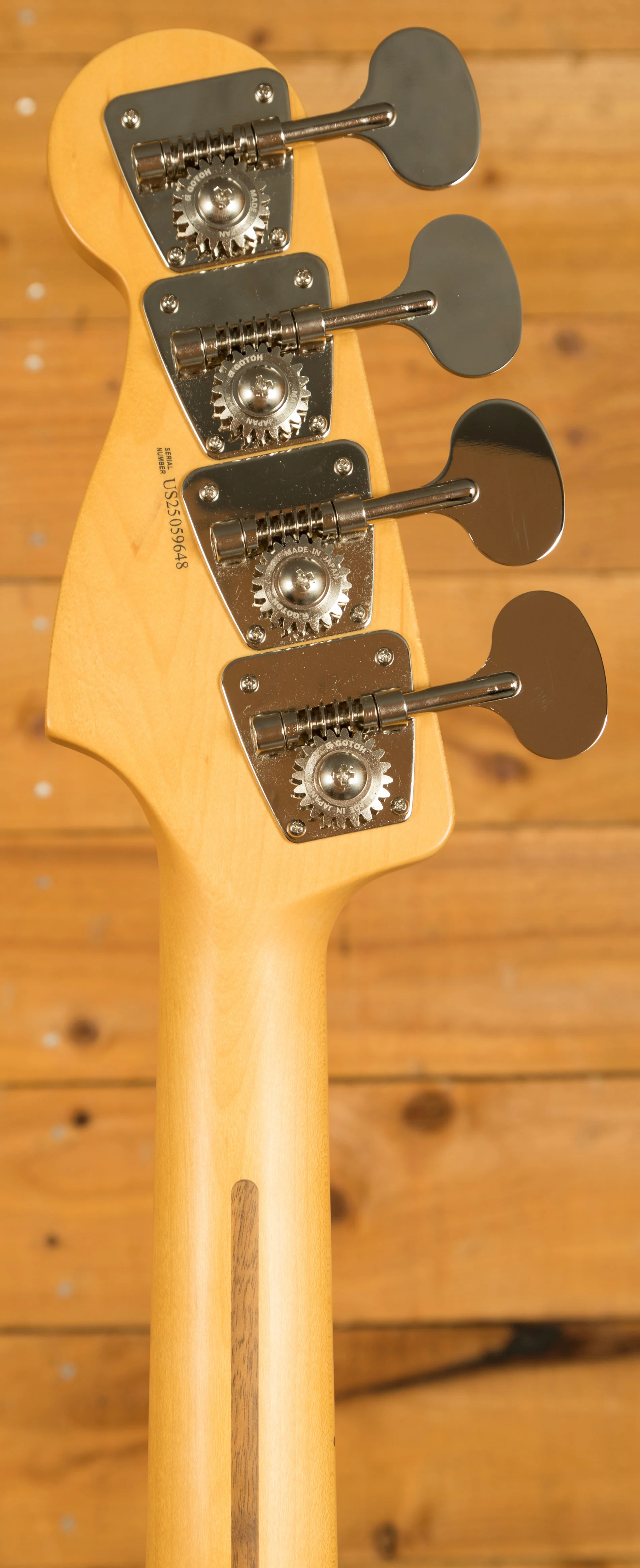 The neck features Fender's Modern "C" profile, offering a comfortable and natural grip that suits a wide range of playing styles. A 9.5" radius fingerboard with medium jumbo frets allows for smooth fretting, accurate intonation, and effortless string bending. These features combine to create a fast, responsive playing experience that appeals to both traditionalists and contemporary players. The vintage-style 4-barrel steel saddle bridge maintains familiar Fender feel, while the period-correct "lollipop" tuners provide both dependable tuning stability and a clean, classic appearance.