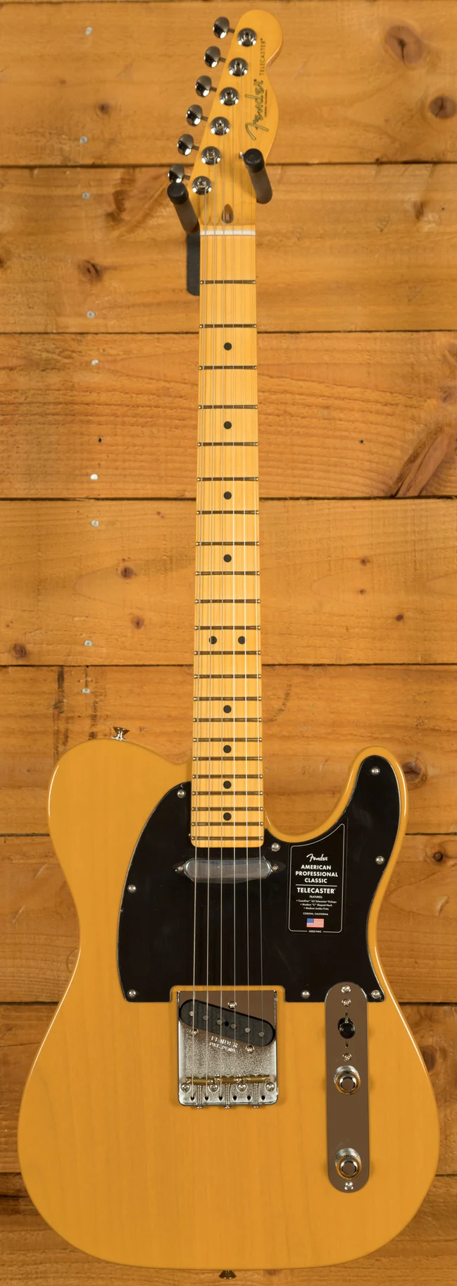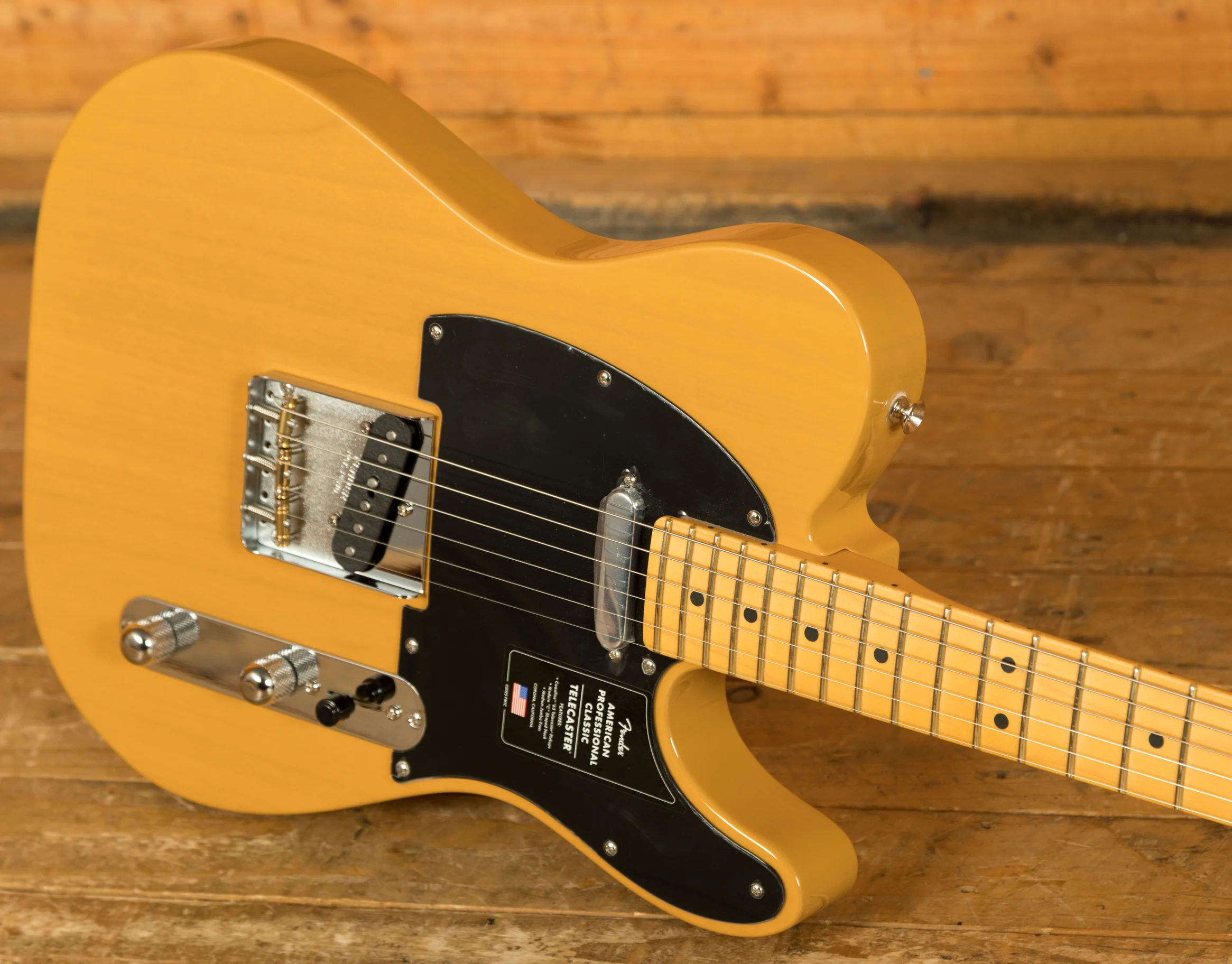 The Fender American Professional Classic Telecaster combines traditional Fender design with modern enhancements for a versatile and reliable instrument. Its alder body is lightweight yet resonant, producing a balanced tone with clear highs, strong mids, and full lows. This makes it suitable for a wide range of musical styles, from clean, articulate rhythm playing to expressive lead work.