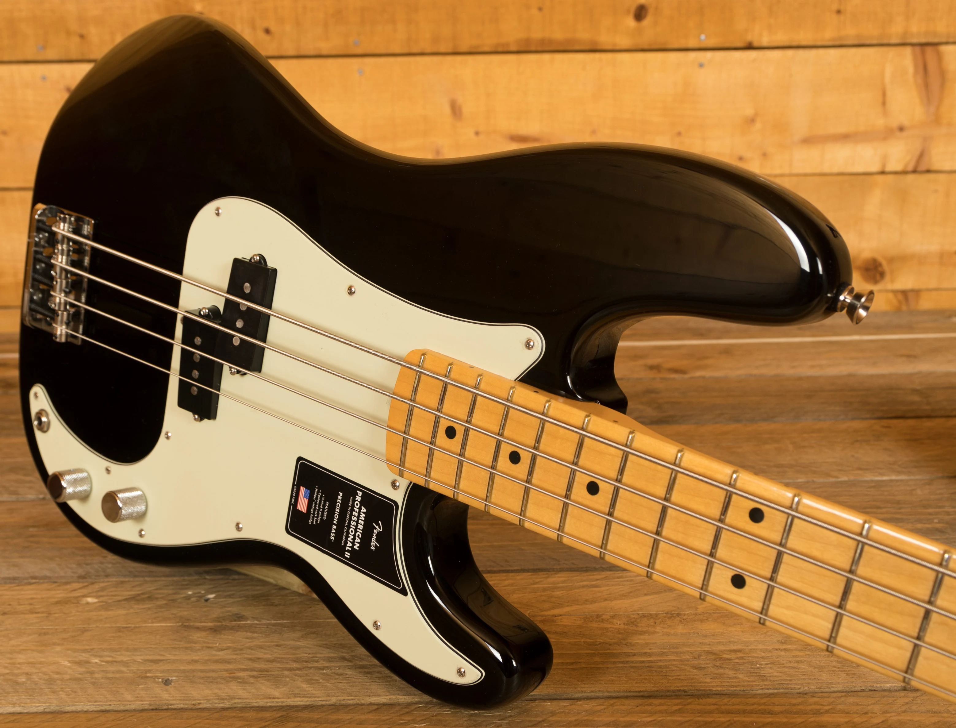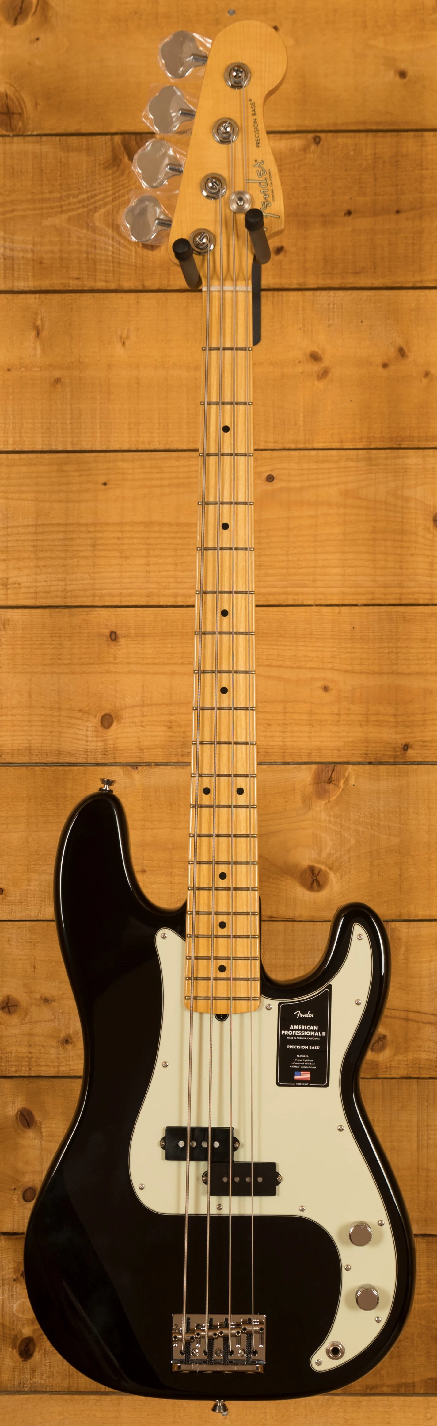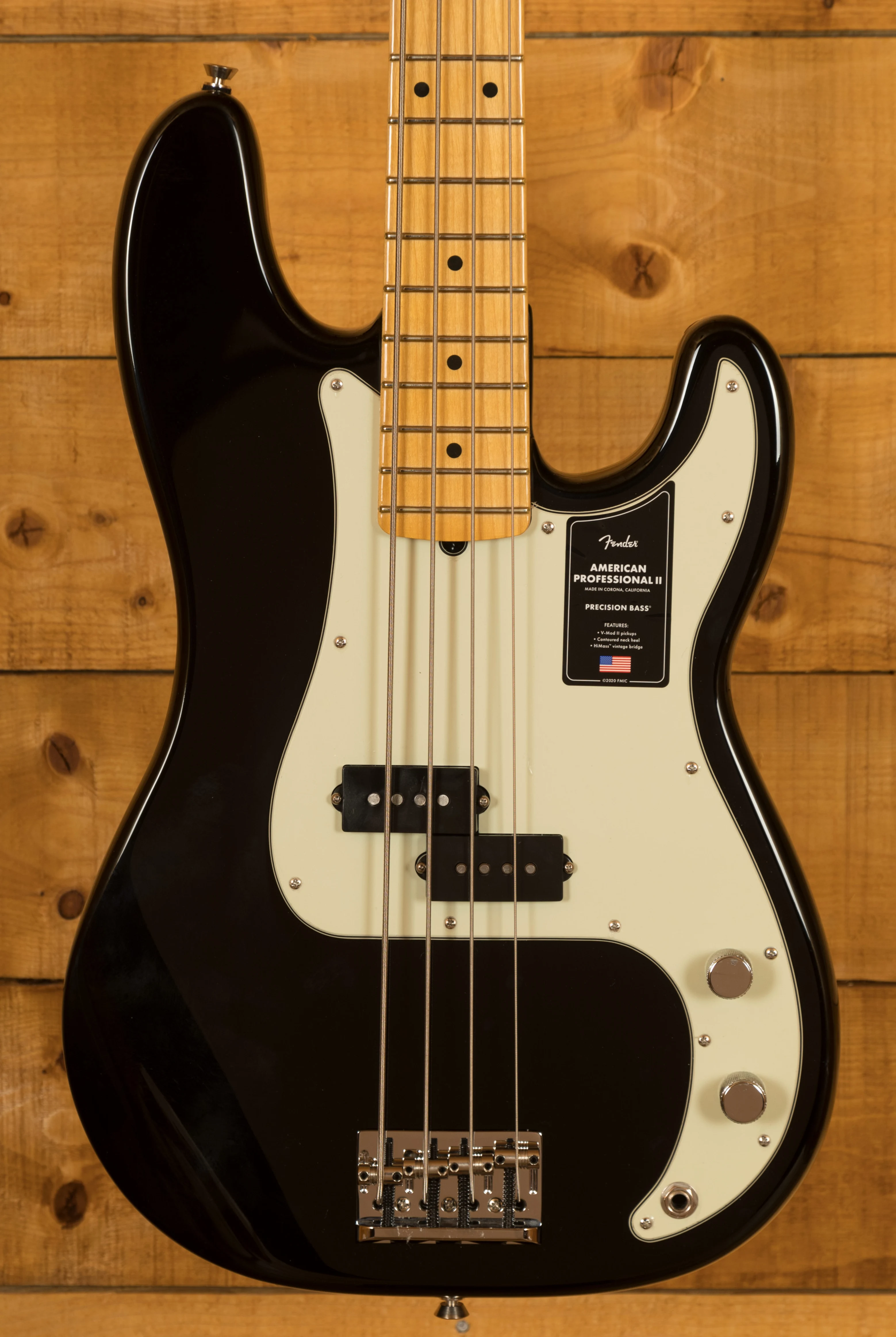 The Alder body is typically comfortable, as all Precision Bass's are, finished in the brilliant Black option, it looks real slick. The Maple neck and fingerboard feature a '63 profile, designed for speed and comfort; This bass is super easy to navigate, allowing for great access to the upper register. 20 frets, a 9.5" radius and 34" scale length make this Precision Bass feel familiar and supremely comfortable. The Professional II range brings a new contoured neck heel , soft rolled fingerboard edges and a super natural finish for improved feel and comfort