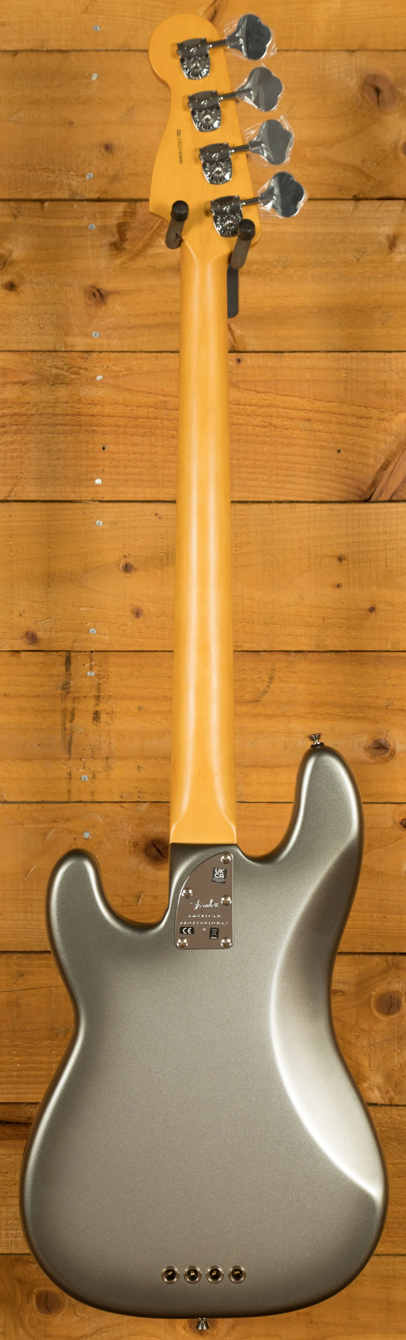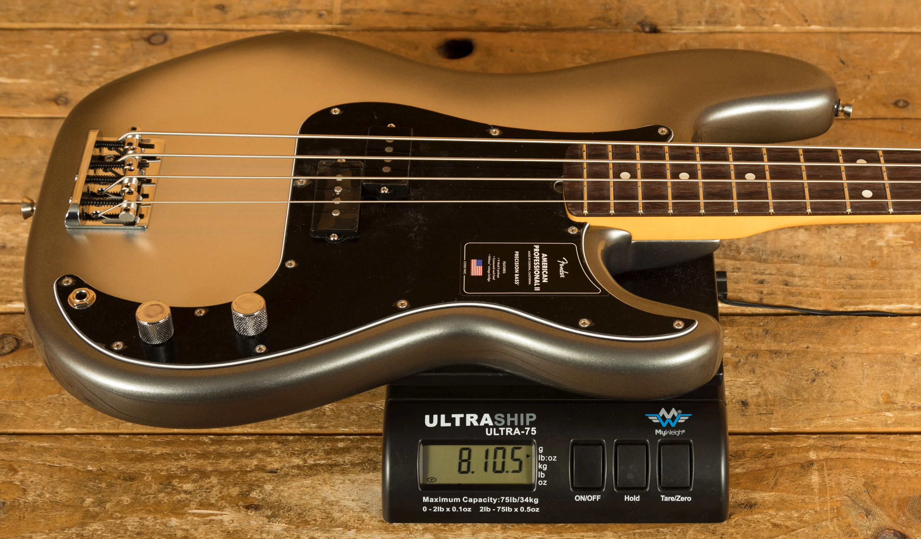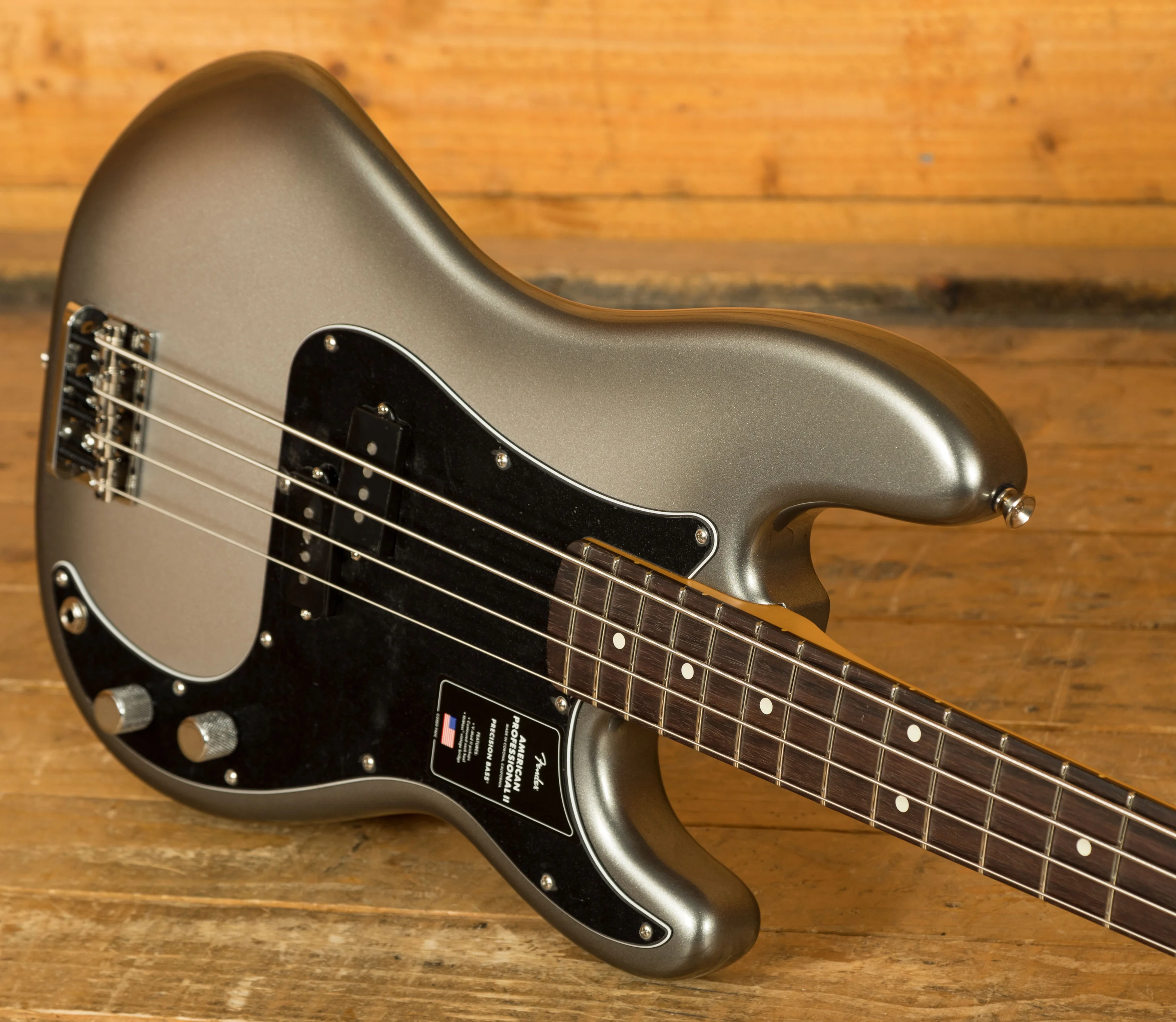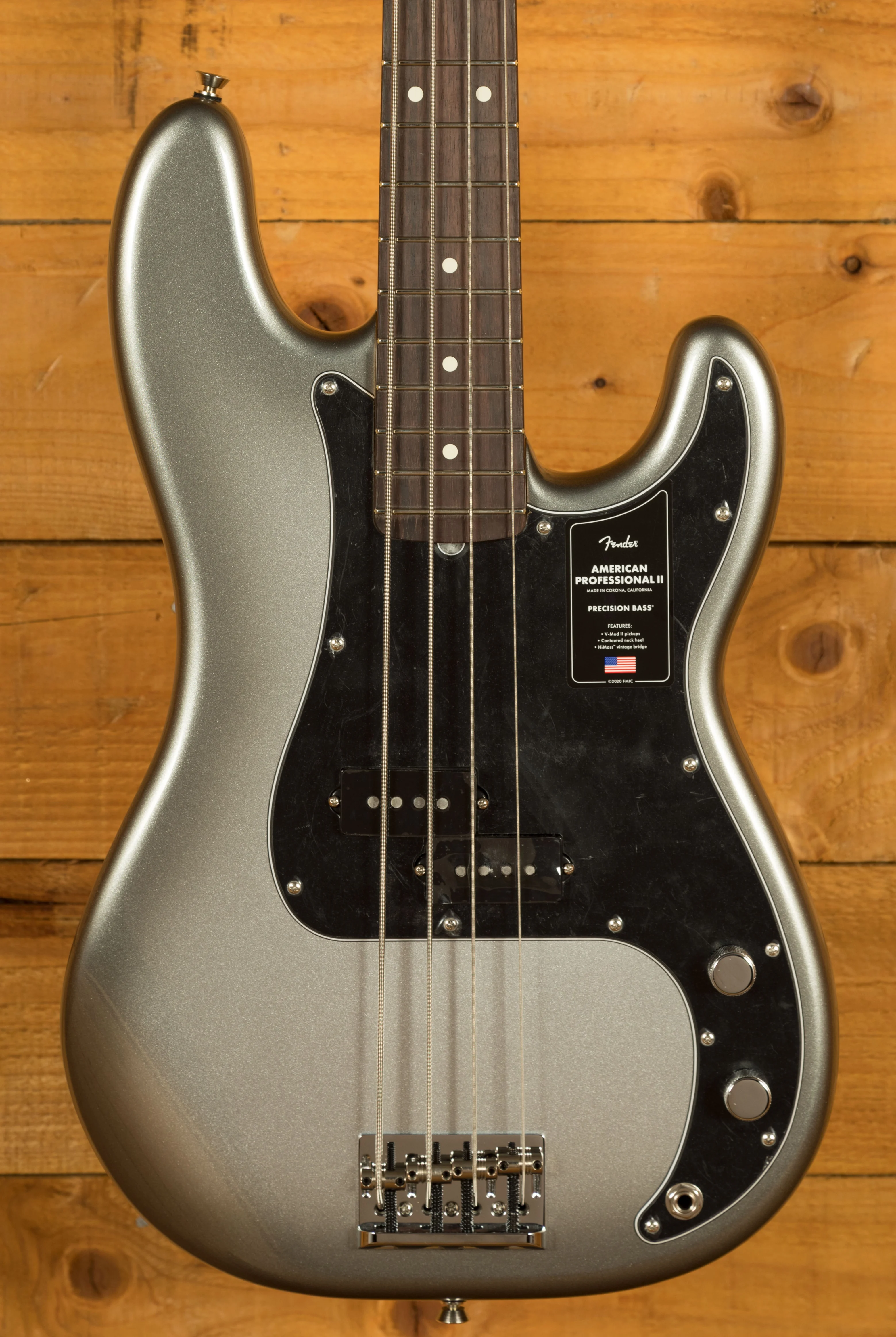 The Alder body is typically comfortable, as all Precision Bass's are, finished in the brilliant Mercury option, it looks real slick. The Maple neck with a Rosewood fingerboard feature a '63 profile, designed for speed and comfort; This bass is super easy to navigate, allowing for great access to the upper register. 20 frets, a 9.5" radius and 34" scale length make this Precision Bass feel familiar and supremely comfortable. The Professional II range brings a new contoured neck heel , soft rolled fingerboard edges and a super natural finish for improved feel and comfort