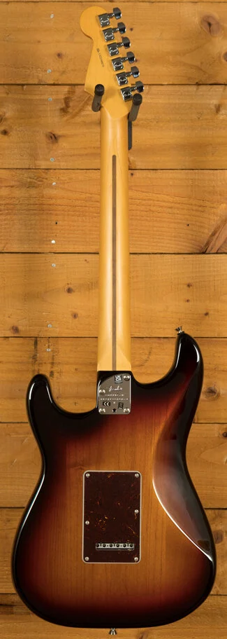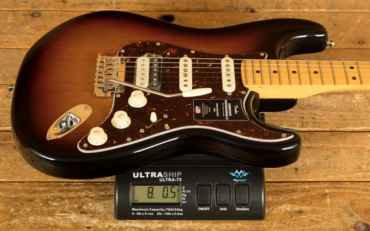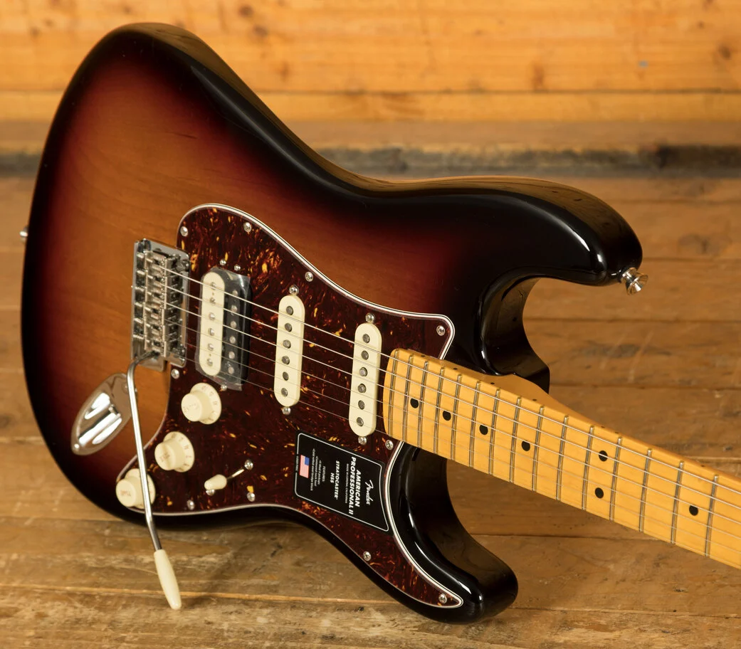 The Alder body is typically comfortable,as all Strat's are. Finished in the brilliant 3 Colour Sunburst option, it looks real slick. The Maple neck and fingerboard feature a Deep C profile, designed for speed and comfort; it's equally at home playing big chords or intricate lead work. 22 frets, a 9.5" radius and 25.5" scale length make this Stratocaster feel familiar and supremely comfortable. The Professional II range brings a new contoured neck heel , soft rolled fingerboard edges and a super natural finish for improved feel and comfort