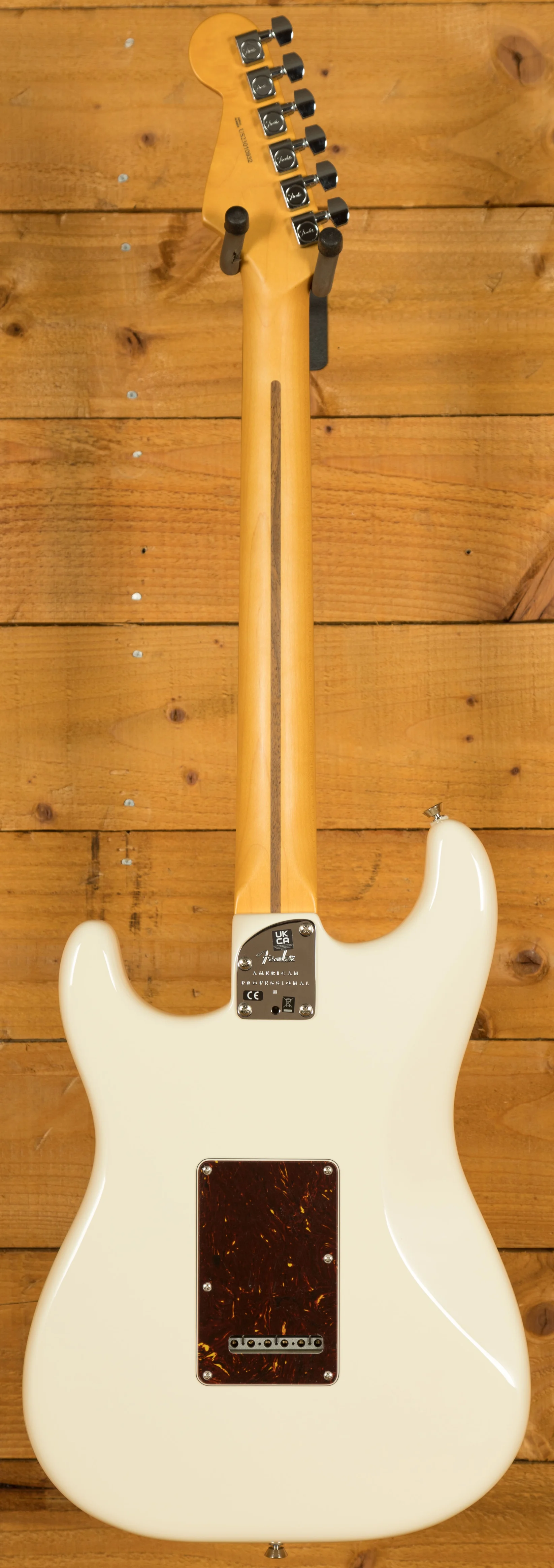 The Alder body is typically comfortable, as all Strats are. Finished in the brilliant Olympic White option, it looks real slick. The Maple neck with a Rosewood fingerboard feature a Deep C profile, designed for speed and comfort; it's equally at home playing big chords or intricate lead work. 22 narrow tall frets, a 9.5" radius and 25.5" scale length make this Stratocaster feel familiar and supremely comfortable. The Professional II range brings a new contoured neck heel, soft rolled fingerboard edges and a super natural finish for improved feel and comfort