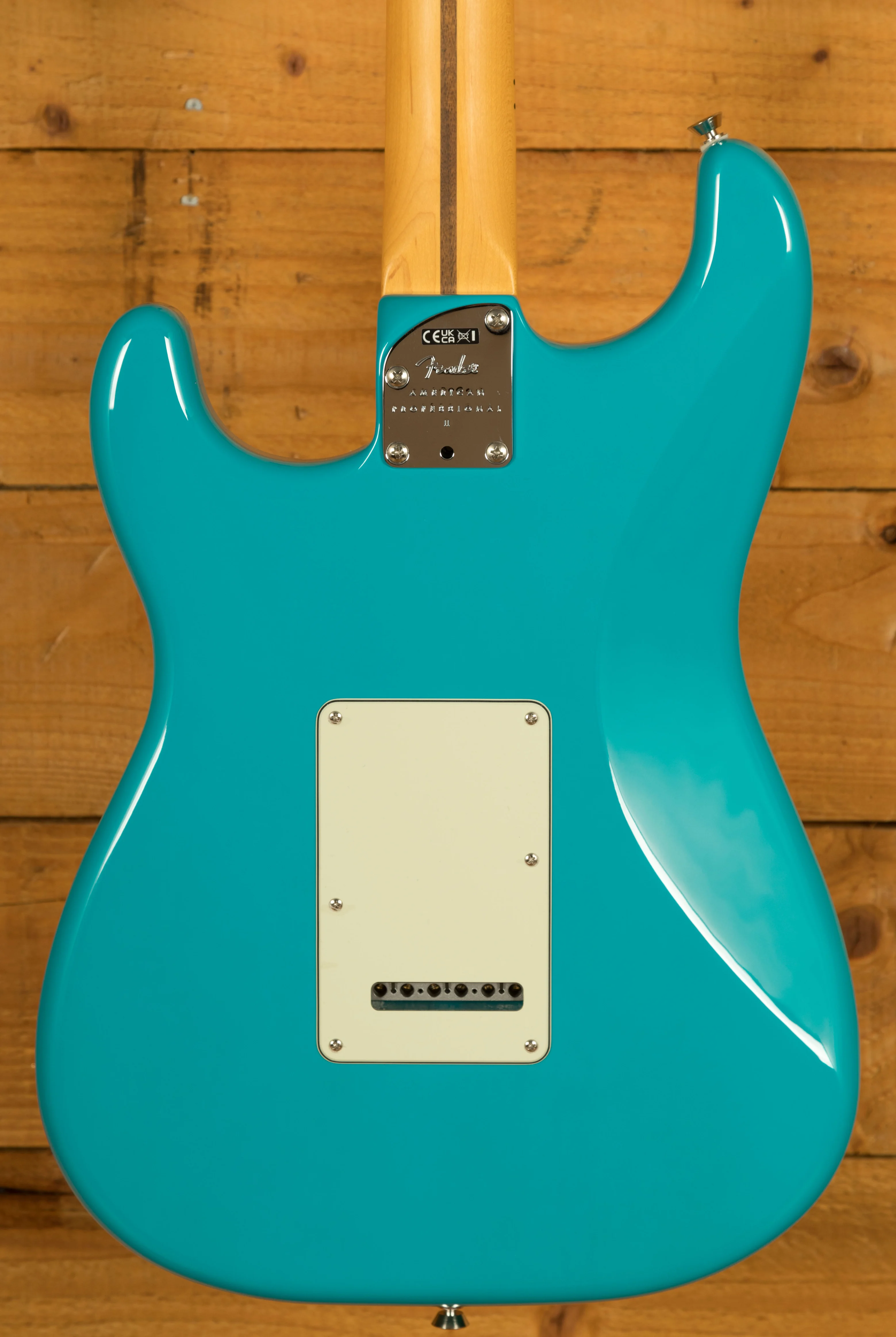 The Alder body is typically comfortable,as all Strat's are, Finished in the brilliant Miami Blue option, it looks real slick. The Maple neck and fingerboard feature a Deep C profile, designed for speed and comfort; it's equally at home playing big chords or intricate lead work. 22 narrow tall frets, a 9.5" radius and 25.5" scale length make this Stratocaster feel familiar and supremely comfortable. The Professional II range brings a new contoured neck heel , soft rolled fingerboard edges and a super natural finish for improved feel and comfort