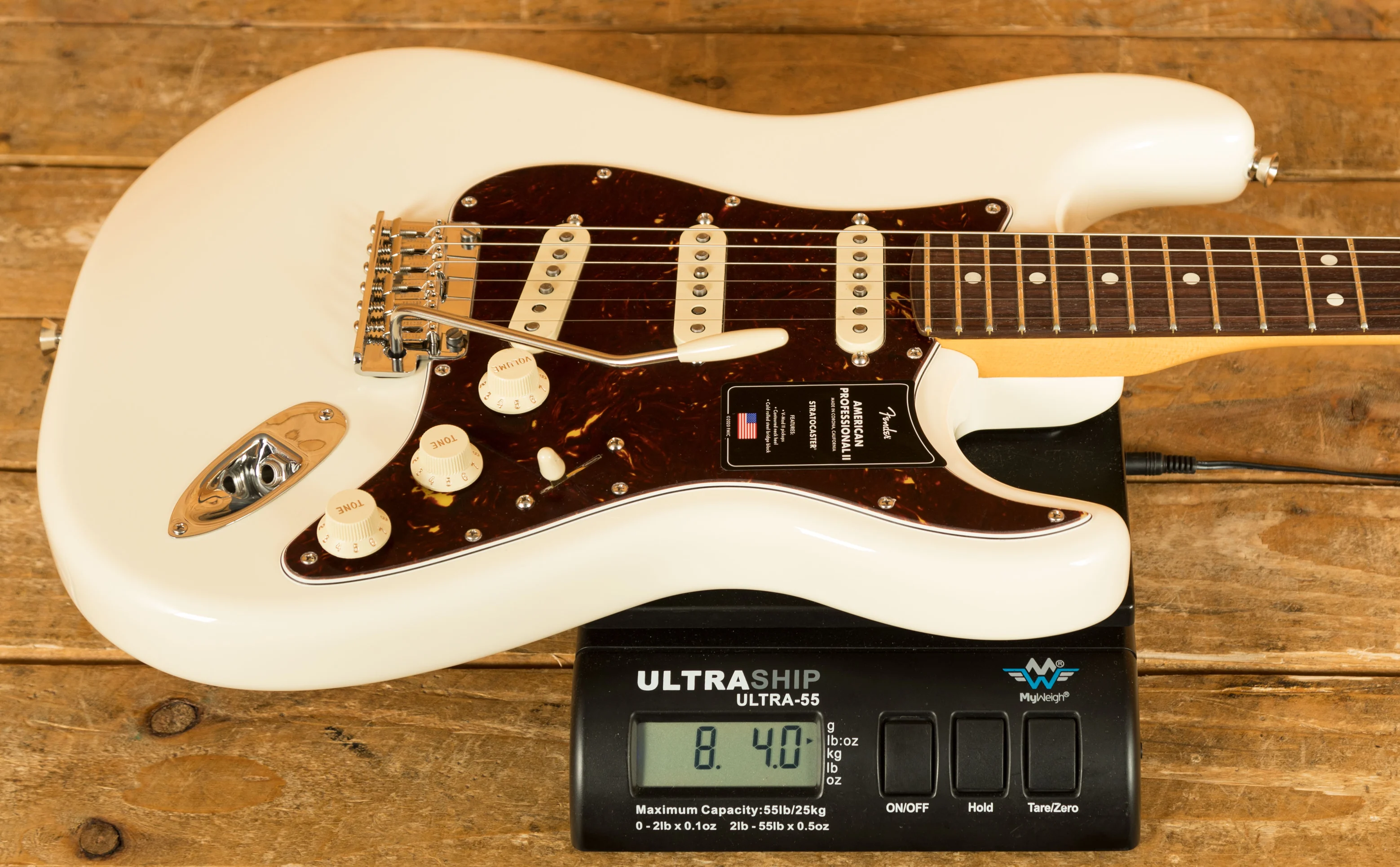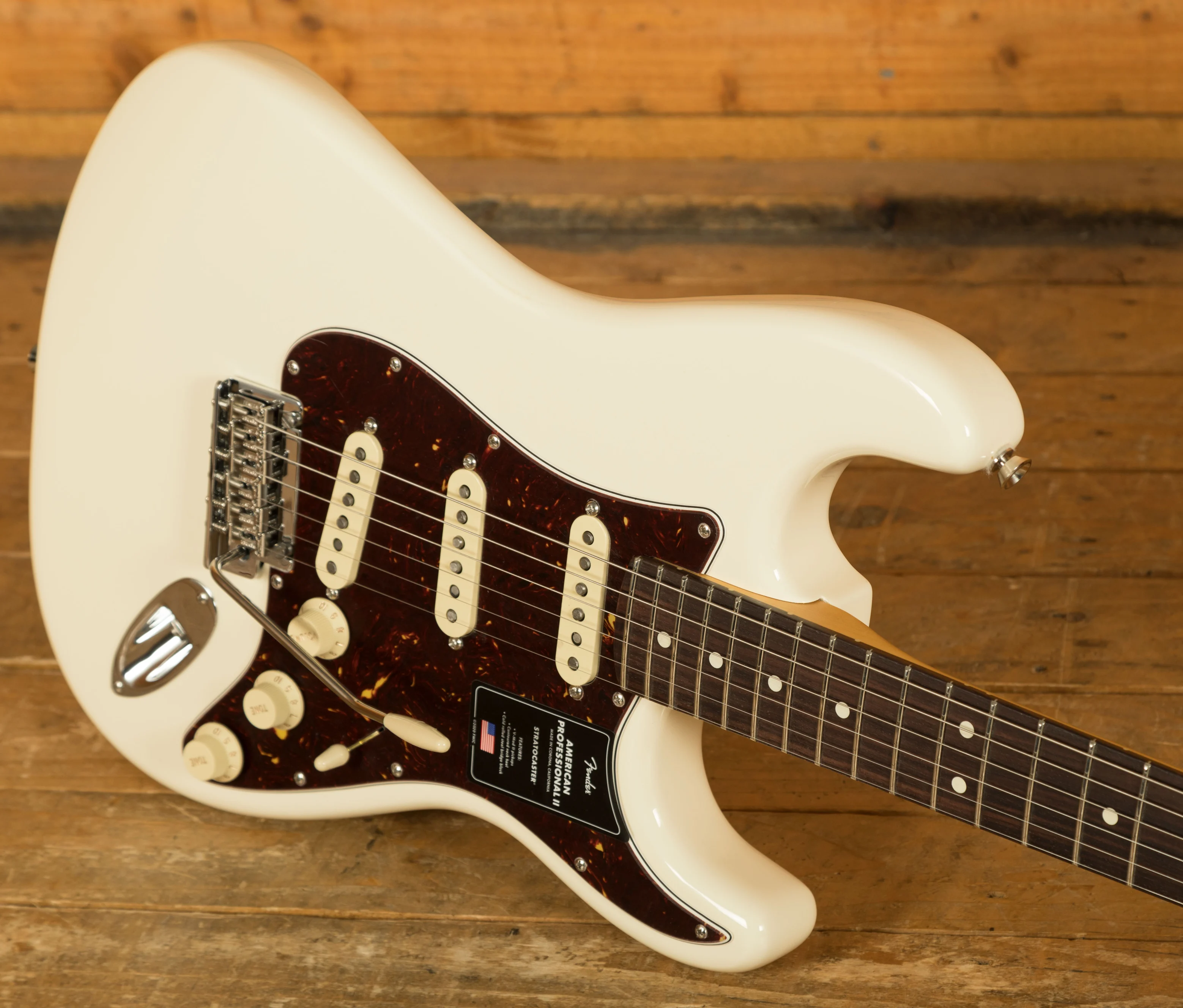 The Alder body is typically comfortable,as all Strat's are, finished in the brilliant Olympic White option, it looks real slick. The Maple neck with a Rosewood fingerboard feature a Deep C profile, designed for speed and comfort; it's equally at home playing big chords or intricate lead work. 22 frets, a 9.5" radius and 25.5" scale length make this Stratocaster feel familiar and supremely comfortable. The Professional II range brings a new contoured neck heel , soft rolled fingerboard edges and a super natural finish for improved feel and comfort