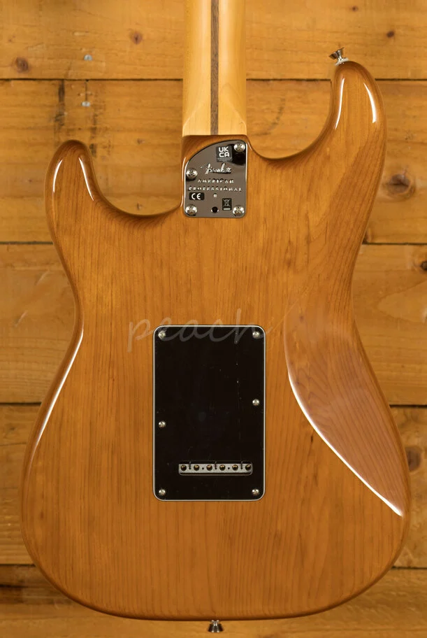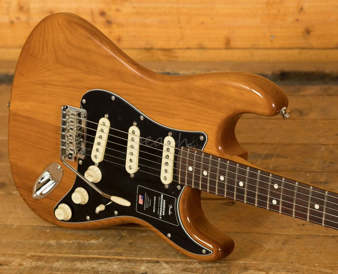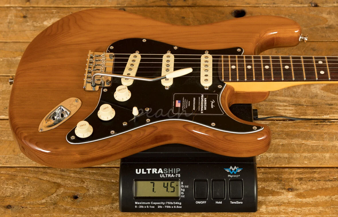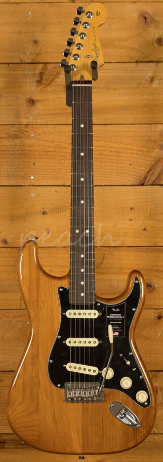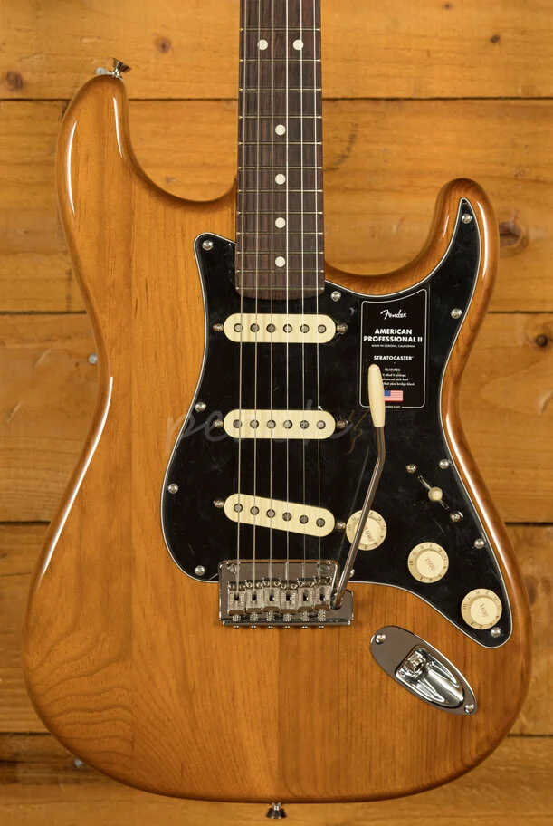 The Roasted Pine body is typically comfortable,as all Strat's are, it looks real slick. The Maple neck with a Rosewood fingerboard feature a Deep C profile, designed for speed and comfort; it's equally at home playing big chords or intricate lead work. 22 frets, a 9.5" radius and 25.5" scale length make this Stratocaster feel familiar and supremely comfortable. The Professional II range brings a new contoured neck heel , soft rolled fingerboard edges and a super natural finish for improved feel and comfort