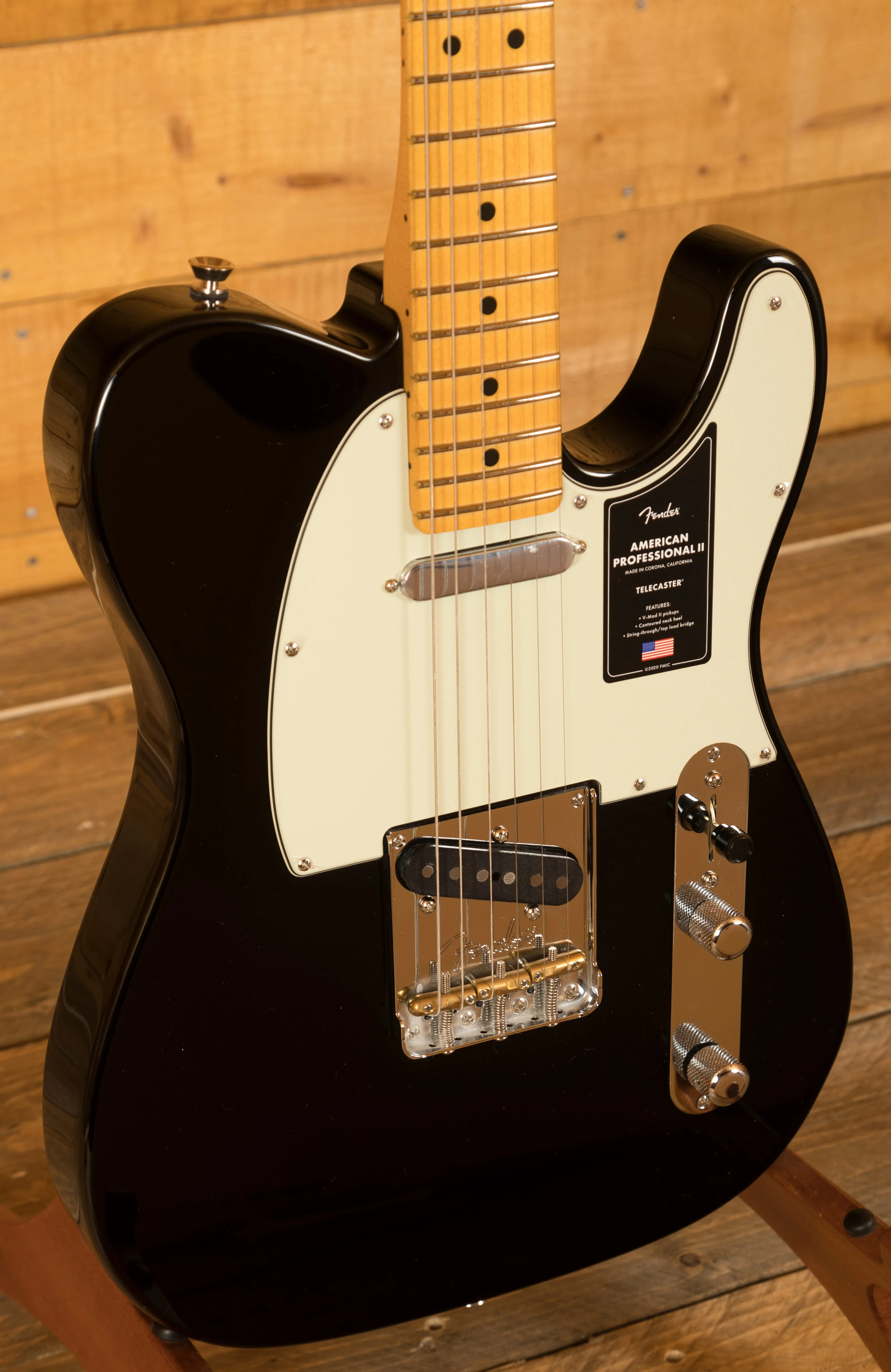 The Alder body is typically comfortable, as all Tele's are, finished in the brilliant Black colour option, it looks real slick. The Maple neck and fingerboard feature a Deep C profile, designed for speed and comfort; it's equally at home playing big chords or intricate lead work. 22 frets, a 9.5" radius and 25.5" scale length make this Tele feel familiar and supremely comfortable. The Professional II range brings a new contoured neck heel , soft rolled fingerboard edges and a super natural finish for improved feel and comfort