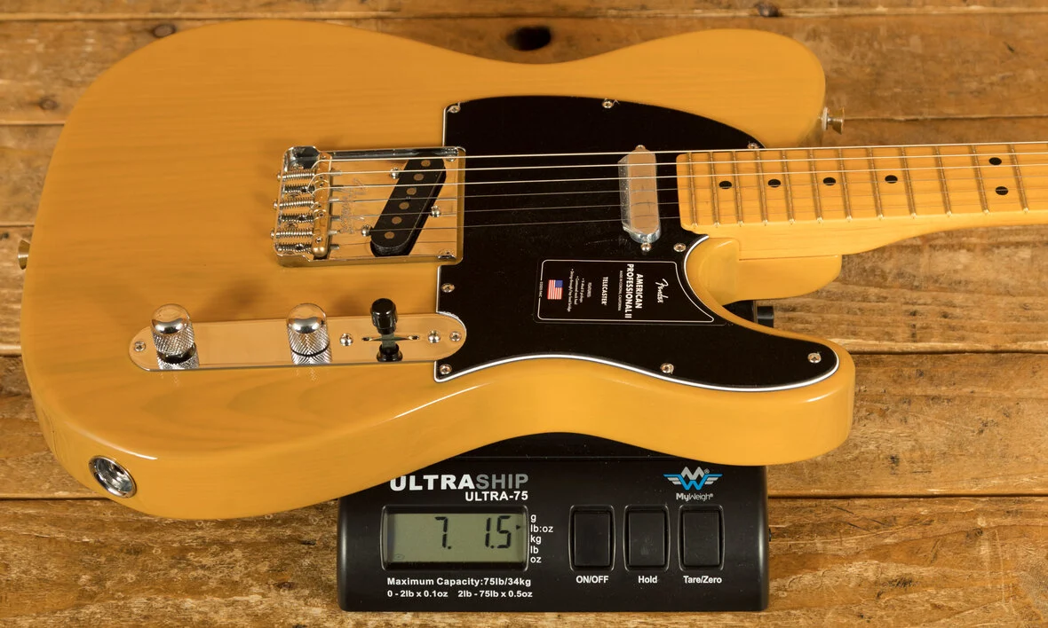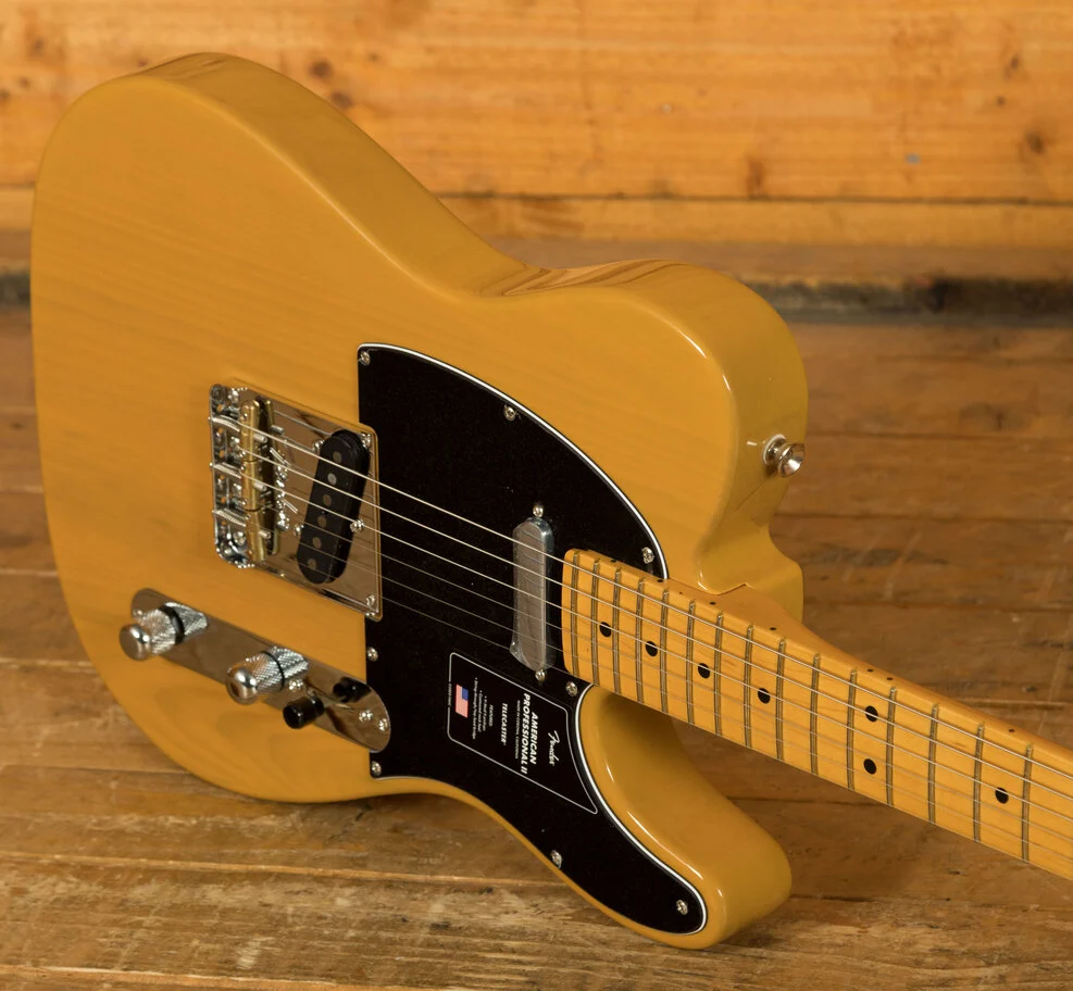 The Roasted Pine body is typically comfortable, as all Tele's are, finished in the brilliant Butterscotch Blonde option, it looks real slick. The Maple neck and fingerboard feature a Deep C profile, designed for speed and comfort; it's equally at home playing big chords or intricate lead work. 22 frets, a 9.5" radius and 25.5" scale length make this Tele feel familiar and supremely comfortable. The Professional II range brings a new contoured neck heel , soft rolled fingerboard edges and a super natural finish for improved feel and comfort