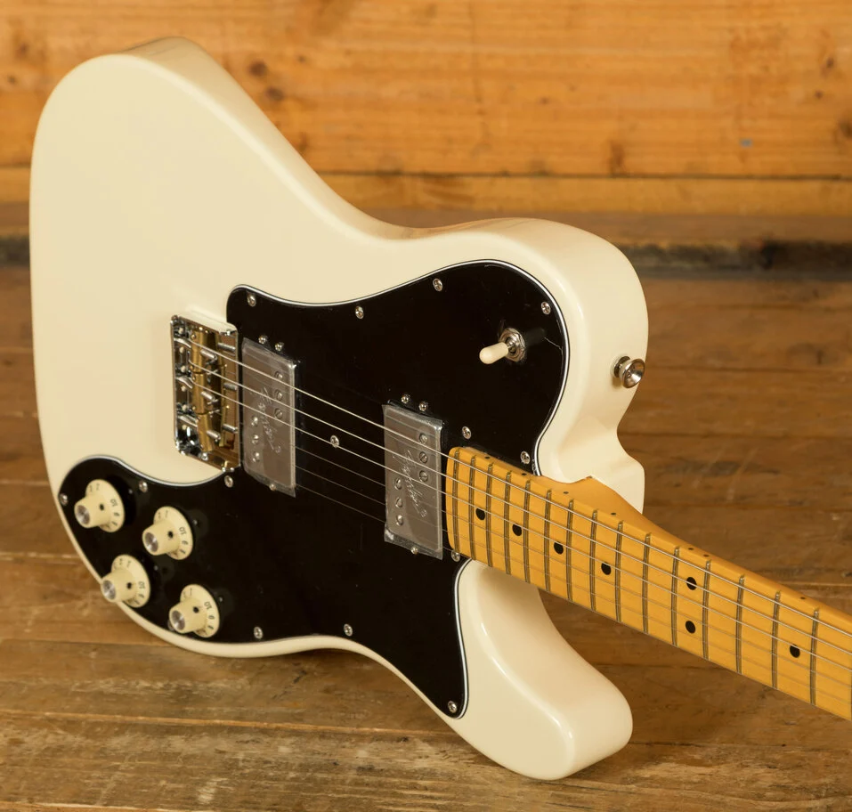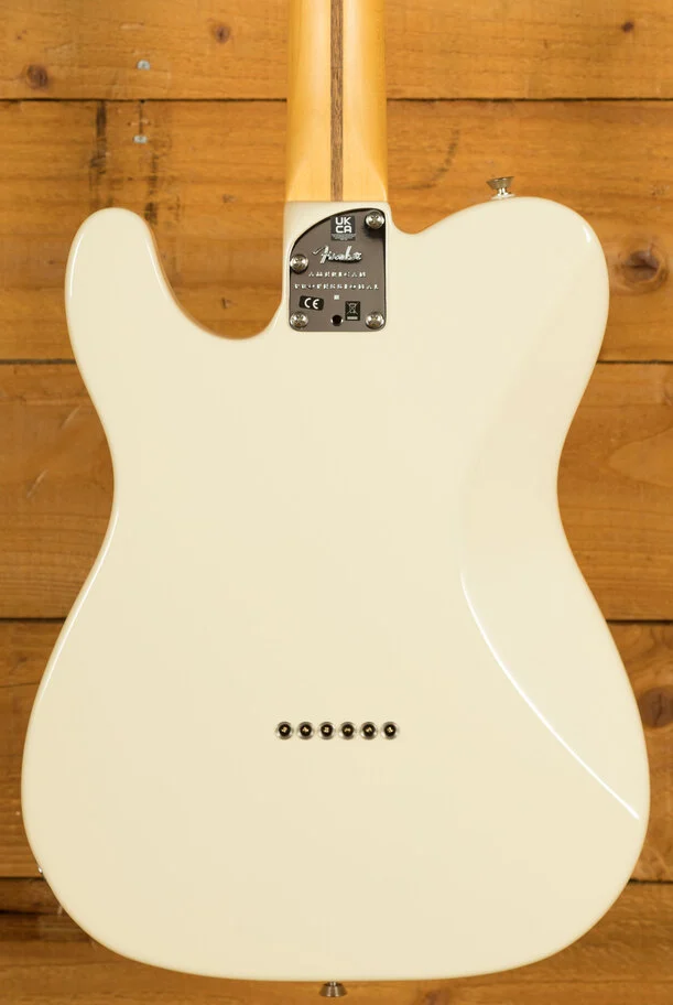 The Alder body is typically comfortable,as all Tele's are, finished in the brilliant Olympic White option, it looks real slick. The Maple neck and fingerboard feature a Deep C profile, designed for speed and comfort; it's equally at home playing big chords or intricate lead work. 22 frets, a 9.5" radius and 25.5" scale length make this Tele feel familiar and supremely comfortable. The Professional II range brings a new contoured neck heel , soft rolled fingerboard edges and a super natural finish for improved feel and comfort