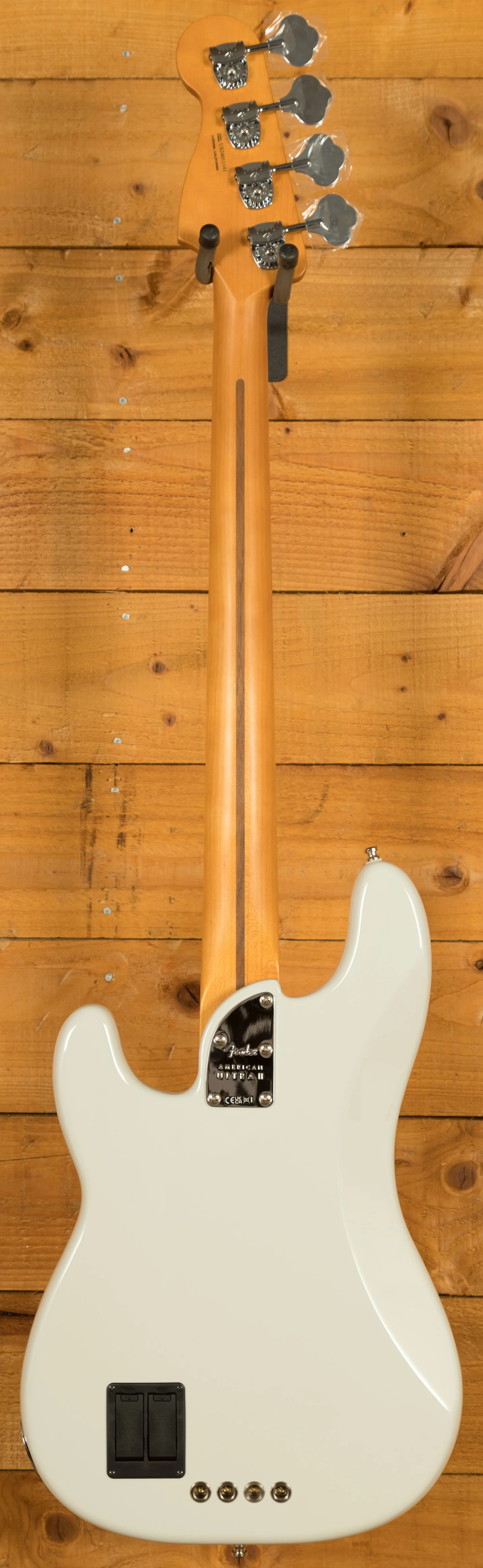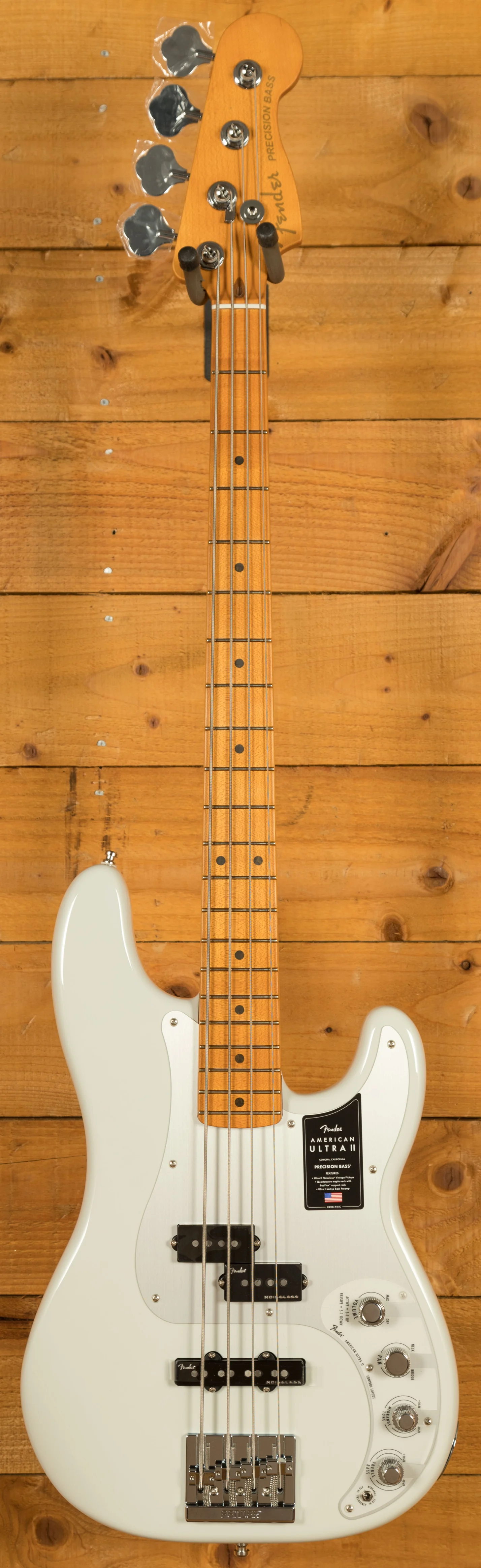 In terms of electronics, the Ultra II Noiseless pickups deliver iconic Fender Bass tone without unwanted hum. These pickups are engineered with stacked coils and Alnico V rod magnets, capturing the essence of Fender's vintage sound while eliminating noise. The active preamp with S-1 switching allows players to toggle between active and passive modes, providing versatility in tone control. The 3-band active EQ allows detailed sound sculpting, while the HiMass bridge offers superior sustain and tuning stability - with optionbs of string-thru or top-load operation. With these features, the American Ultra II Precision Bass delivers a versatile, high-performance instrument built for serious musicians.