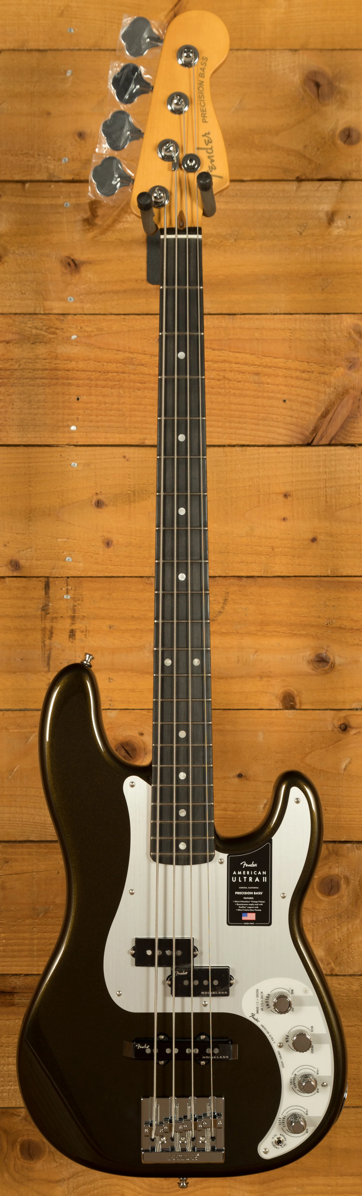 In terms of electronics, the Ultra II Noiseless pickups deliver iconic Fender Bass tone without unwanted hum. These pickups are engineered with stacked coils and Alnico V rod magnets, capturing the essence of Fender's vintage sound while eliminating noise. The active preamp with S-1 switching allows players to toggle between active and passive modes, providing versatility in tone control. The 3-band active EQ allows detailed sound sculpting, while the HiMass bridge offers superior sustain and tuning stability - with optionbs of string-thru or top-load operation. With these features, the American Ultra II Precision Bass delivers a versatile, high-performance instrument built for serious musicians.