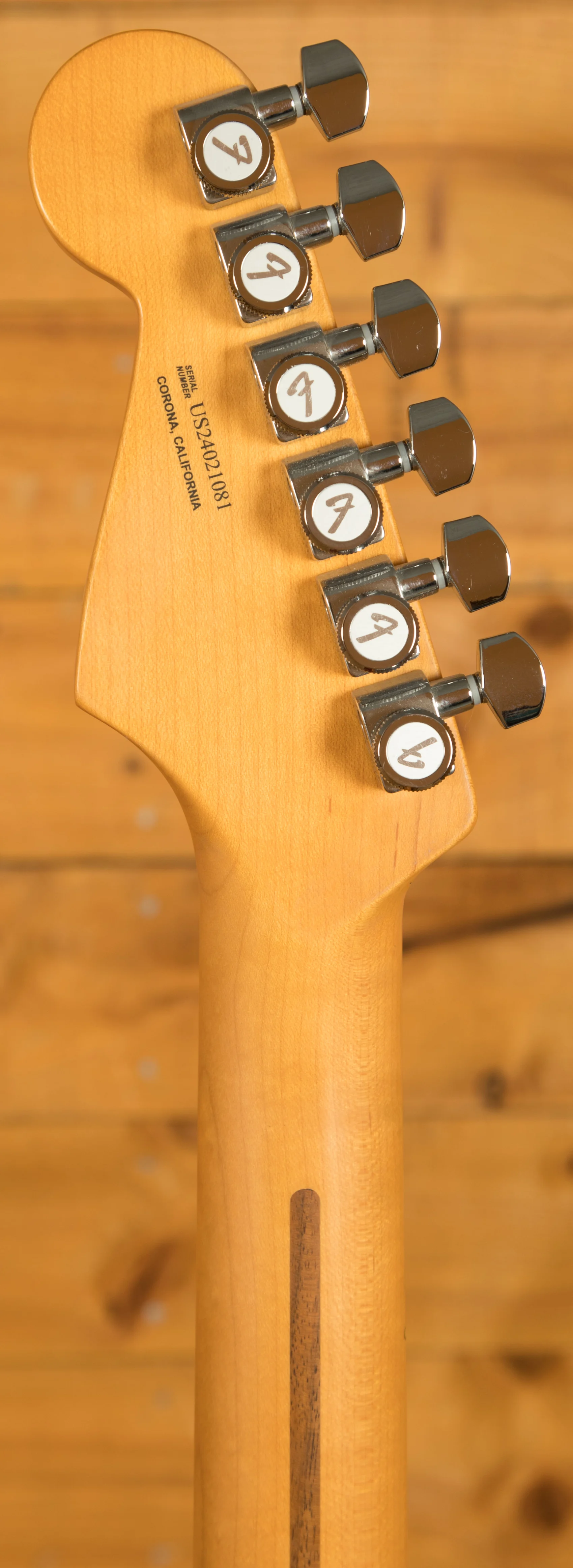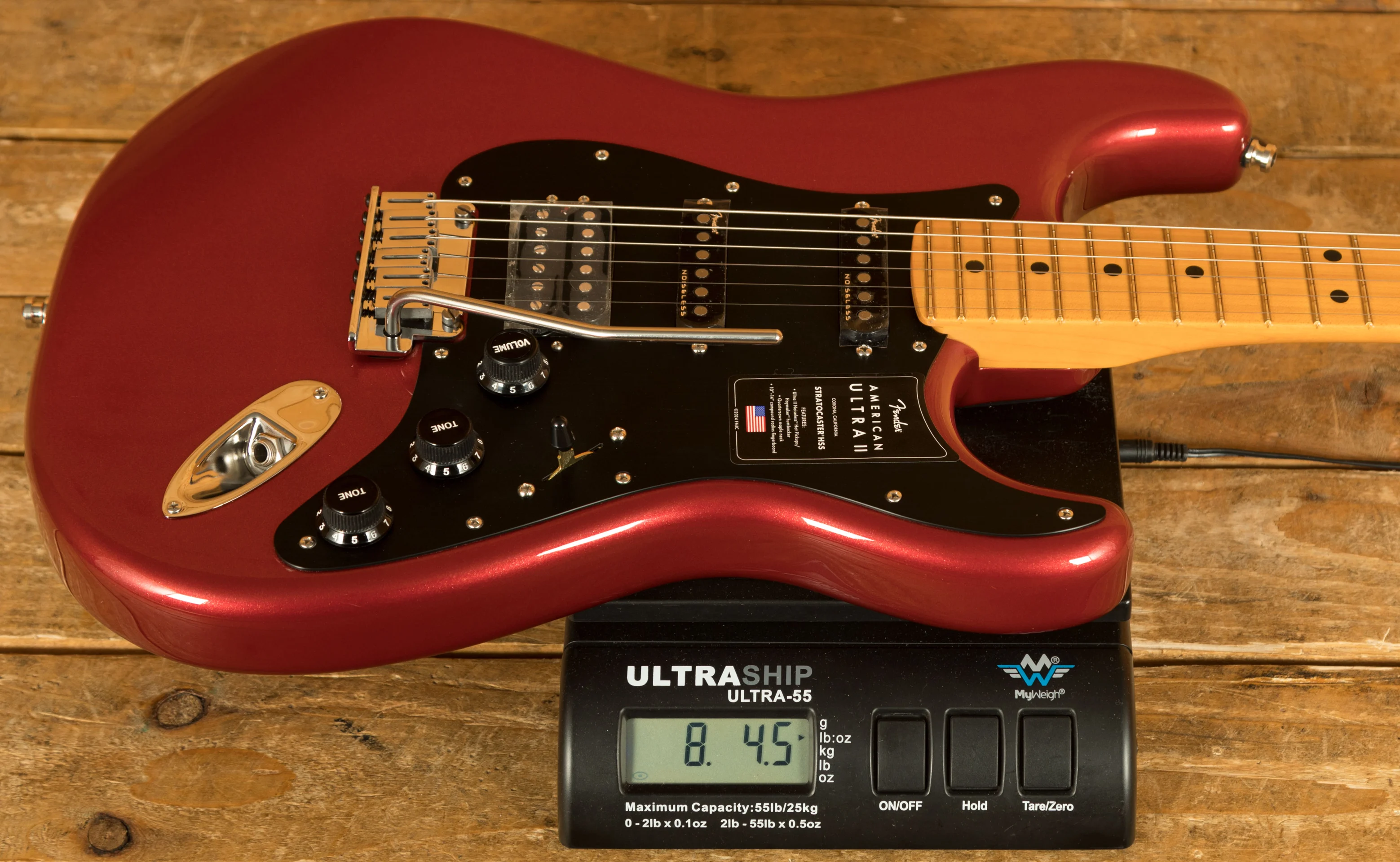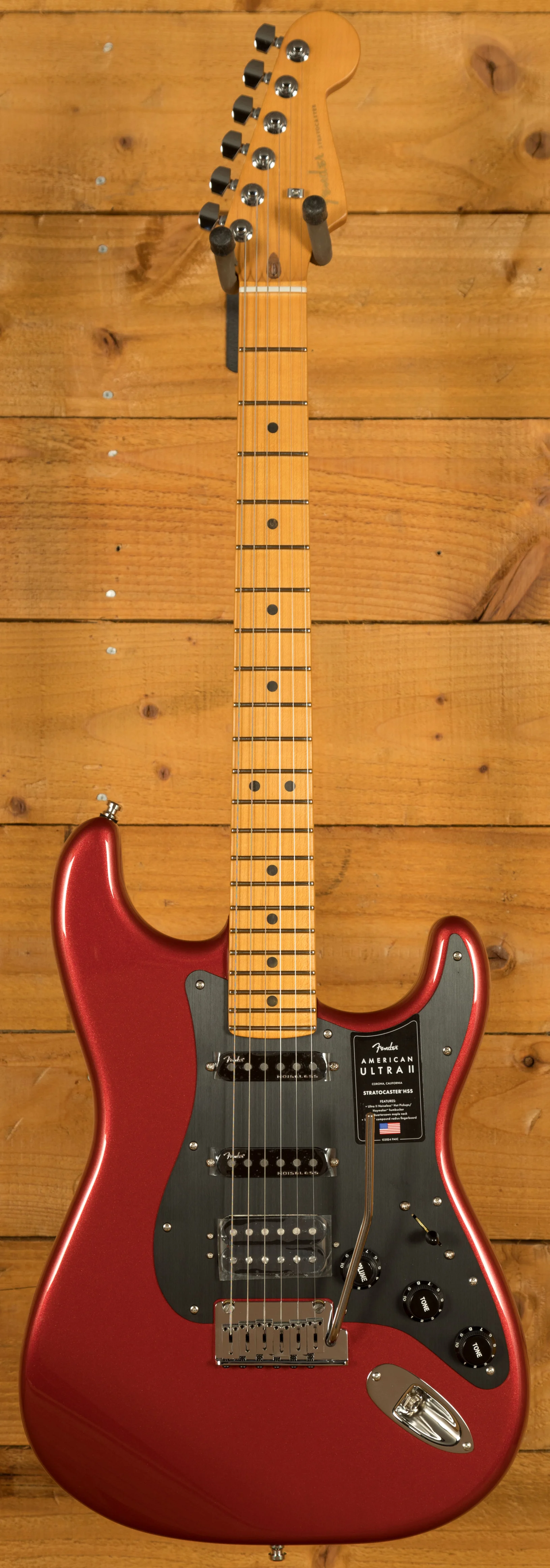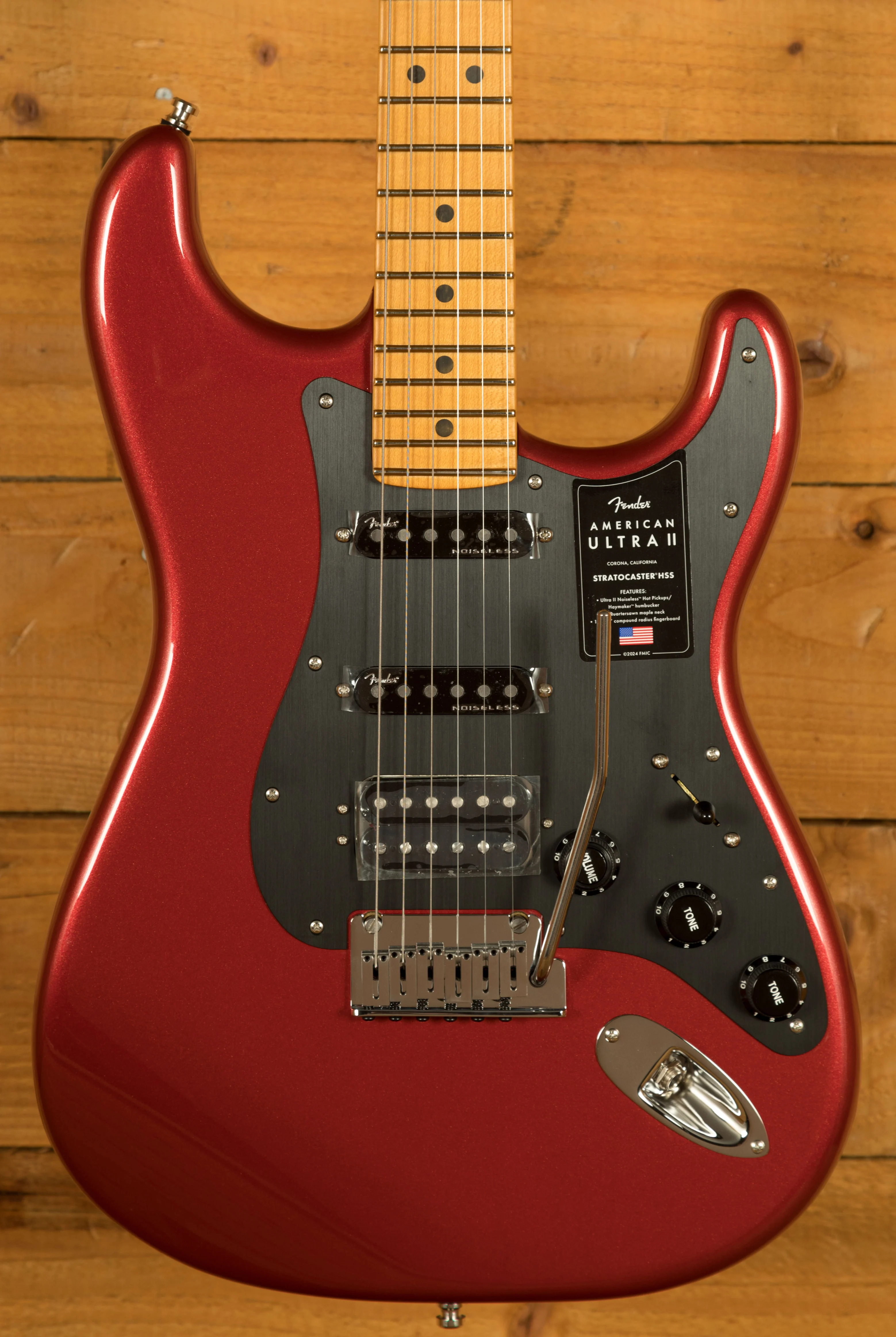 The American Ultra II Stratocaster HSS comes equipped with a versatile array of pickups, including the Haymaker humbucker and Ultra II Noiseless Hot Strat pickups. This combination offers a wide tonal range, from hot-rodded single-coil tones to the powerful snarl of a humbucker. The S-1 switching system allows players to split the humbucker for even more tonal options, and the treble bleed circuit ensures clarity at any volume level. Additionally, the locking tuners and synchronised tremolo system provide tuning stability and smooth vibrato performance, making the American Ultra II Stratocaster HSS a reliable choice for any guitarist.