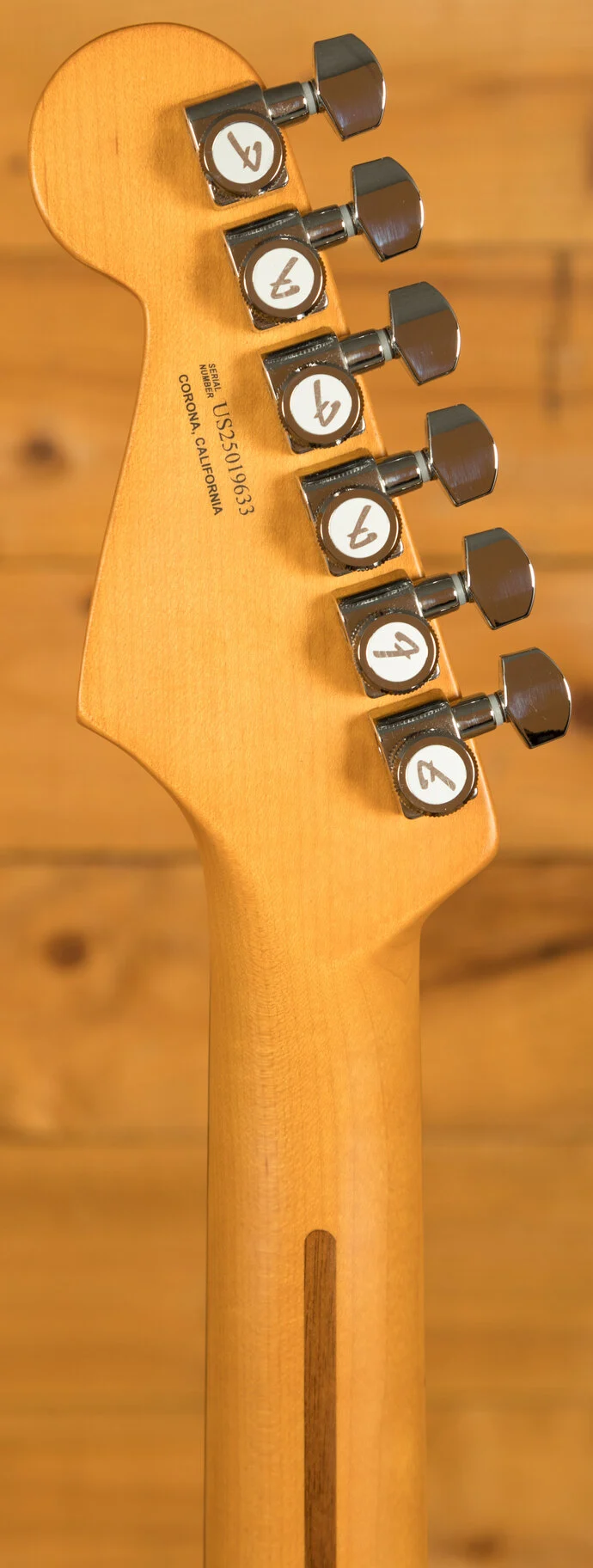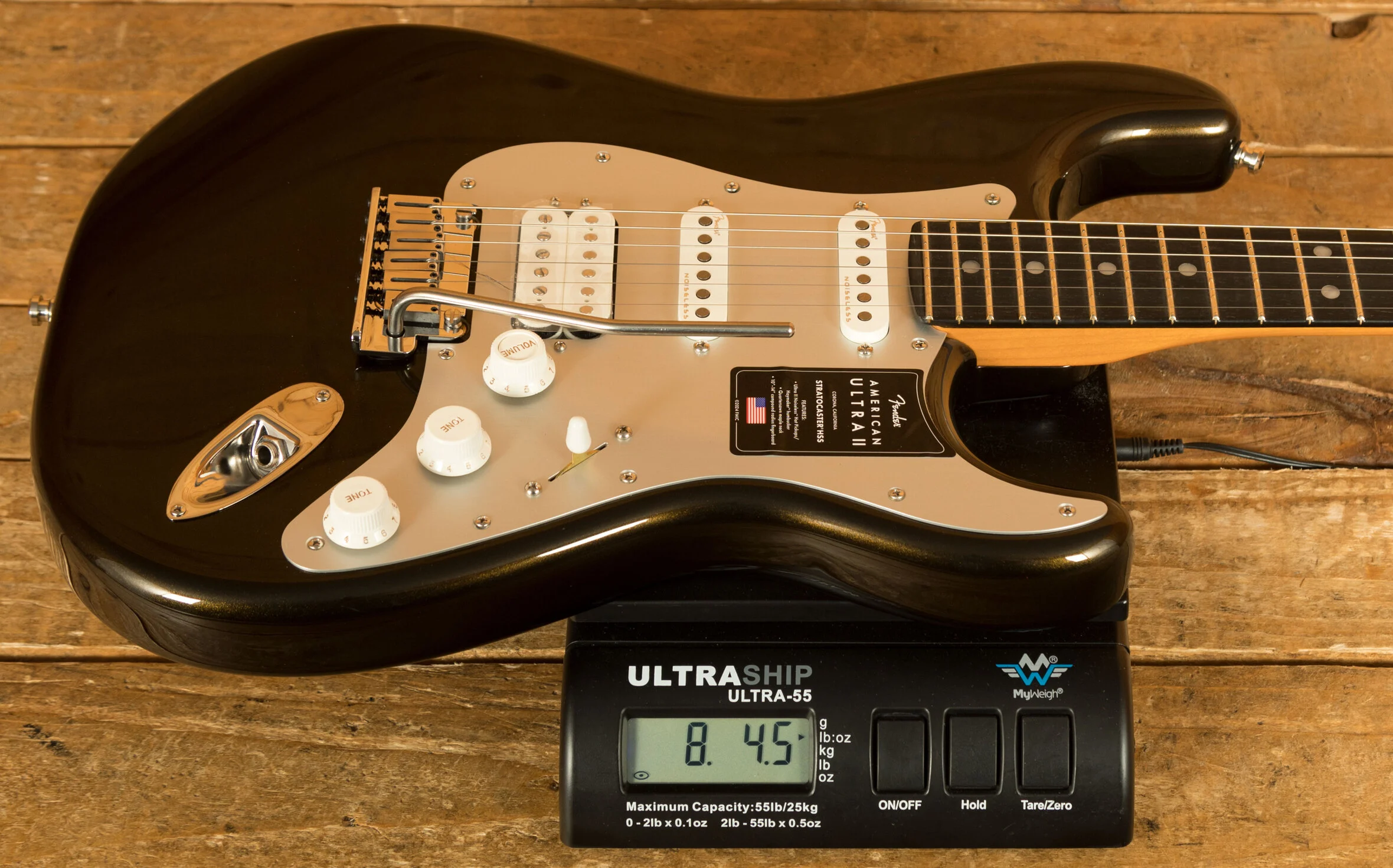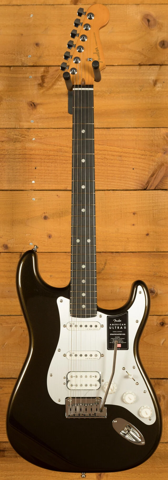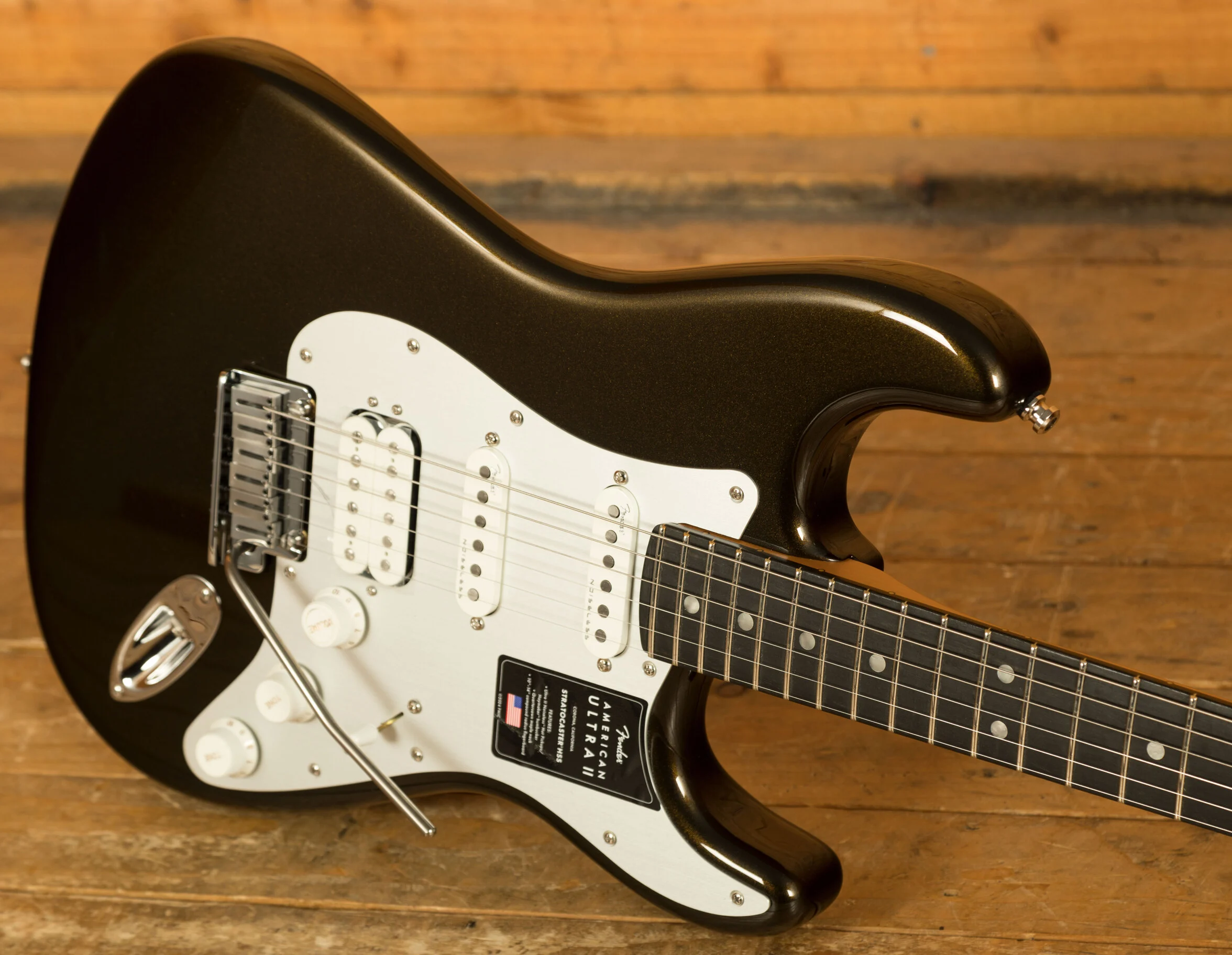 The American Ultra II Stratocaster HSS comes equipped with a versatile array of pickups, including the Haymaker humbucker and Ultra II Noiseless Hot Strat pickups. This combination offers a wide tonal range, from hot-rodded single-coil tones to the powerful snarl of a humbucker. The S-1 switching system allows players to split the humbucker for even more tonal options, and the treble bleed circuit ensures clarity at any volume level. Additionally, the locking tuners and synchronised tremolo system provide tuning stability and smooth vibrato performance, making the American Ultra II Stratocaster HSS a reliable choice for any guitarist.