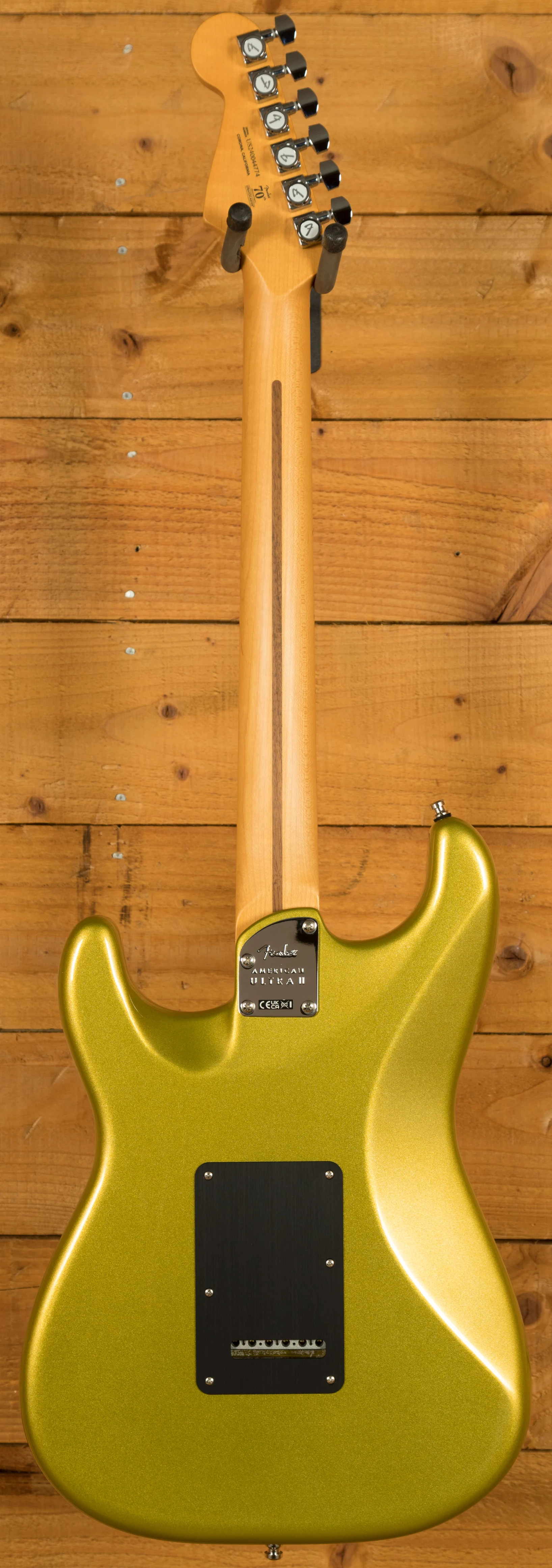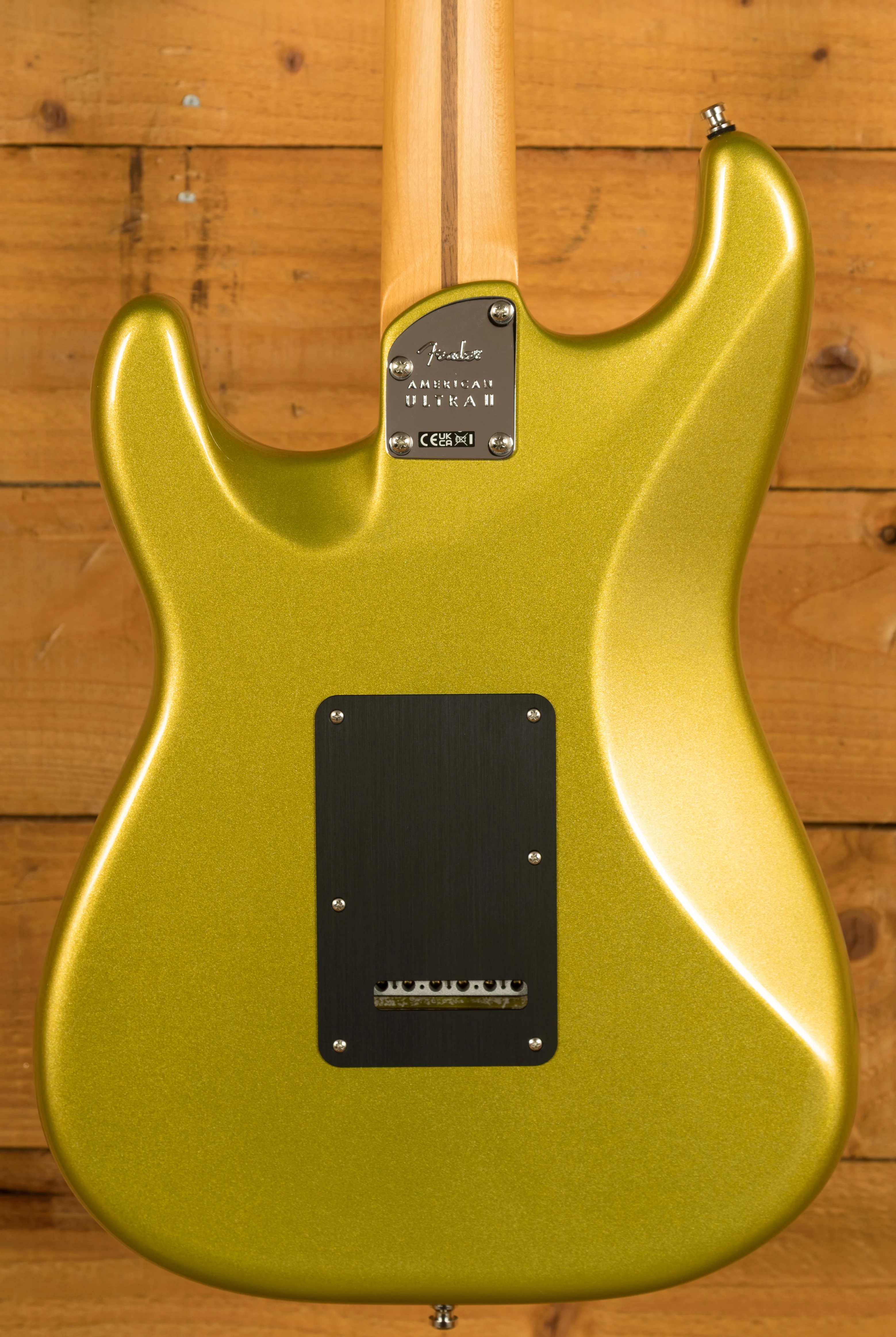 The American Ultra II Stratocaster features a select alder body, known for its balanced tonal qualities, making it ideal for a range of musical styles. The body design incorporates ultra-contours for ergonomic comfort, and a sculpted neck heel allows for seamless access to higher frets. This thoughtful design enables players to comfortably explore the full range of the fretboard with ease and precision.