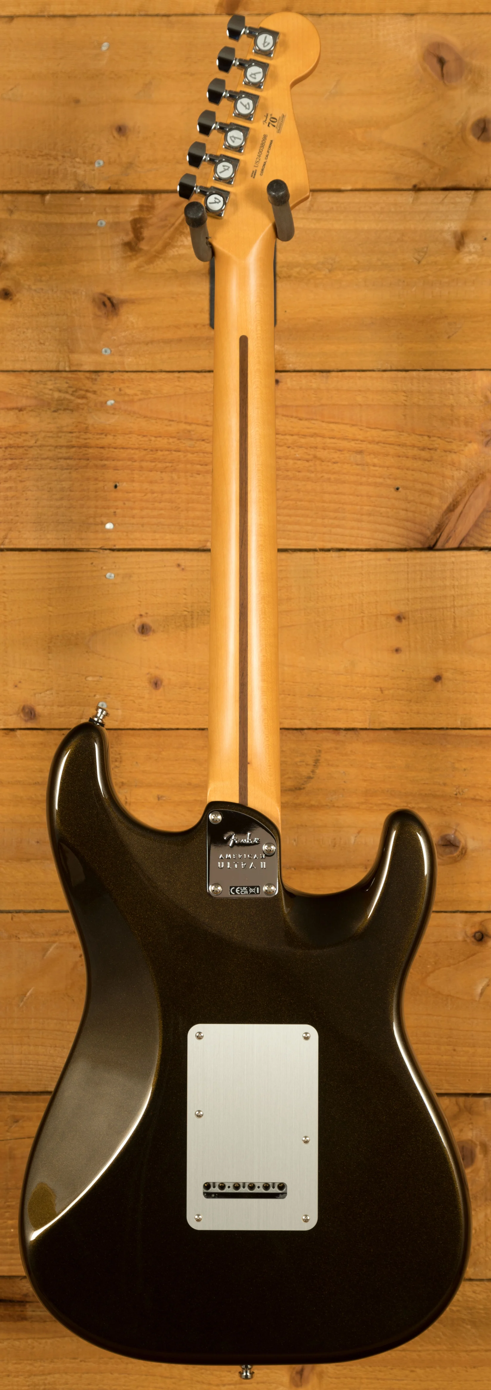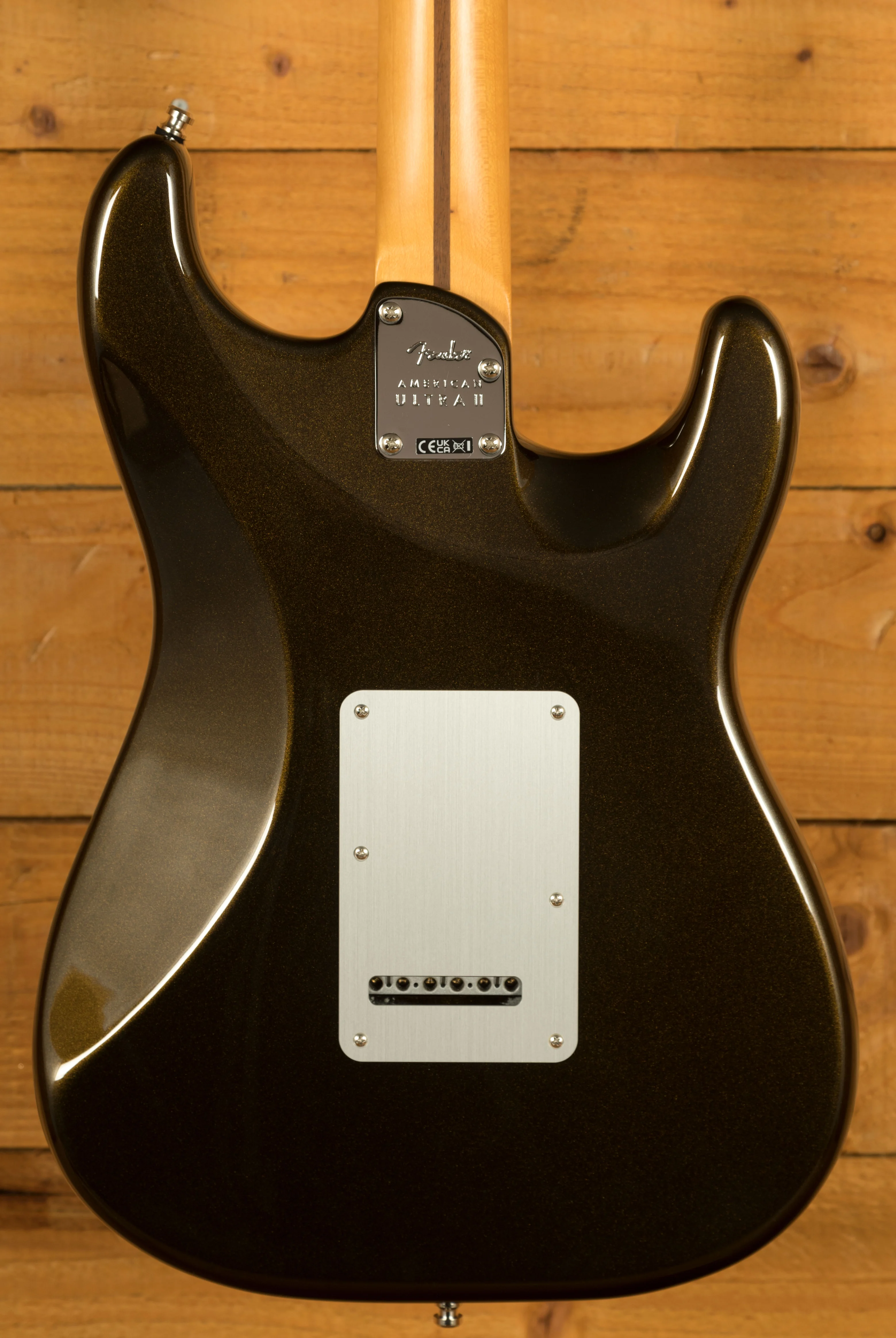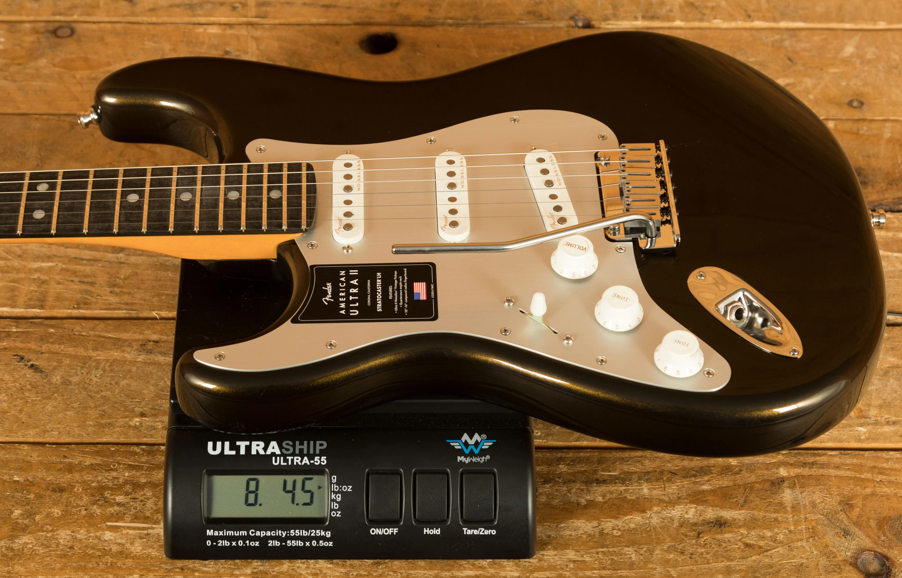 The American Ultra II Stratocaster features a select alder body, known for its balanced tonal qualities, making it ideal for a range of musical styles. The body design incorporates ultra-contours for ergonomic comfort, and a sculpted neck heel allows for seamless access to higher frets. This thoughtful design enables players to comfortably explore the full range of the fretboard with ease and precision.