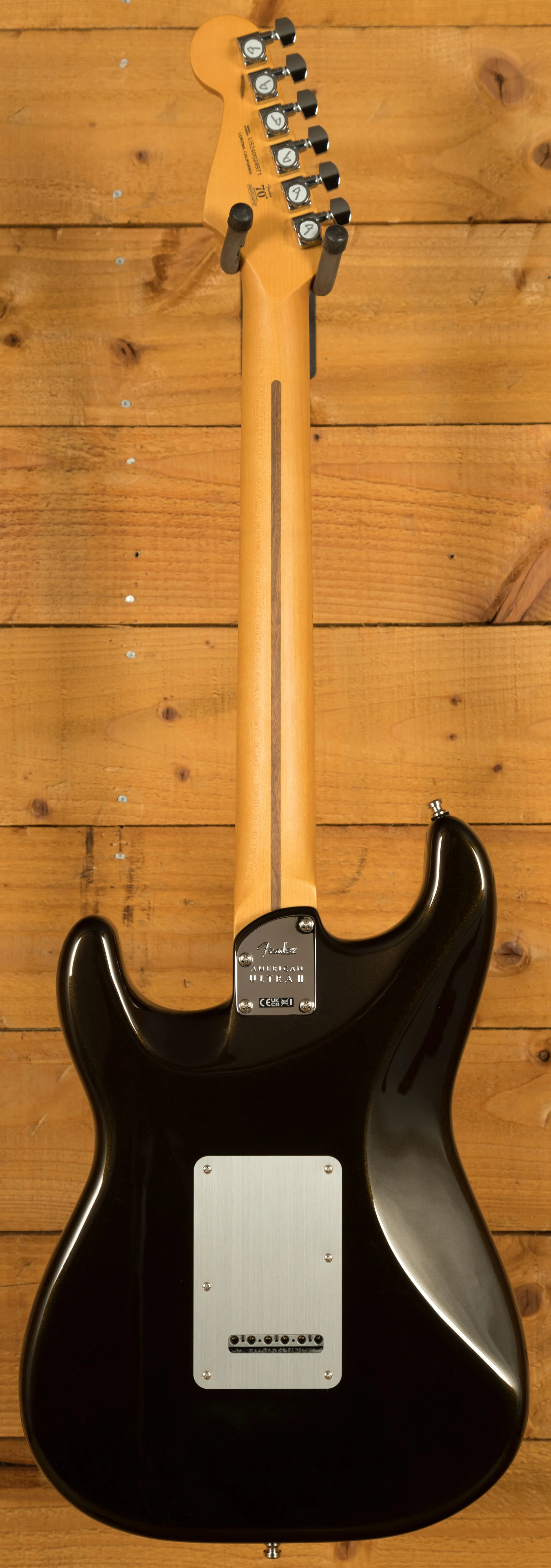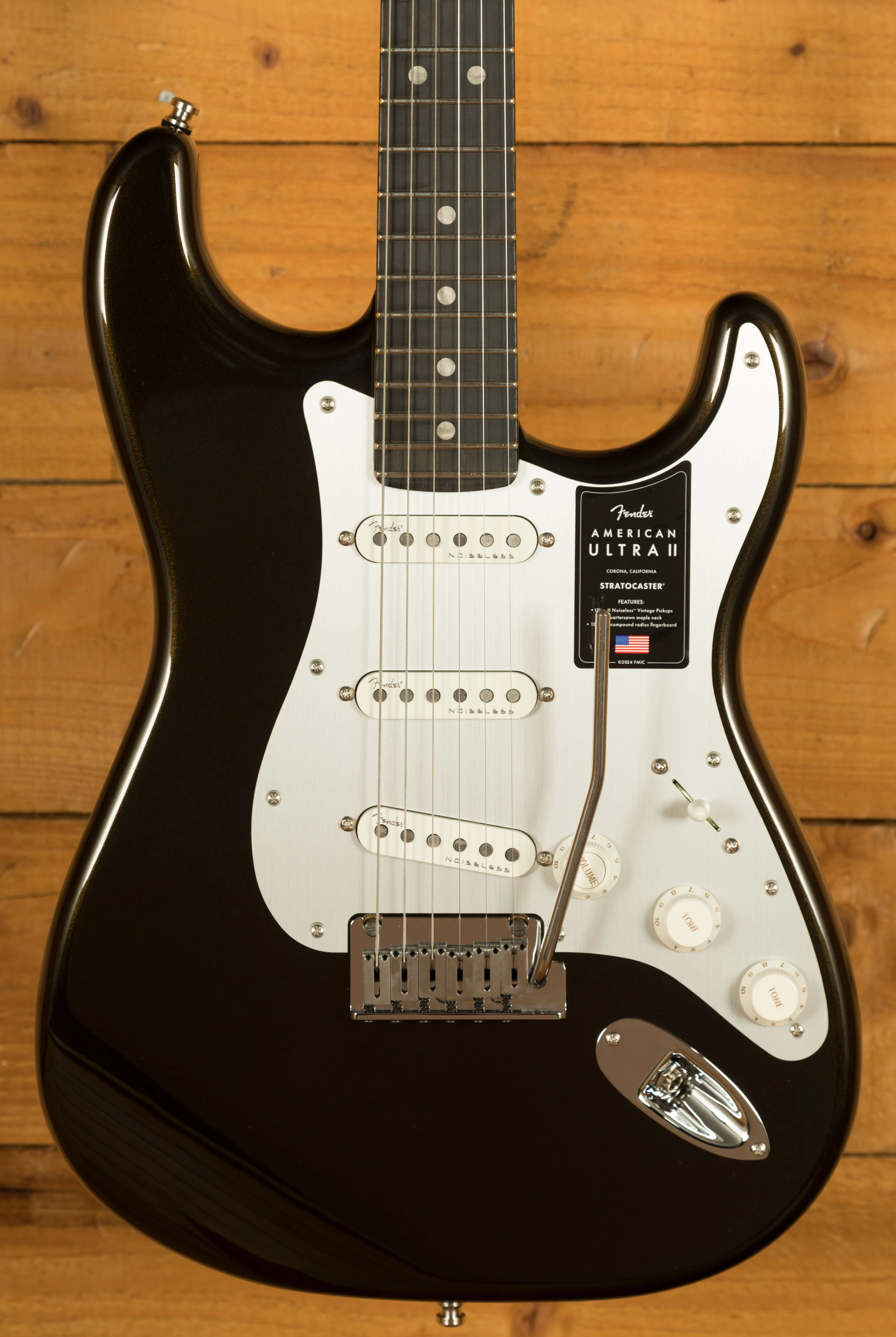 The Ultra II Noiseless Vintage pickups offer authentic Fender tone without the unwanted hum, delivering a clean, bright sound. The advanced electronics include the S-1 switch, which adds versatility by allowing you to activate the neck pickup in any position. Combined with the treble bleed circuit, your tone remains crisp even at lower volumes. Additionally, the American Ultra II Stratocaster's synchronised tremolo system and short post locking tuners provide superior tuning stability, quick string changes, and an overall seamless playing experience.
