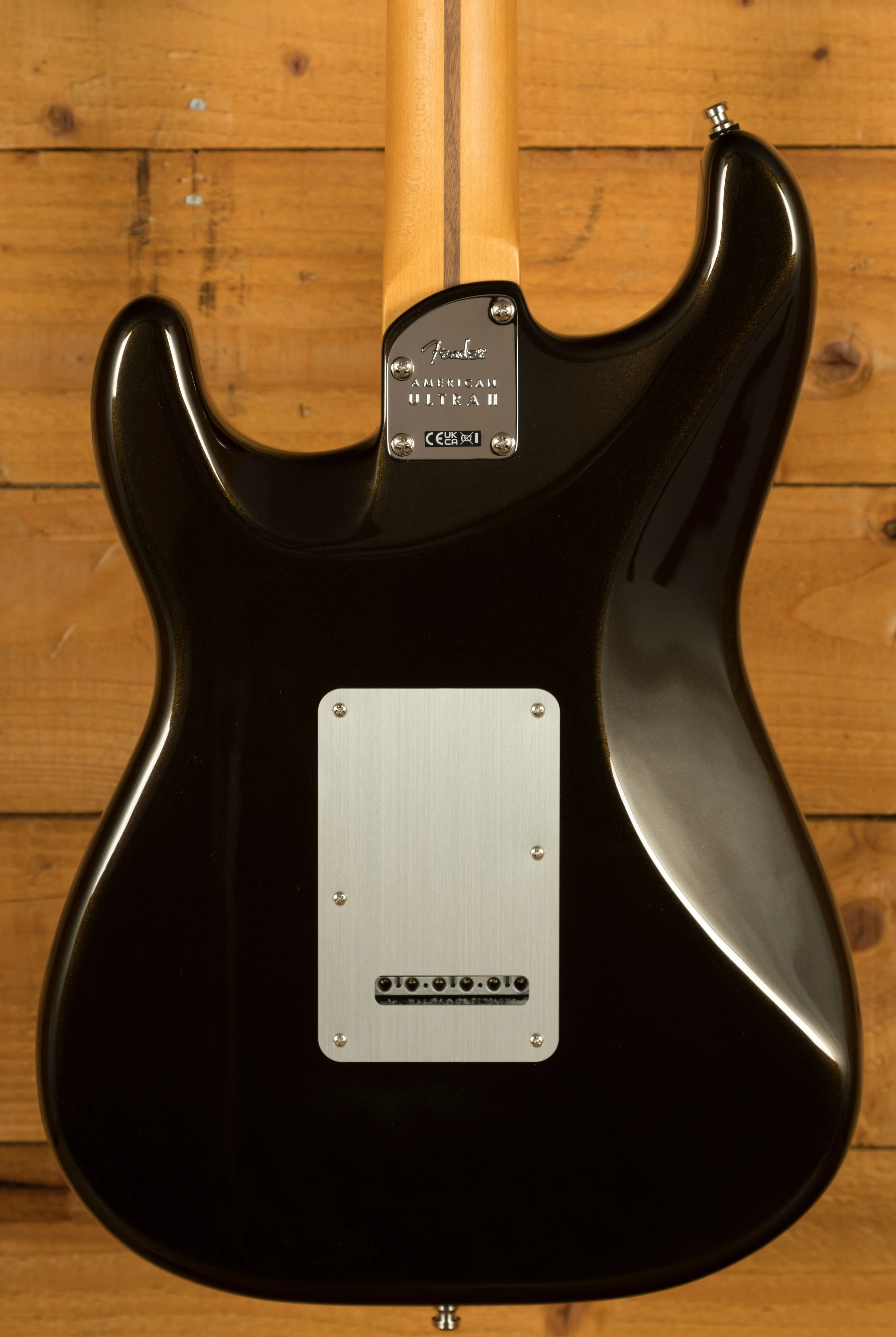 The American Ultra II Stratocaster features a select alder body, known for its balanced tonal qualities, making it ideal for a range of musical styles. The body design incorporates ultra-contours for ergonomic comfort, and a sculpted neck heel allows for seamless access to higher frets. This thoughtful design enables players to comfortably explore the full range of the fretboard with ease and precision.