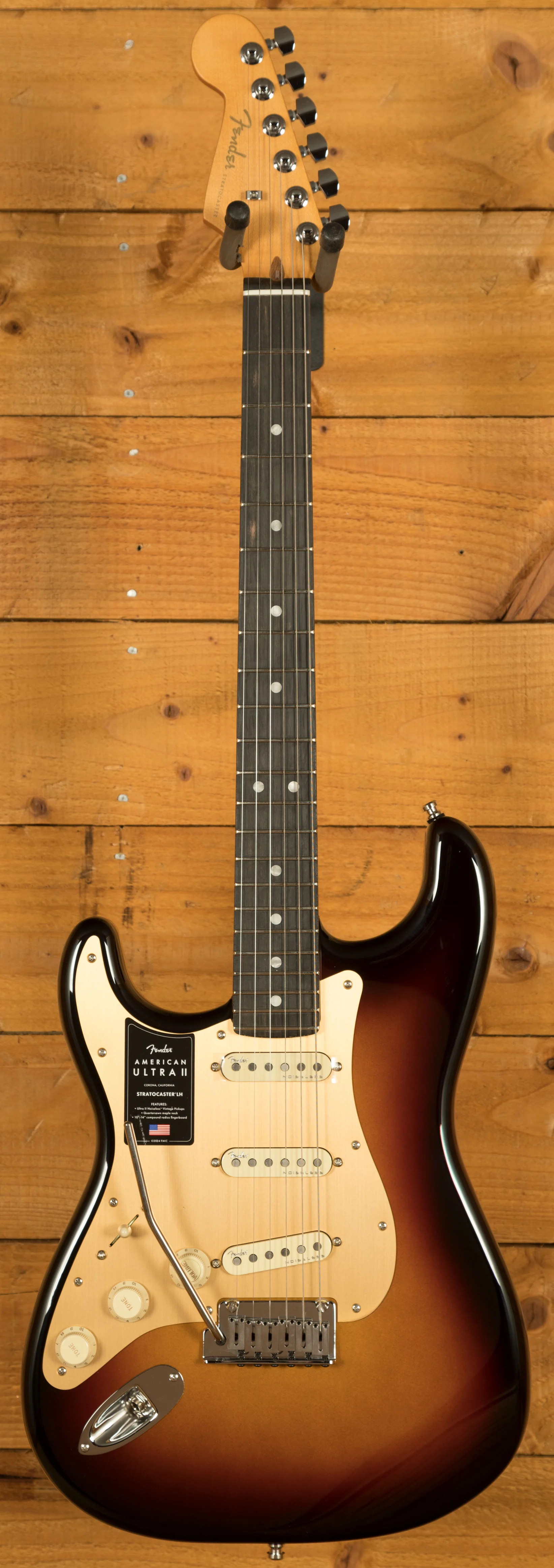 Skip to content Fender American Ultra II Stratocaster Left-Handed - Ebony - Ultraburst