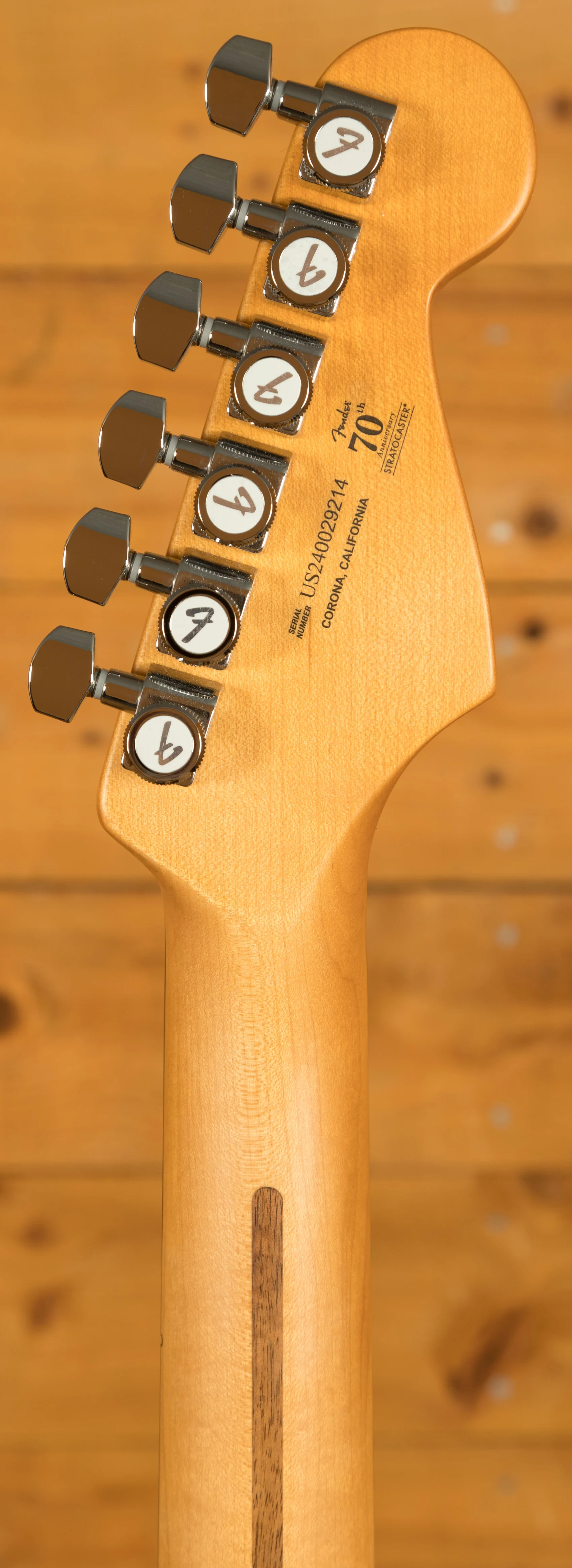 The Ultra II Noiseless Vintage pickups offer authentic Fender tone without the unwanted hum, delivering a clean, bright sound. The advanced electronics include the S-1 switch, which adds versatility by allowing you to activate the neck pickup in any position. Combined with the treble bleed circuit, your tone remains crisp even at lower volumes. Additionally, the American Ultra II Stratocaster's synchronised tremolo system and short post locking tuners provide superior tuning stability, quick string changes, and an overall seamless playing experience.