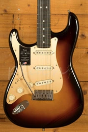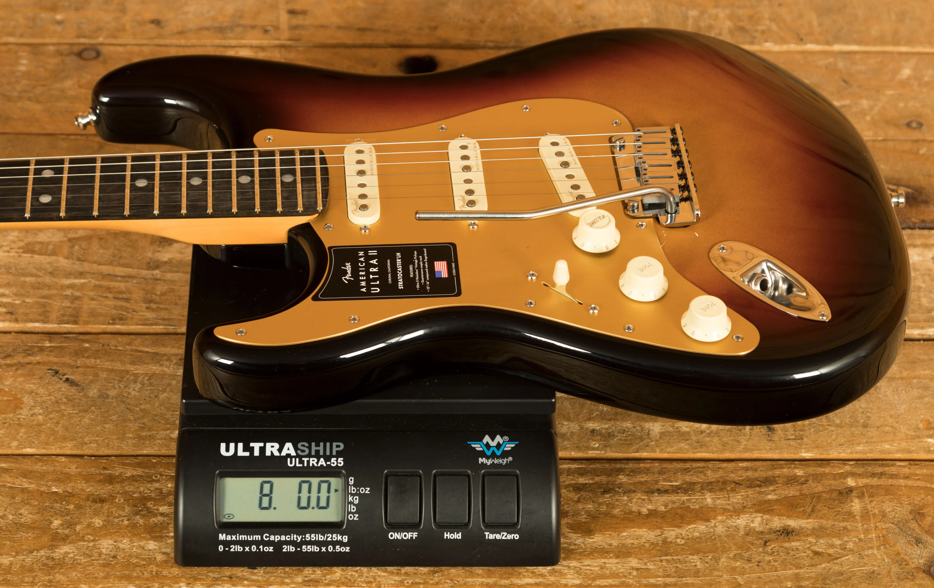 The American Ultra II Stratocaster features a select alder body, known for its balanced tonal qualities, making it ideal for a range of musical styles. The body design incorporates ultra-contours for ergonomic comfort, and a sculpted neck heel allows for seamless access to higher frets. This thoughtful design enables players to comfortably explore the full range of the fretboard with ease and precision.